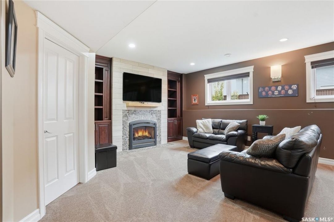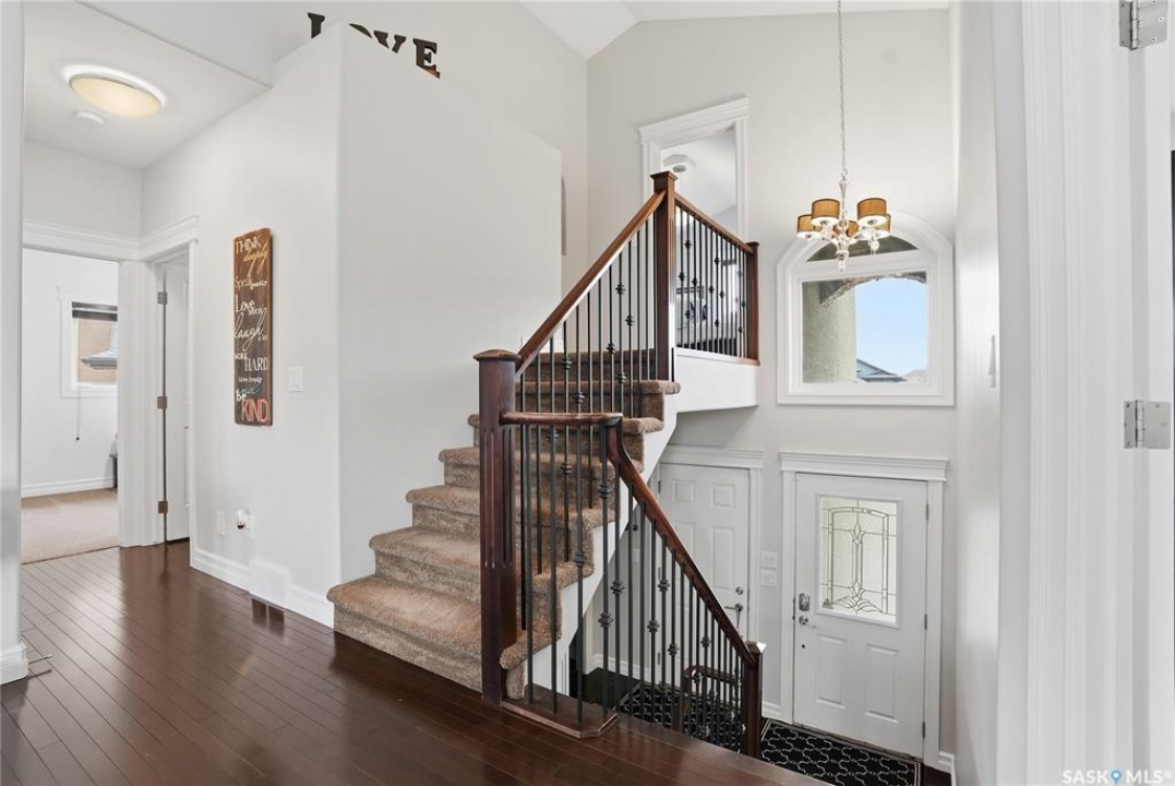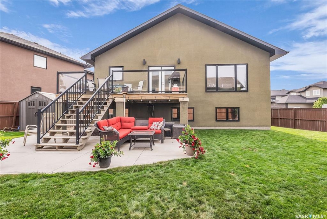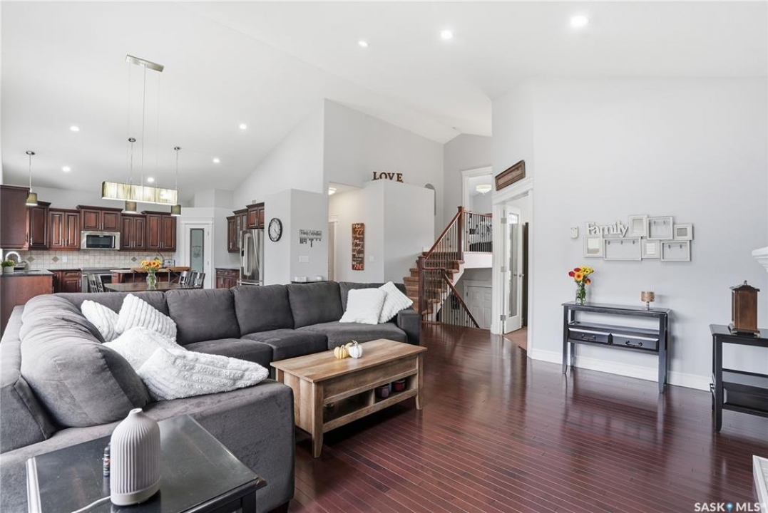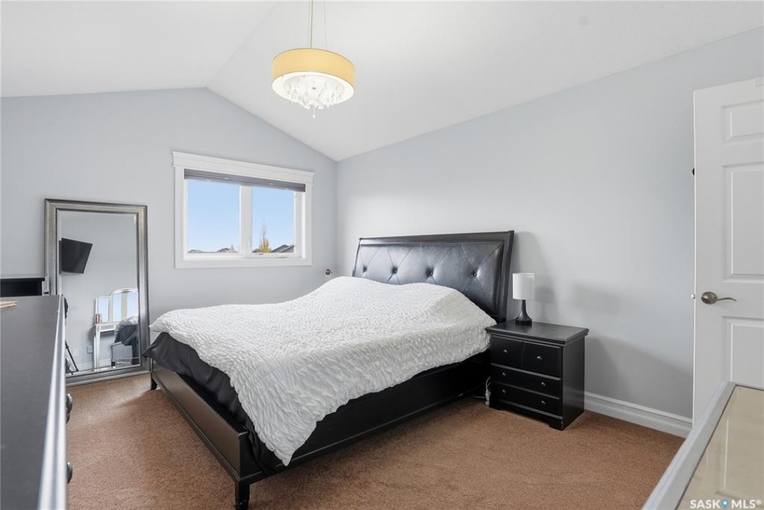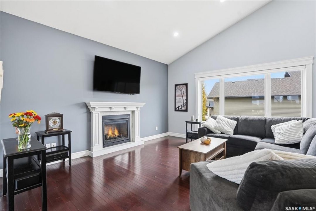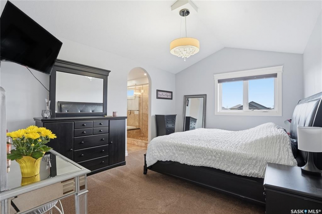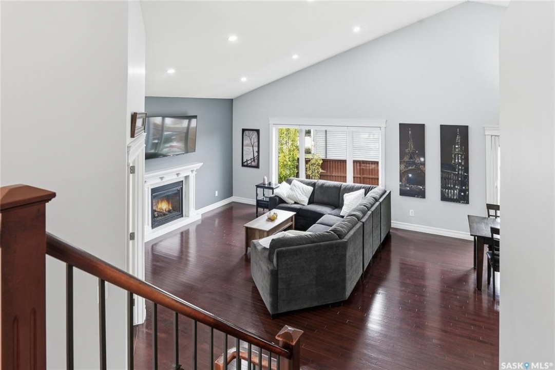 Welcome to this stunning 1,514 sq. ft. modified bi-level located on a quiet, family-friendly street in Willowgrove, Saskatoon. This beautiful home offers four bedrooms and three full bathrooms, providing ample space for families of all sizes. The main floor features an inviting open-concept design with vaulted ceilings, rich finishes, and a cozy gas fireplace that creates a warm and welcoming atmosphere. The kitchen is both functional and stylish, offering plenty of cabinetry, a large island, and easy access to the deck—perfect for entertaining or enjoying summer evenings outdoors. The spacious master suite is a true retreat, complete with a lavish five-piece ensuite and walk-in closet, offering comfort and privacy. Two additional bedrooms and another full bathroom complete the upper level, making this home ideal for family living. The fully finished basement is bright and cozy, featuring large windows that let in plenty of natural light, a second gas fireplace, two more bedrooms, and an additional full bathroom—perfect for guests or a growing family. Outside, you'll find a beautifully landscaped yard that's perfect for kids and pets, along with a large driveway providing plenty of parking space. Situated on a quiet, safe street in one of Saskatoon's most desirable neighborhoods, this home combines style, comfort, and practicality. Close to parks, schools, and all the amenities Willowgrove has to offer, this property is the perfect place to call home.