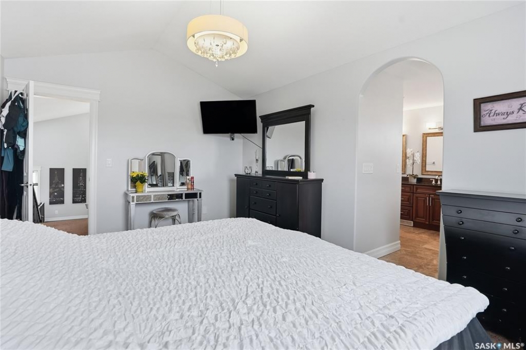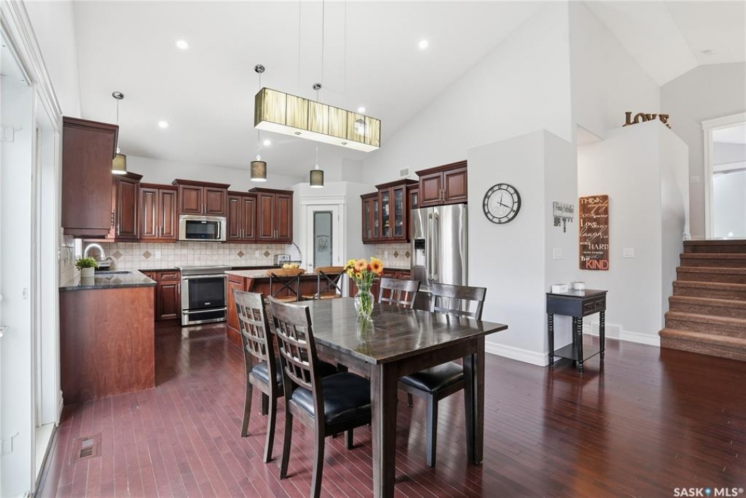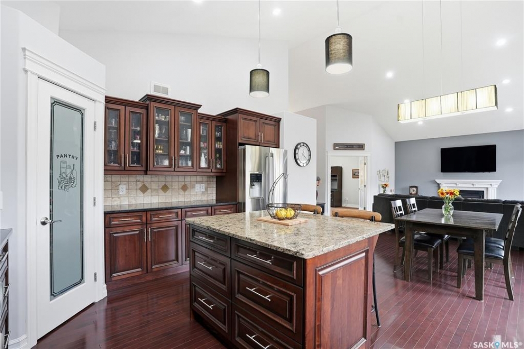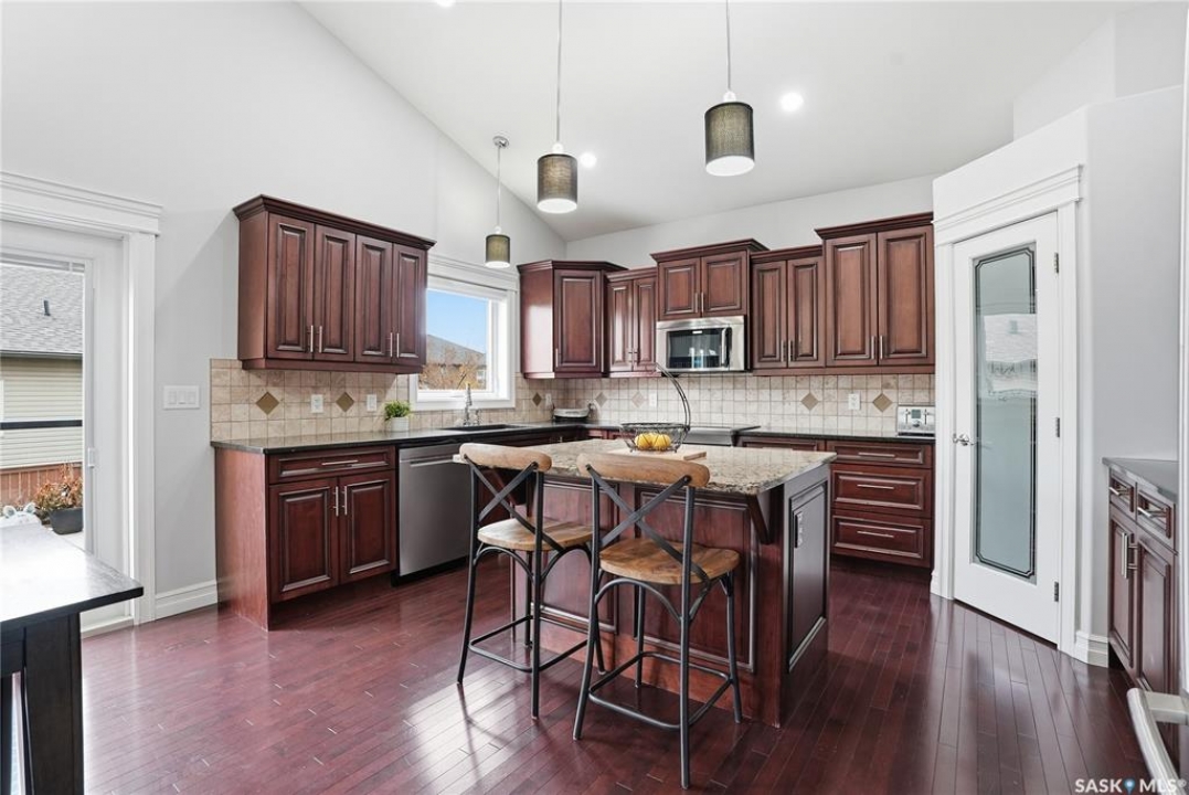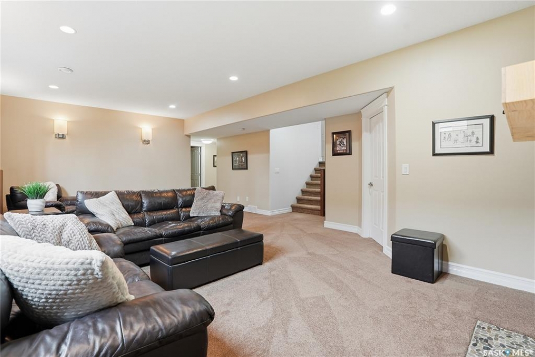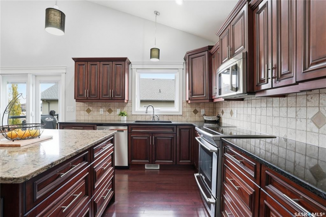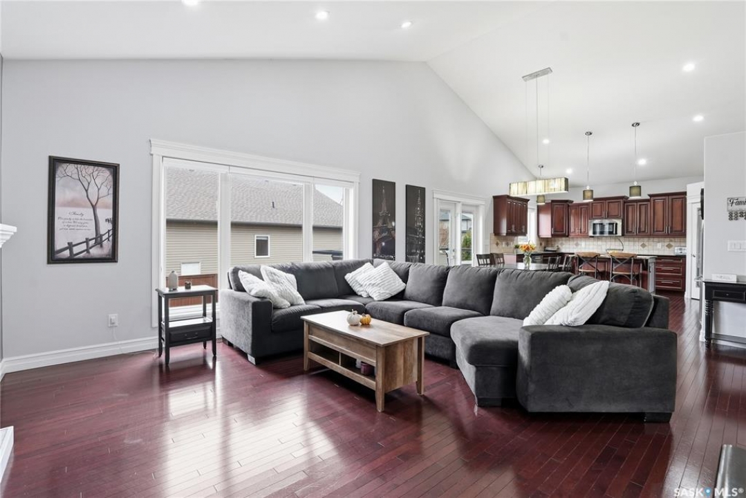Welcome to this stunning 1,514 sq. ft. modified bi-level located on a quiet, family-friendly street in Willowgrove, Saskatoon. This beautiful home offers four bedrooms and three full bathrooms, providing ample space for families of all sizes. The main floor features an inviting open-concept design with vaulted ceilings, rich finishes, and a cozy gas fireplace that creates a warm and welcoming atmosphere. The kitchen is both functional and stylish, offering plenty of cabinetry, a large island, and easy access to the deck—perfect for entertaining or enjoying summer evenings outdoors. The spacious master suite is a true retreat, complete with a lavish five-piece ensuite and walk-in closet, offering comfort and privacy. Two additional bedrooms and another full bathroom complete the upper level, making this home ideal for family living. The fully finished basement is bright and cozy, featuring large windows that let in plenty of natural light, a second gas fireplace, two more bedrooms, and an additional full bathroom—perfect for guests or a growing family. Outside, you'll find a beautifully landscaped yard that's perfect for kids and pets, along with a large driveway providing plenty of parking space. Situated on a quiet, safe street in one of Saskatoon's most desirable neighborhoods, this home combines style, comfort, and practicality. Close to parks, schools, and all the amenities Willowgrove has to offer, this property is the perfect place to call home.