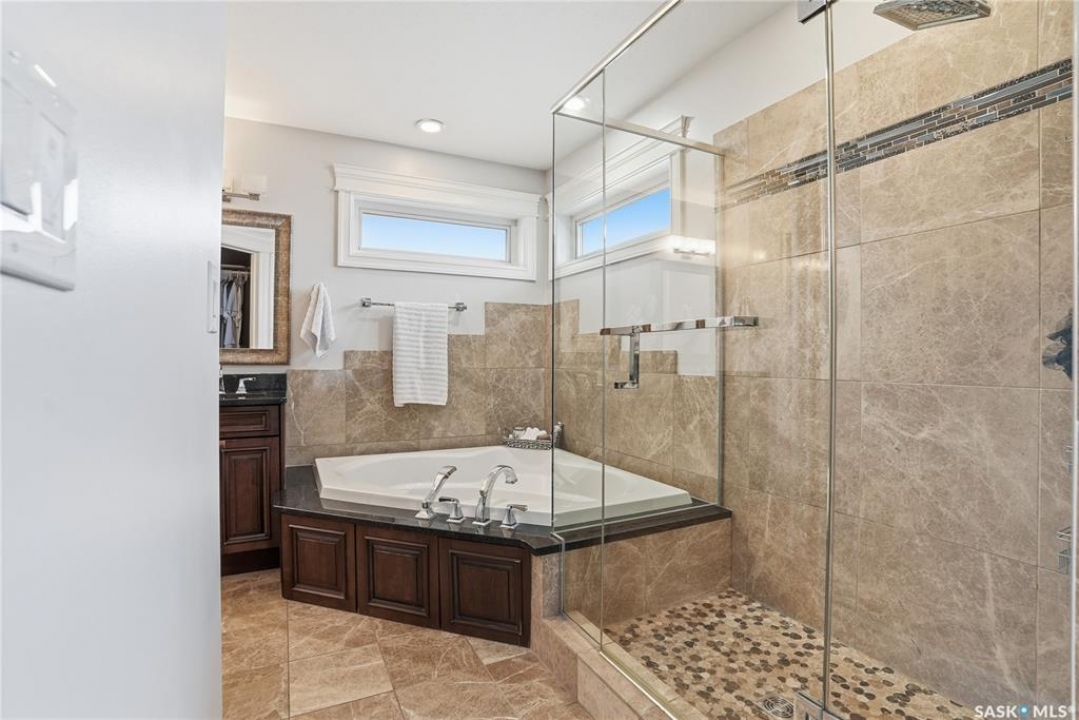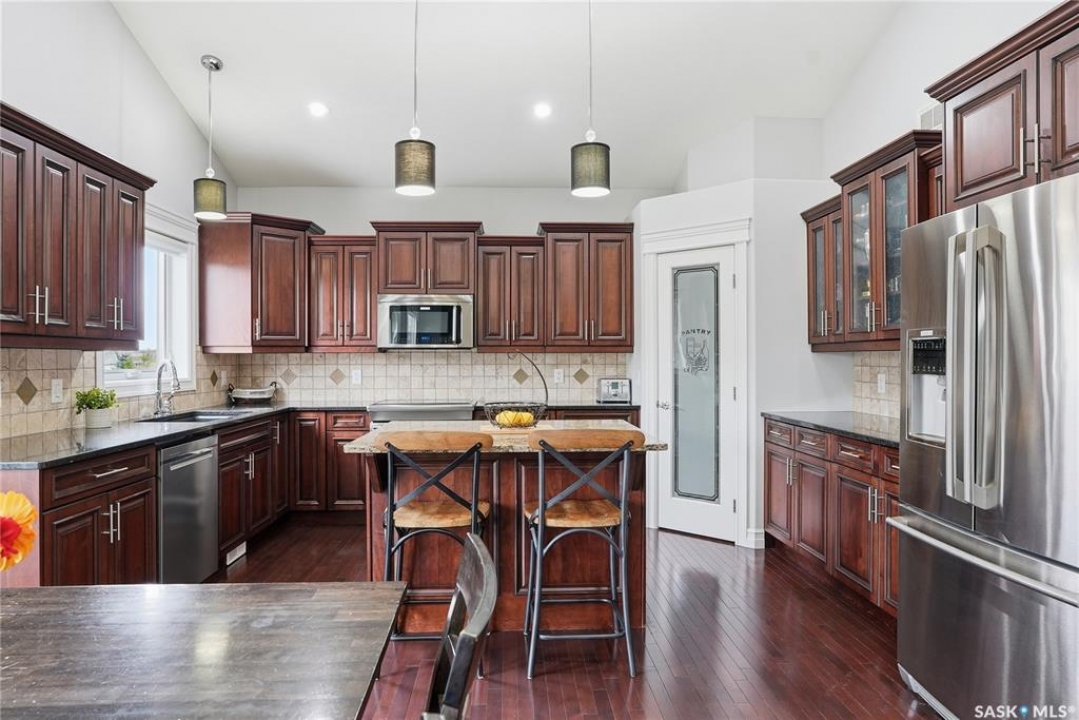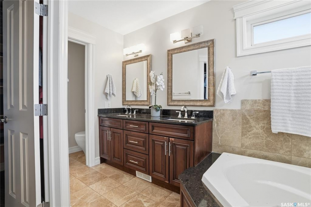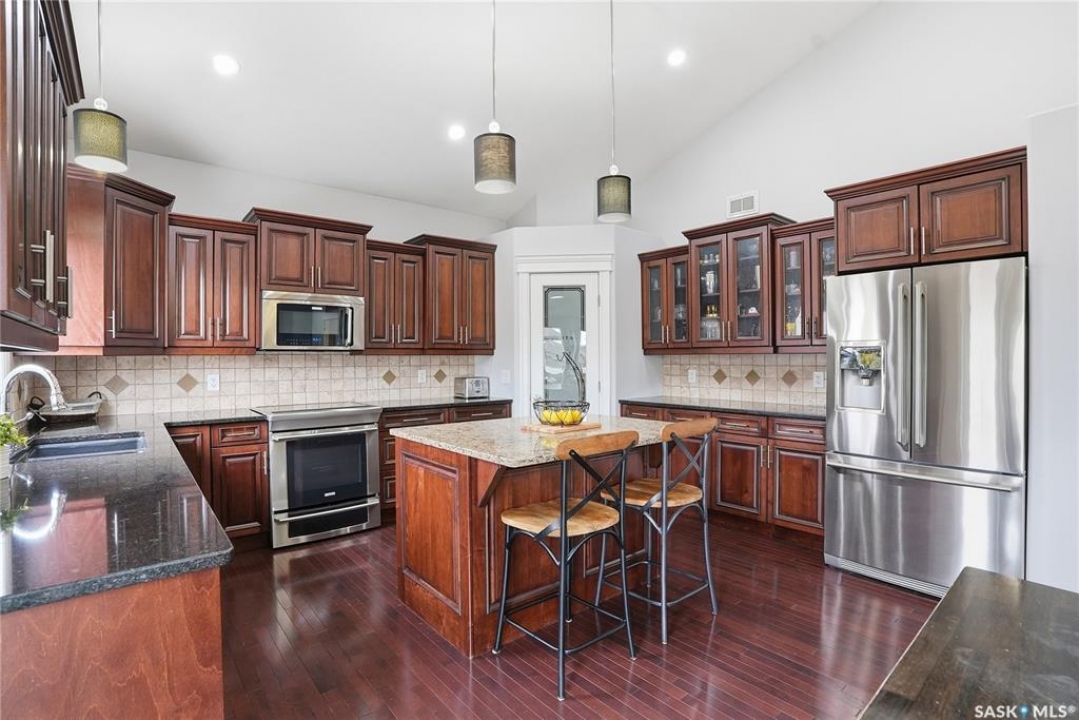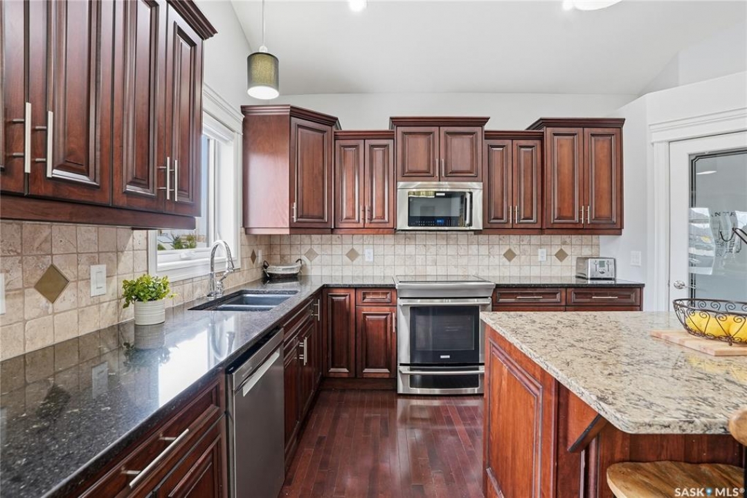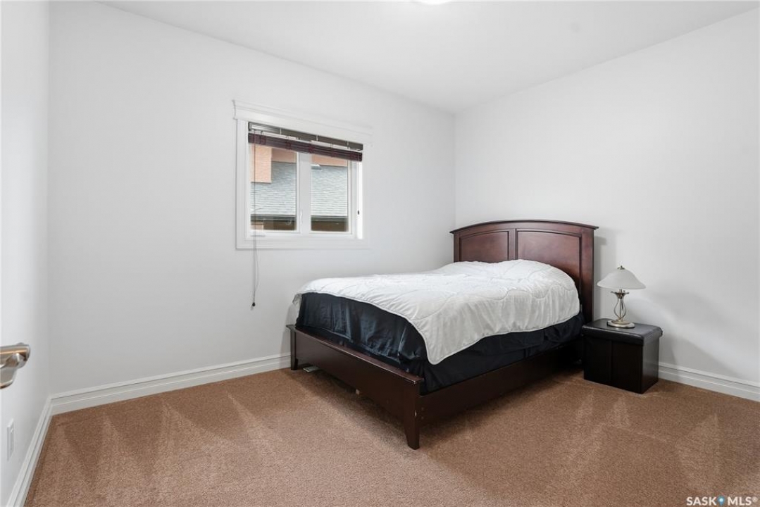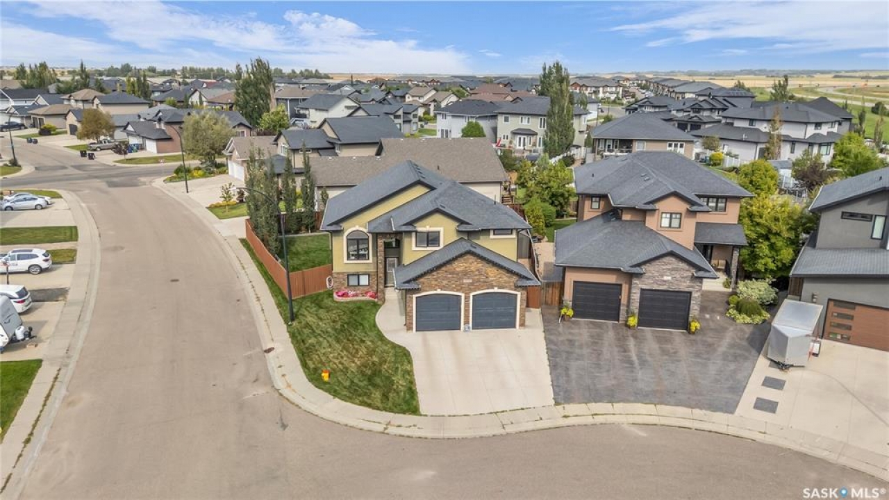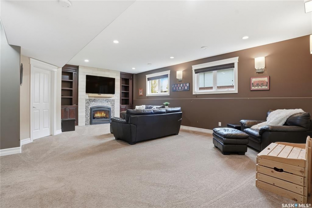 Welcome to this stunning 1,514 sq. ft. modified bi-level located on a quiet, family-friendly street in Willowgrove, Saskatoon. This beautiful home offers four bedrooms and three full bathrooms, providing ample space for families of all sizes. The main floor features an inviting open-concept design with vaulted ceilings, rich finishes, and a cozy gas fireplace that creates a warm and welcoming atmosphere. The kitchen is both functional and stylish, offering plenty of cabinetry, a large island, and easy access to the deck—perfect for entertaining or enjoying summer evenings outdoors. The spacious master suite is a true retreat, complete with a lavish five-piece ensuite and walk-in closet, offering comfort and privacy. Two additional bedrooms and another full bathroom complete the upper level, making this home ideal for family living. The fully finished basement is bright and cozy, featuring large windows that let in plenty of natural light, a second gas fireplace, two more bedrooms, and an additional full bathroom—perfect for guests or a growing family. Outside, you'll find a beautifully landscaped yard that's perfect for kids and pets, along with a large driveway providing plenty of parking space. Situated on a quiet, safe street in one of Saskatoon's most desirable neighborhoods, this home combines style, comfort, and practicality. Close to parks, schools, and all the amenities Willowgrove has to offer, this property is the perfect place to call home.
