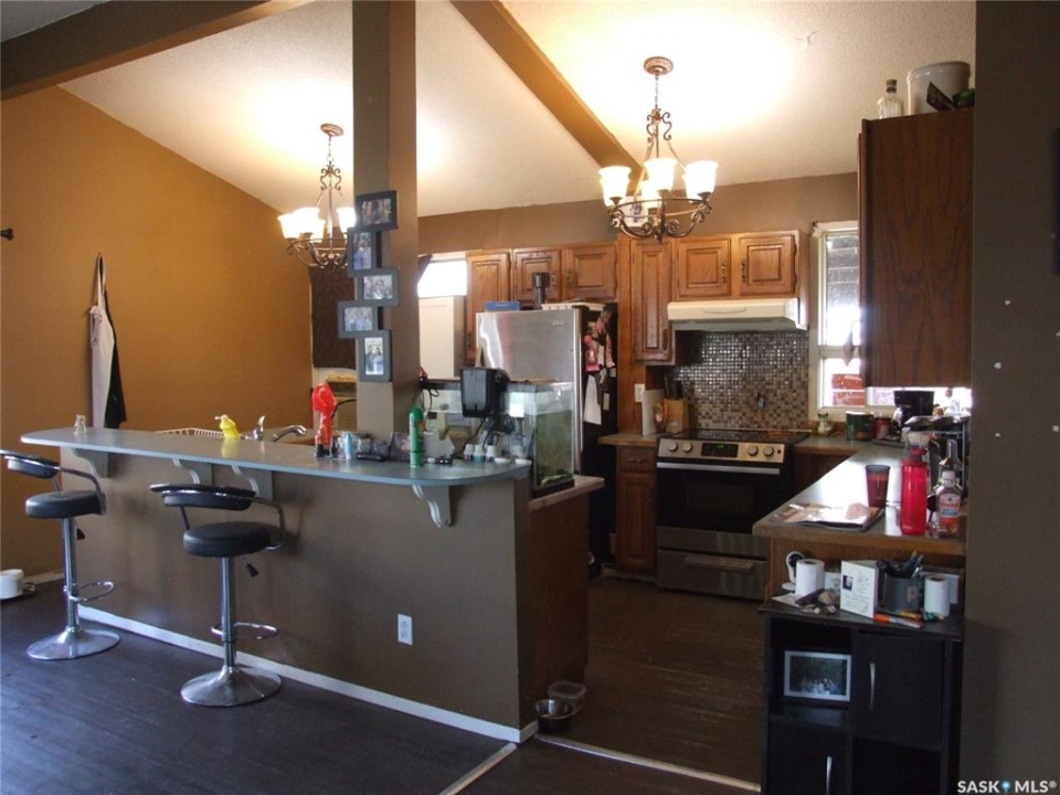 Located in Burstall, SK. a quiet friendly community in SW SK. This home was built in 1957 moved to Burstall in 1983 onto a new basement. The main floor has 3 bedrooms, 1 4pc Bathroom and large open concept kitchen and dining/living room with vaulted ceilings. The basement has 2 bedrooms, large family room with a bar area, laundry and unfinishedf bathroom and another large utility room. The roof was new in Oct. 2024, the furnace is high efficient and the water heater is newer. There is a single car garage at the end of the driveway. The dishwasher is new and has never been hooked up. This home needs some work but it is definately liveable and has excellent bones. All measurements are approximate and all information is supplied by SAMA and the Owner and can be verified by prospective Buyer's.