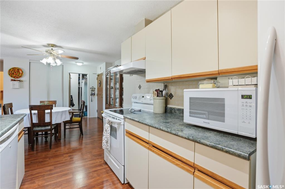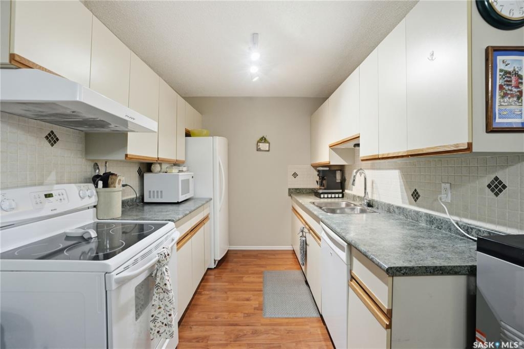 Welcome to 306 - 209A Cree Place in Saskatoon's Lawson Heights neighbourhood! This 1,007 sqft, top floor, 2 bedroom and 2 bathroom unit move in ready and offers 2 dedicated parking stalls. The bathrooms have been updated and the living area + bedrooms have laminate flooring. This unit also comes with in-suite laundry and lots of storage. The large balcony faces East overlooking the greenspace and parking lot. All appliances come included in sale. Key notables: storage on balcony, wall mount central air conditioning, and an amenities room available. Don't miss out!