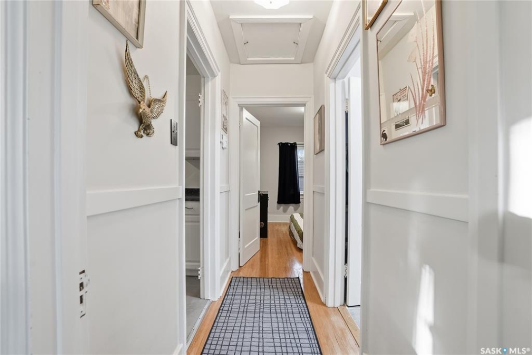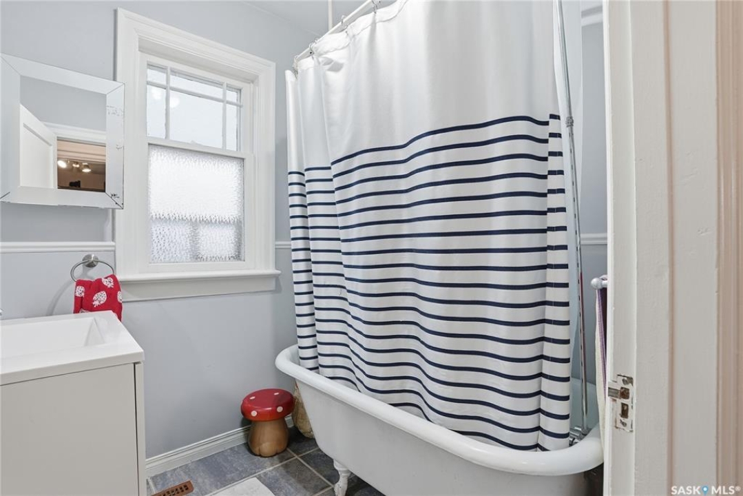 This beautiful character bungalow is full of charm and perfect for a first home. It's close to shops and services and features a kitchen with white heritage cabinets and vinyl flooring, plus it has gorgeous original oak hardwood throughout the main floor. You'll find two spacious bedrooms with great closet space and a 4-piece bath with a classic claw-foot tub. The basement is open for your creative touch, whether you want a gym, games area, or chill space. Updates include a new air conditioning unit, upgraded windows, a high-efficiency furnace, water heater, HRV, electrical, and shingles. The west-facing backyard is amazing in the summer, full of sunshine and love, with a fenced yard and a sweet shed or playhouse ready for good times with friends.