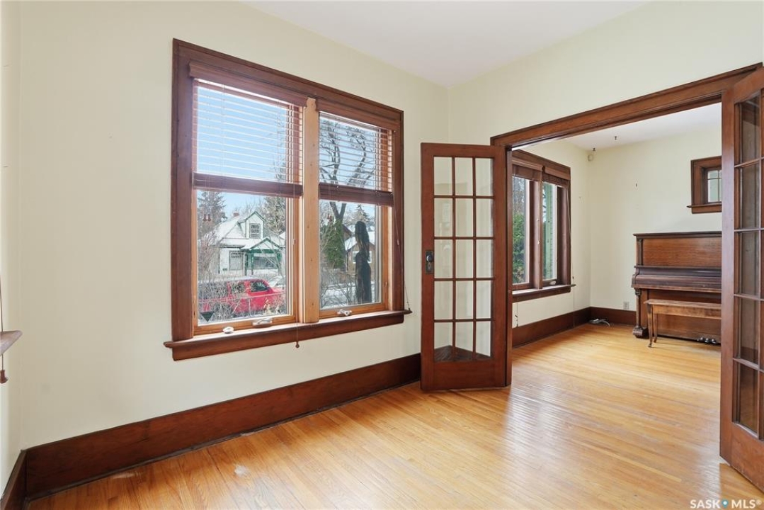 Welcome to this character, craftsman home with original retained millwork and hardwood floors throughout. Right from the new exterior front porch entry with a wooden screen door you will notice an abundance of hardwoods with full south sun exposure . The two main room windows facing south have been replaced keeping their original wood charm. There is a den that closes off with French doors into the living room and dinning room area. There are two bedrooms at the back of the house with a bathroom. The kitchen is basic waiting for you to refresh. Downstairs is partially finished with a bedroom and bathroom. New furnace and shingles in 2023. Outside you will find a single garage with back alley access. Lot size is 30x104. Electrical panel box is 100 amp. If you love natural materials and character this home checks all the boxes.
