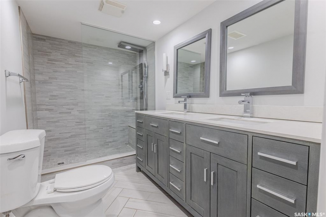 Welcome to 73 Red River Road in the highly coveted River Heights neighborhood, just steps from the Meewasin trails. This beautifully updated 4-level split offers a functional layout that's perfect for family living. Up a few stairs from the front entry, you'll find a bright living area with hardwood floors, a semi-formal dining space with a large window, and a kitchen featuring updated stainless steel appliances and direct access to the upper back deck, ideal for morning coffee or summer barbecues. Just off the kitchen, a few steps down, is a cozy family room with a gas fireplace and a south-facing window overlooking the backyard. Completing this level is a versatile bedroom/office and a convenient two-piece bath with laundry. Upstairs, you'll find two secondary bedrooms, an updated four-piece bathroom, and the primary bedroom complete with a three piece en-suite. The fully developed lower level adds even more living space with a rec room, a bedroom with en-suite, ideal for guests or a teenage retreat, and a crawlspace providing plenty of additional storage. Outside, the yard is fully finished with a two-tier composite deck with under-deck storage, a shed, U/G sprinklers, and a detached heated garage. Recent updates include garage heater and OSB/insulation (2018), shingles (2023), water heater (2022), basement reno with spray foam insulation (2018), composite deck (2022), blown-in attic insulation (2012), all windows (2021), and a new electrical panel (2018). Thoughtfully updated and situated in one of Saskatoon's most sought after locations, this home combines comfort, function, and lifestyle. River Heights is known for its mature trees, quiet streets, and unbeatable access to the Meewasin Valley, making it ideal for those who enjoy an active outdoor lifestyle. This home's rare, highly functional split-level layout offers space and flow that's hard to find, perfect for both growing families and those who love to entertain. Call your Realtor � today!
