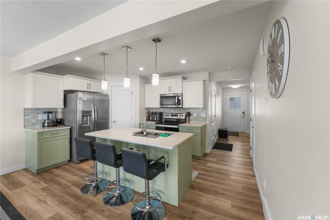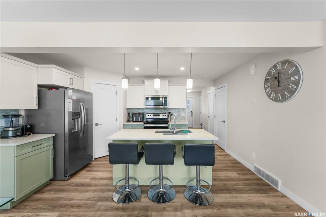 Welcome to 4793 Mutrie Cres, a beautifully designed 1,390 sq. ft. two-storey home with a single attached Insulated Heated Garage. The main floor features a bright, open-concept layout with luxury kitchen cabinetry, quartz countertops, a corner pantry, a convenient half bath, and patio door access to a pressure-treated wood deck and Xeriscape fenced backyard. Upstairs, you'll find three spacious bedrooms a 4-piece main bathroom, laundry closet, and a large flex room—ideal as an office, playroom, or TV area. The primary bedroom offers a generous walk-in closet and a private 4-piece ensuite. The basement is fully finished with a in unit laundry, Second kitchen with portable stove, dishwasher and a fridge. 4pc bath and a full bedroom completes the basement. This home is finished top to bottom and move in ready. Reach out to your realtor to book a viewing