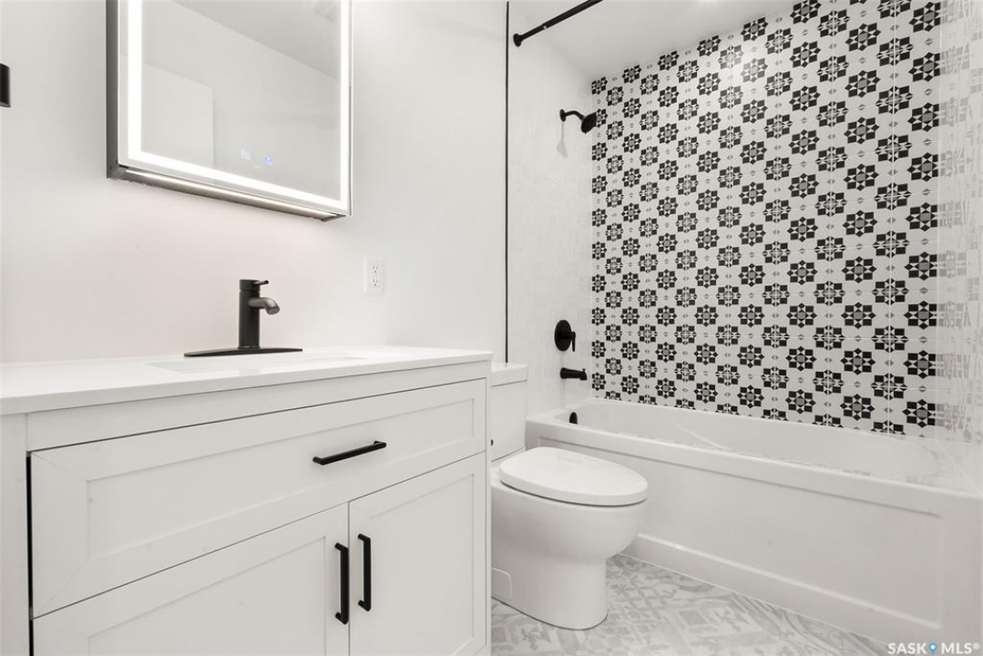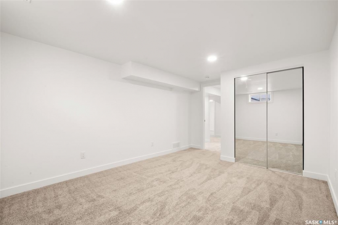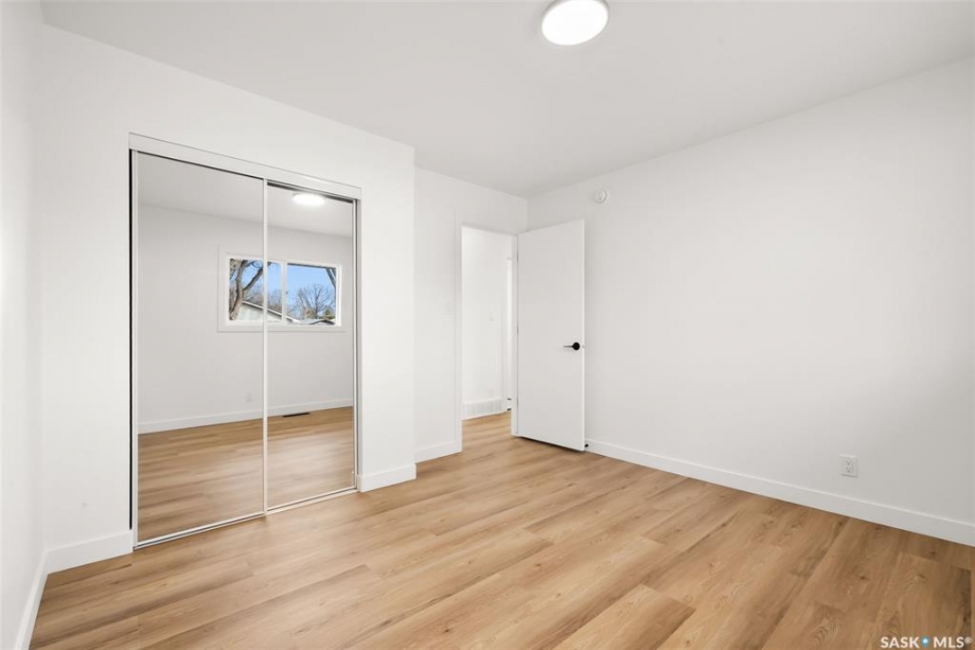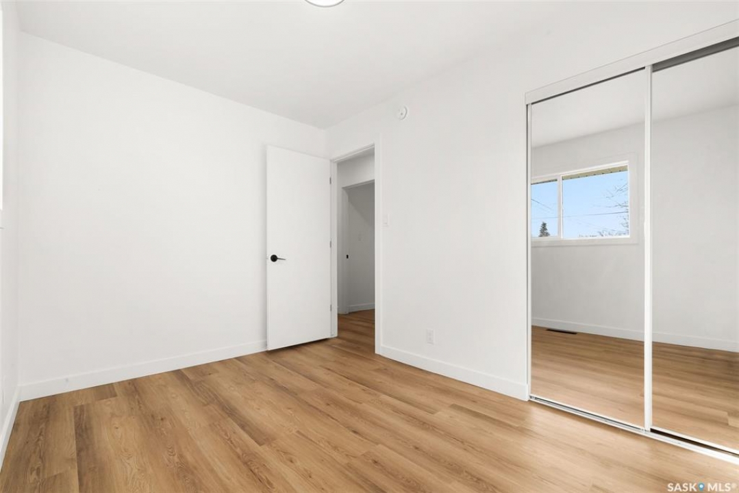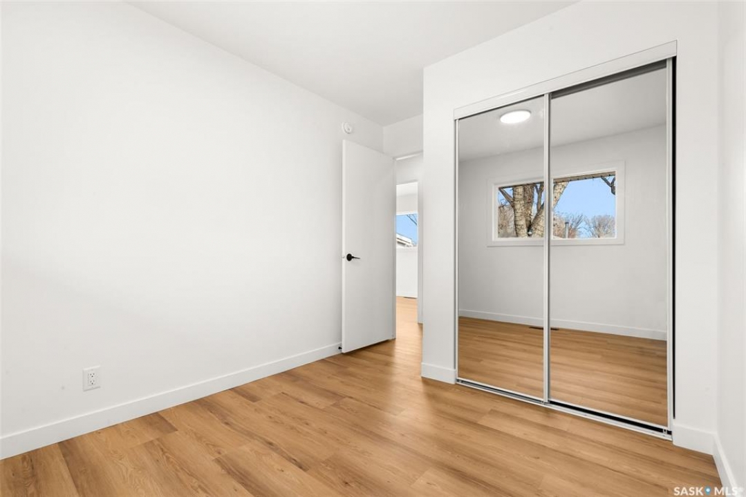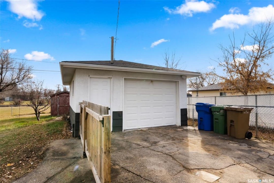 Located on one of the most desirable streets in the quiet Regent Park neighbourhood, this beautifully redeveloped home sits on a 7,000 sq. ft. lot backing green space! Professionally completed by Bouss Construction this property showcases quality craftsmanship and thoughtful design throughout. Step inside to a bright, open-concept main floor featuring sleek vinyl plank flooring and a neutral colour palette that feels fresh and inviting. The kitchen has been completely reimagined for both function and style, with quartz countertops, white cabinetry accented by black hardware, Hevea wood shelving, and a centre island with an eat-up bar. The dining area offers the perfect space for family dinners or entertaining. The living room features large windows and a custom feature wall with a built-in electric fireplace, TV insert and a side shelf for a modern, polished look. Down the hall are three spacious bedrooms and a fully renovated 4-piece bathroom showcasing custom tilework and updated fixtures. The basement extends your living space with a large rec room, a den ideal for a playroom or hobby area, an additional bedroom (window does not meet today's egress standards), a nicely curated 3-piece bathroom, and a laundry/utility room with extra storage. Outside, you'll find an oversized single detached garage equipped with a natural gas heater, plus a spacious yard perfect for kids or pets to enjoy. Additional value-added upgrades include new main-floor windows, new shingles on the house and garage, a newer water heater and brand-new kitchen appliances. This turnkey home offers the perfect combination of location, quality, and comfort — a rare find!