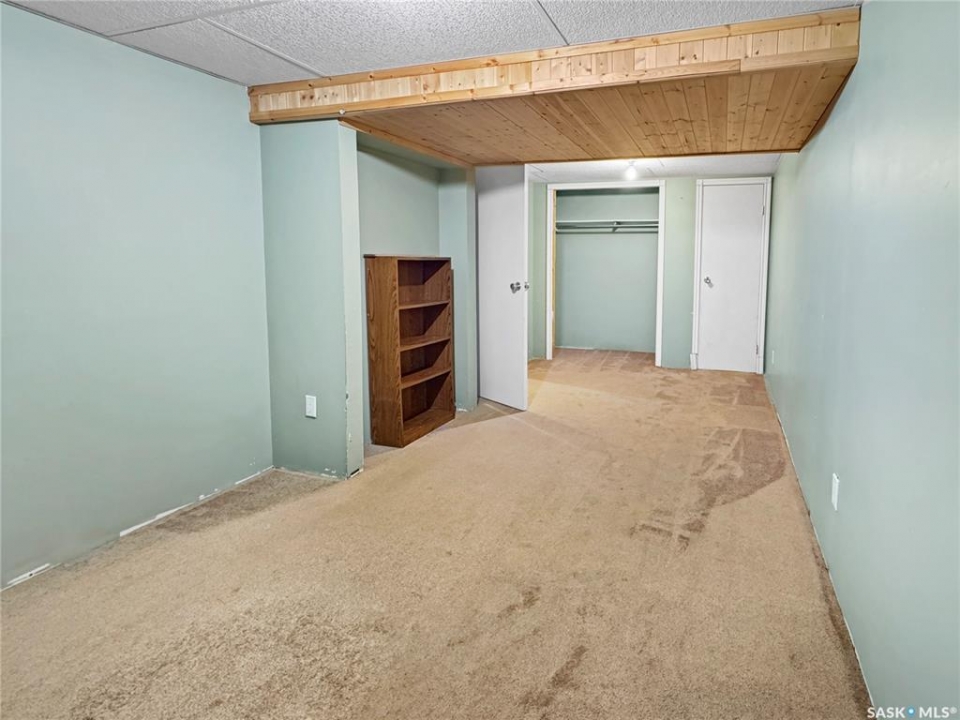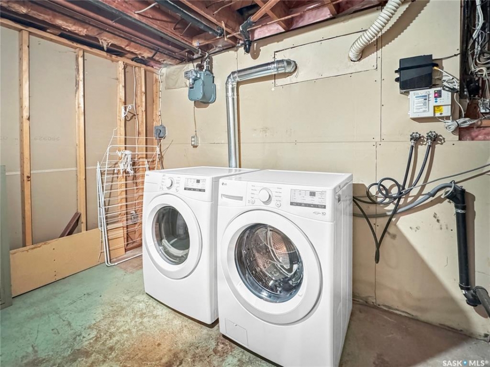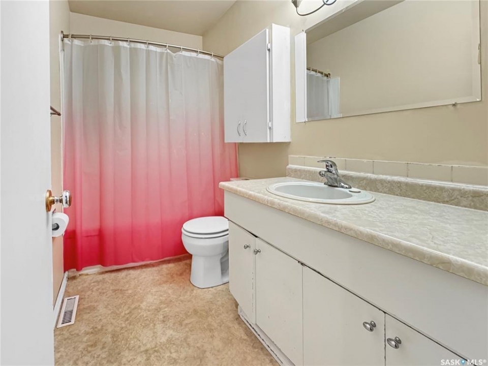This charming 4-bedroom, 2-bathroom bungalow is perfectly situated in a desirable area of North Battleford, backing directly onto a school park—an ideal setting for families. You'll love the convenience of being close to schools, shopping, and amenities while still enjoying the quiet comfort of a mature neighborhood. The main level offers a bright and functional layout featuring an open galley-style kitchen with direct access to the dining area, great for family meals or entertaining. The spacious living room is filled with natural light from a large picture window, creating a warm and inviting atmosphere. You'll also find three comfortable bedrooms and a 4-piece family bathroom on this level. Downstairs, the fully developed basement includes a large bedroom, a spacious recreation room, a 3-piece bathroom, plus plenty of storage and a separate laundry/utility area. The fenced backyard is perfect for kids, pets, or gardening, and includes two storage sheds and extra parking off the back lane. Major updates add peace of mind, including a new furnace (2025), new washer and dryer (2025), and newer shingles. This home offers great value, a fantastic location, and plenty of space for the whole family, a must-see! Call today for a private showing!