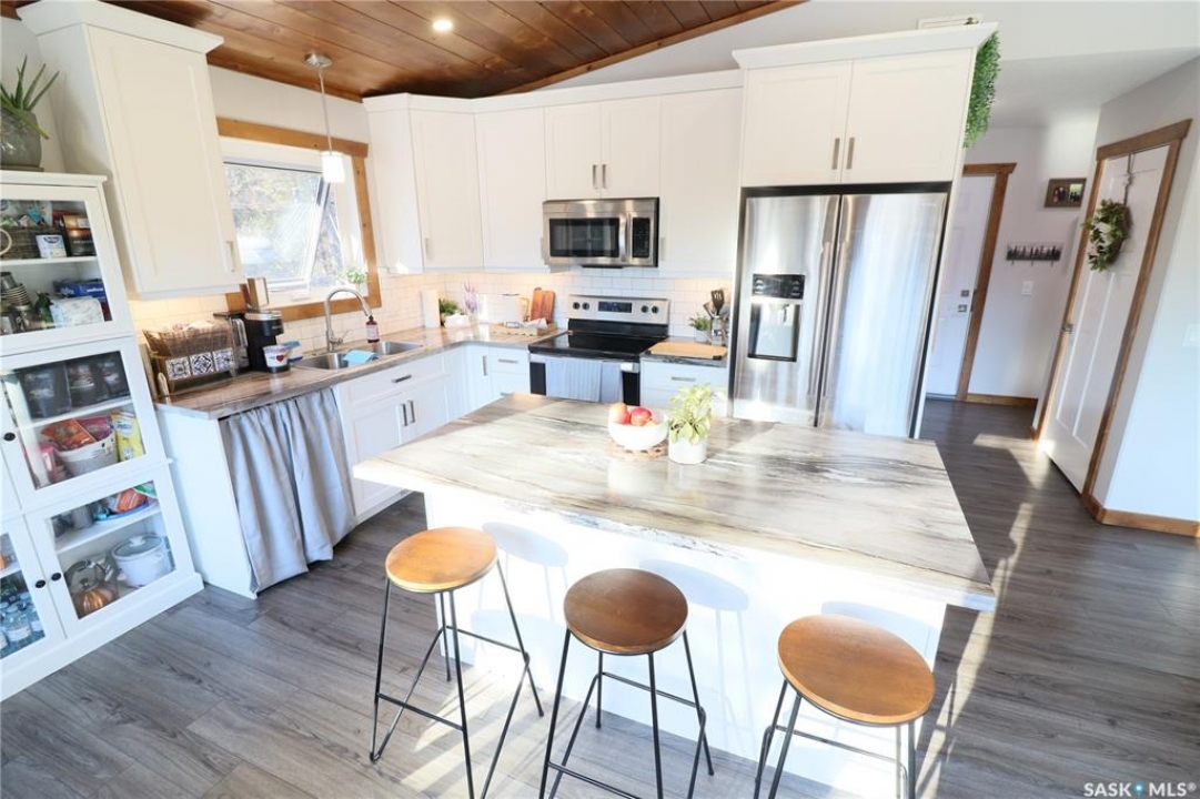 Welcome to 6 Cranberry Creek Crescent, located in the desirable Cranberry Creek development, just minutes from beautiful Candle Lake. This private, well-treed property offers 1.2 acres of peace and tranquility surrounded by nature. The oversized, heated double garage (28' x 26') includes a convenient 2-piece bathroom, mechanical room, and additional storage space - all not included in the listed garage dimensions. Above the garage, you'll find a bright and spacious living area with an open-concept kitchen, dining, and living room that is perfect for entertaining. Vaulted ceilings and an abundance of windows fill the space with natural light, creating a warm and welcoming atmosphere. The home features two comfortable bedrooms, a full bathroom, and a laundry/storage room. Step out onto the elevated deck to enjoy your morning coffee, host a BBQ, or simply take in the peaceful surroundings that Cranberry Creek is known for. Residents of Cranberry Creek enjoy access to an exclusive 3-hole golf course and a community clubhouse—ideal for family gatherings and neighbourhood get togethers. The area also offers excellent opportunities for outdoor recreation, with Torch Lake bordering the community (perfect for canoeing and kayaking) and several kilometers of scenic walking trails to explore. Experience the calm, privacy, and natural beauty of Cranberry Creek. Call today to schedule your private showing!