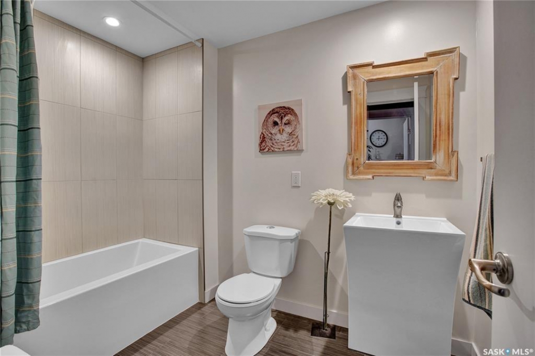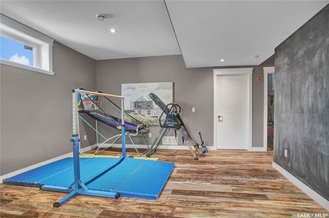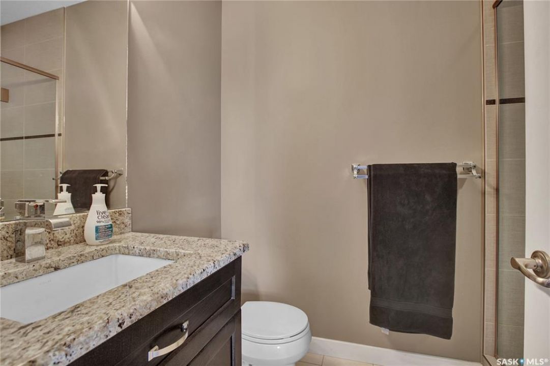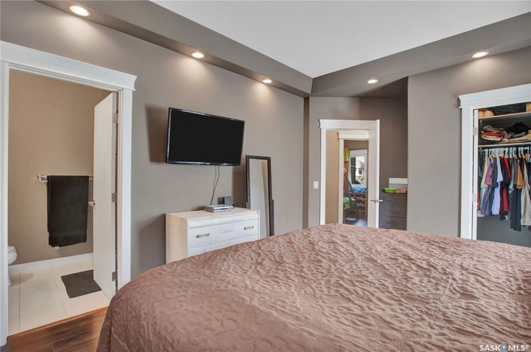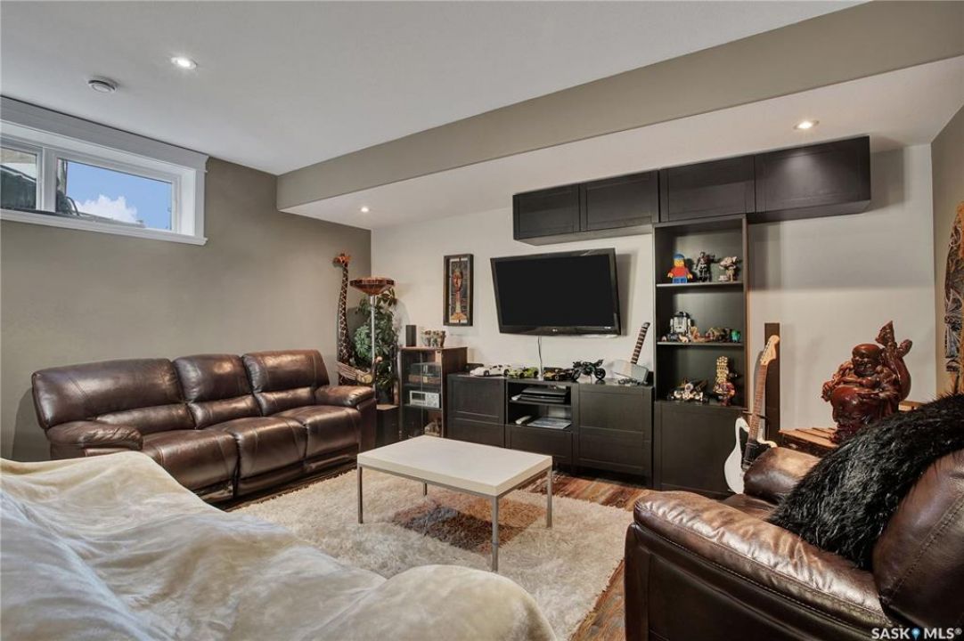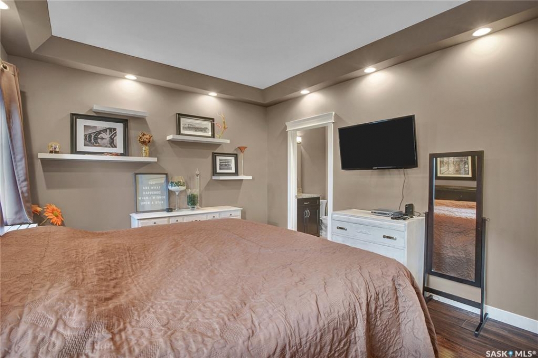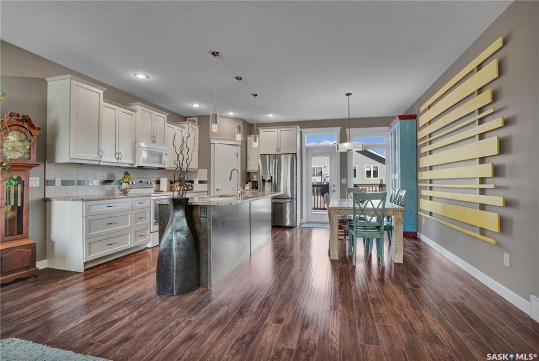 Welcome home to this immaculate 1,316 sq. ft. 4-bedroom, 3-bathroom bungalow—fully finished top to bottom and beautifully maintained throughout. The main floor offers a bright, open layout with a spacious living room featuring rich laminate floors and maple railings with metal spindles. The timeless two-tone kitchen includes granite countertops, tile backsplash, a large eat-up island, walk-in corner pantry, and under-cabinet lighting. The dining area easily accommodates large gatherings and includes a glass patio door to the back deck, plus transom windows that fill the space with natural light. Down the hall, the primary suite awaits with an upgraded drop-soffit ceiling, walk-in closet, and a 3-piece ensuite with custom tiled shower. Two additional bedrooms and a full 4-piece bathroom with tile floors and granite countertops complete the main level. The basement was designed for entertaining. A fantastic wet bar area features built-in cabinetry, bar fridge, and a raised seating peninsula. The massive family room is perfect for hosting game nights, movie nights, or setting up your home theater, and the adjoining games area offers plenty of room for a pool table or poker table. You'll also find a large bedroom, another full 4-piece bathroom, and a spacious laundry/storage/utility room—plus extra storage under the stairs. Outside, this property sits on a huge inside-corner, irregular lot with ample room for a trampoline, play structure, firepit, and more. Enjoy relaxing on the back deck with plenty of open views behind you looking out towards the golf course. Additional highlights include central A/C, HRV, an extra-wide concrete driveway, and an oversized 26'x26' attached garage that is fully insulated and drywalled. Upgraded bungalows like this are a rare find in Warman—this one shows 10/10 and is ready for its next owners. Contact your favourite Realtor today to book a private viewing!