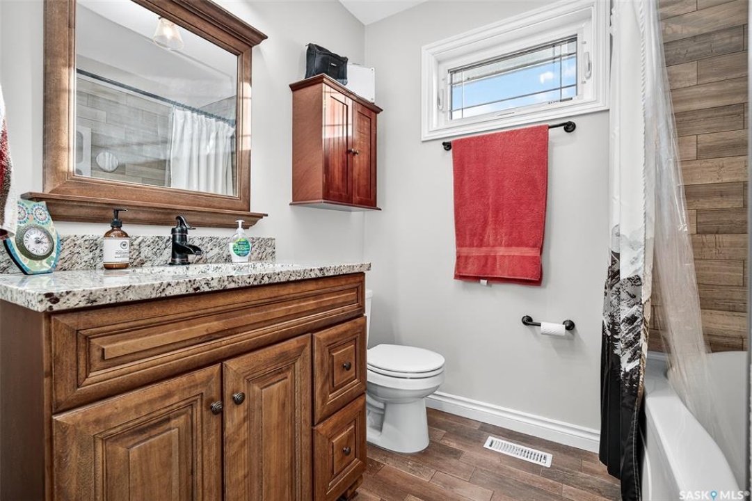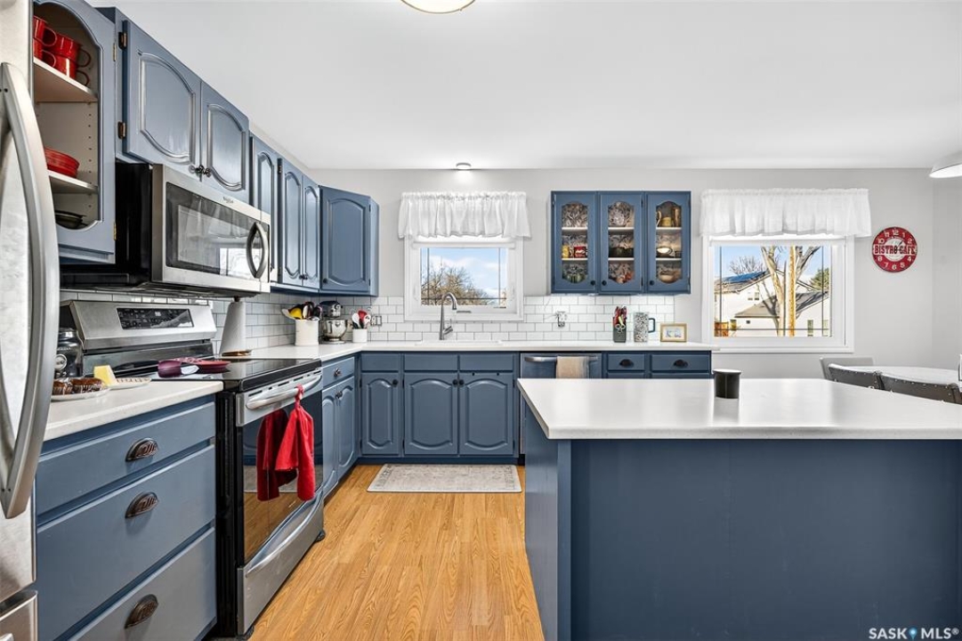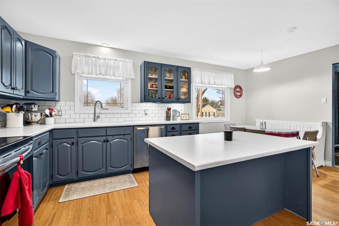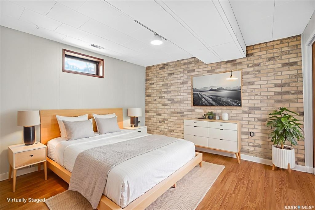 Check out this beautifully updated 1975 bungalow! This 4 bed / 2 bath home with almost 1100 sq.ft. of living space and a double car garage! On arrival you are greeted by a classic brick home with a brand new concrete driveway. Coming into the home you enter into a large living room with lots of natural light - boasting a natural gas fireplace and a gorgeous mantle. The spacious kitchen has lots of cabinet and counter space! Featuring an island and a stainless steel appliance package including an induction stove! Down the hall we have a huge master bedroom with "his and hers" closets! We also have a beautifully updated 4 piece bathroom with a gorgeous tile tub surround and another good sized bedroom! Downstairs we have a large family room featuring a wood burning fireplace. There are 2 more bedrooms and a 3 piece bathroom! Finally there is a huge laundry/mudroom/storage room! Outside we find a nice double detached garage that has just had a new tin roof and had the exterior redone making it look very modern! The patio area has a very private feel to it - the perfect place to relax at the end of the day. The yard also features a producing apple tree, shed and another double concrete driveway behind the garage. Lots of updates in the last few years including: new sewer and water line and backflow valve; new front concrete driveway and walkway; an updated kitchen, almost completely painted inside and outside; new stainless steel fridge, induction stove, dishwasher; new tin roof on garage; and exterior tin on garage; furnace serviced; and ducts cleaned. If you are looking for a great family home this could be it! Reach out today for more information!