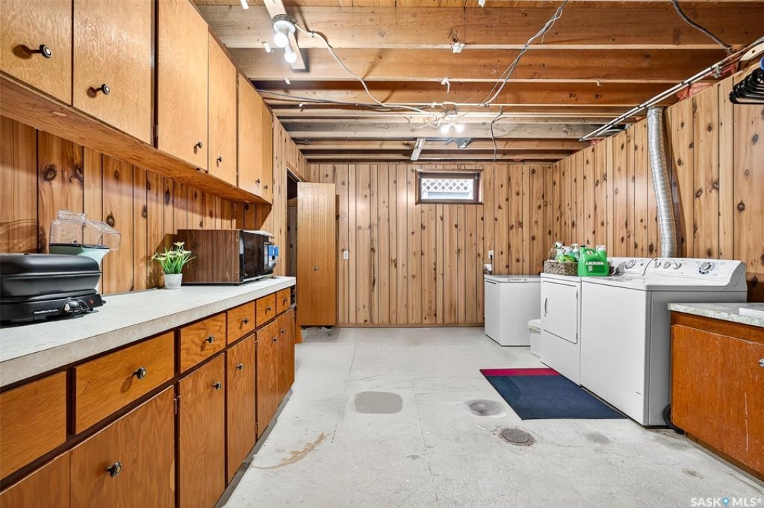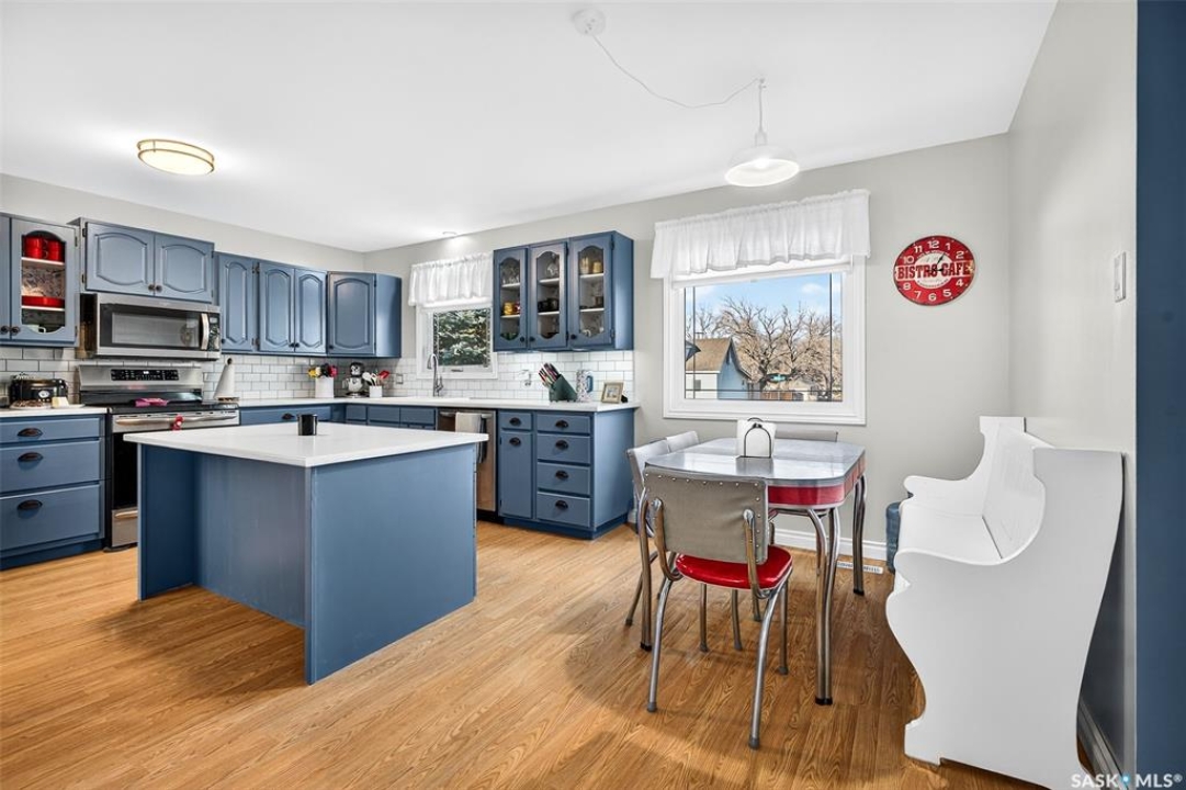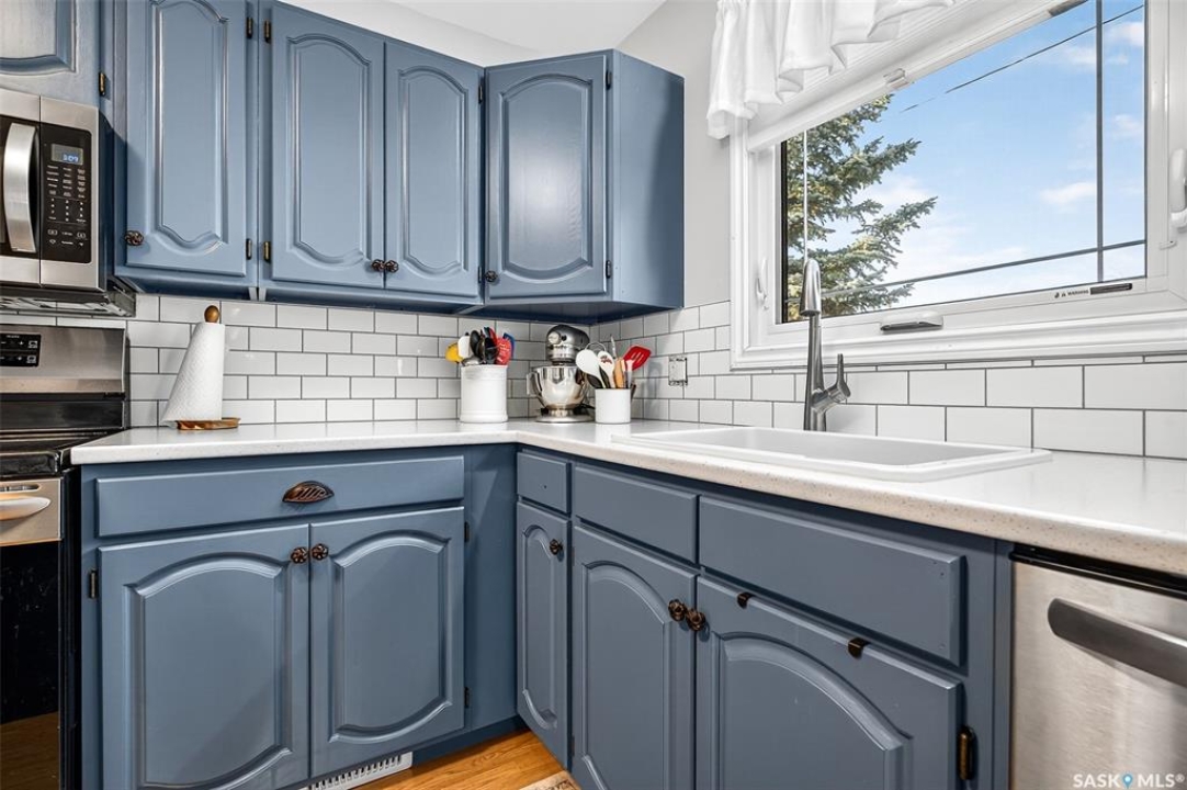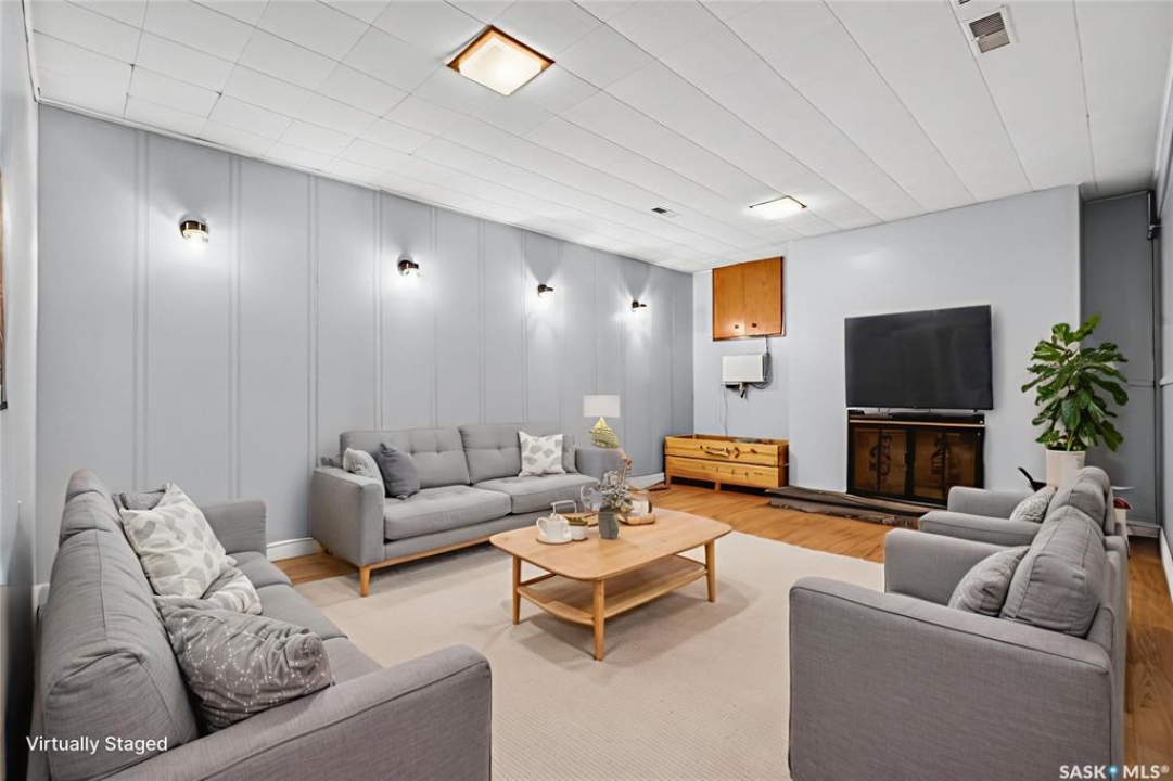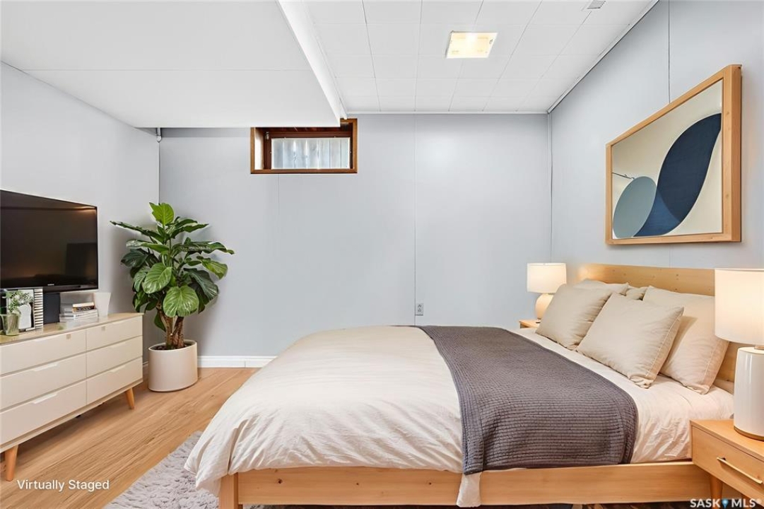 Check out this beautifully updated 1975 bungalow! This 4 bed / 2 bath home with almost 1100 sq.ft. of living space and a double car garage! On arrival you are greeted by a classic brick home with a brand new concrete driveway. Coming into the home you enter into a large living room with lots of natural light - boasting a natural gas fireplace and a gorgeous mantle. The spacious kitchen has lots of cabinet and counter space! Featuring an island and a stainless steel appliance package including an induction stove! Down the hall we have a huge master bedroom with "his and hers" closets! We also have a beautifully updated 4 piece bathroom with a gorgeous tile tub surround and another good sized bedroom! Downstairs we have a large family room featuring a wood burning fireplace. There are 2 more bedrooms and a 3 piece bathroom! Finally there is a huge laundry/mudroom/storage room! Outside we find a nice double detached garage that has just had a new tin roof and had the exterior redone making it look very modern! The patio area has a very private feel to it - the perfect place to relax at the end of the day. The yard also features a producing apple tree, shed and another double concrete driveway behind the garage. Lots of updates in the last few years including: new sewer and water line and backflow valve; new front concrete driveway and walkway; an updated kitchen, almost completely painted inside and outside; new stainless steel fridge, induction stove, dishwasher; new tin roof on garage; and exterior tin on garage; furnace serviced; and ducts cleaned. If you are looking for a great family home this could be it! Reach out today for more information!