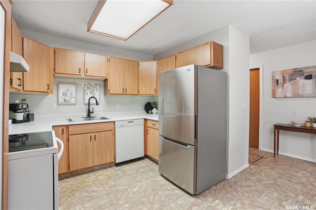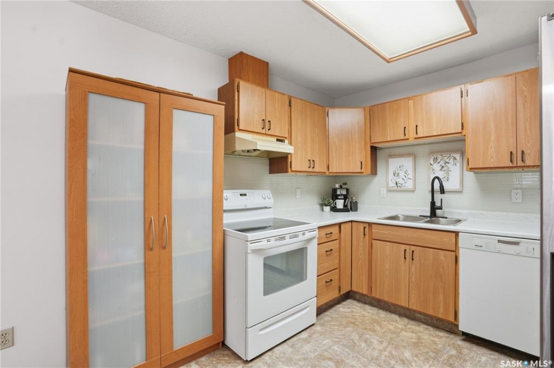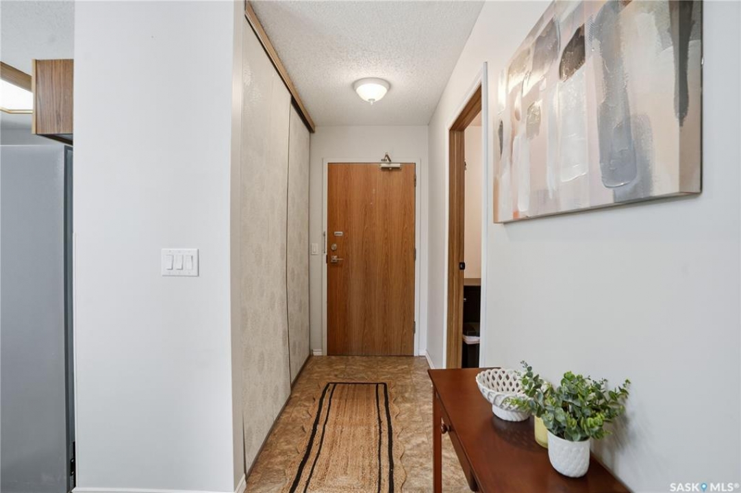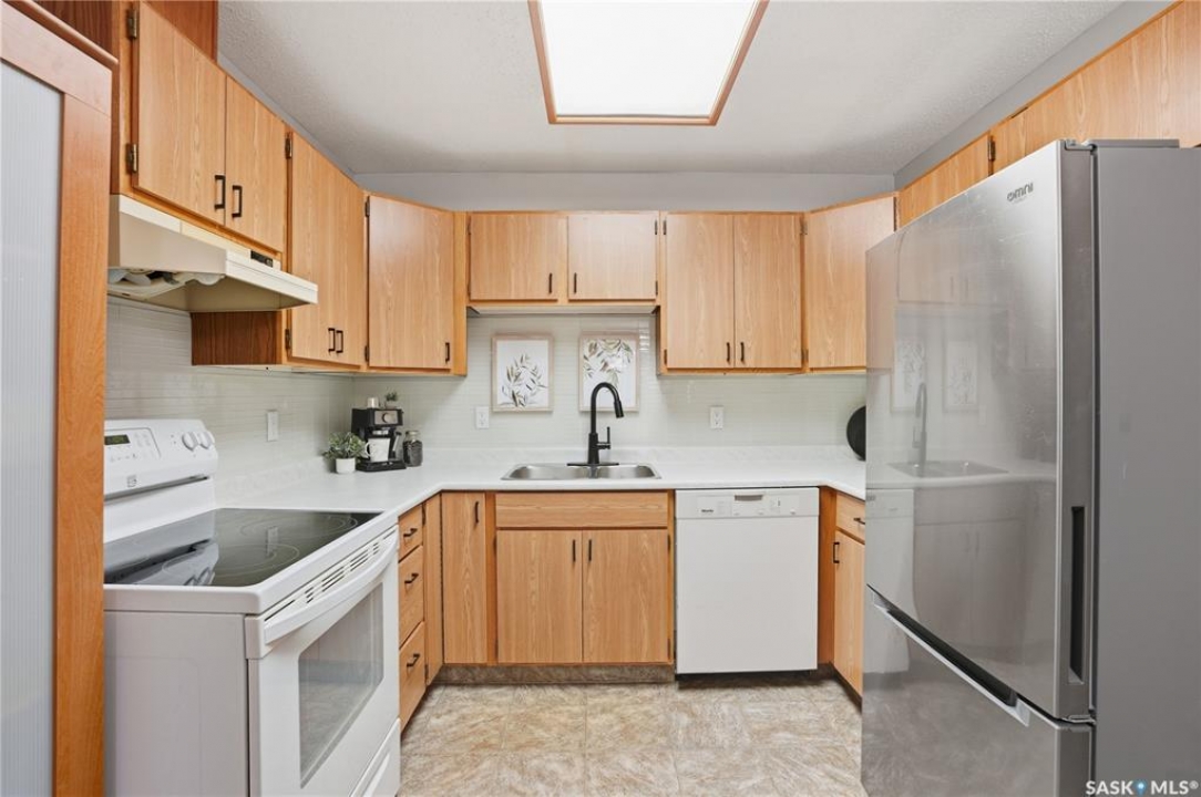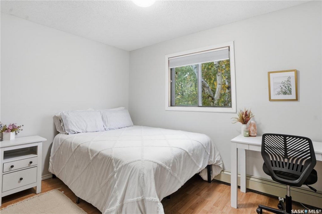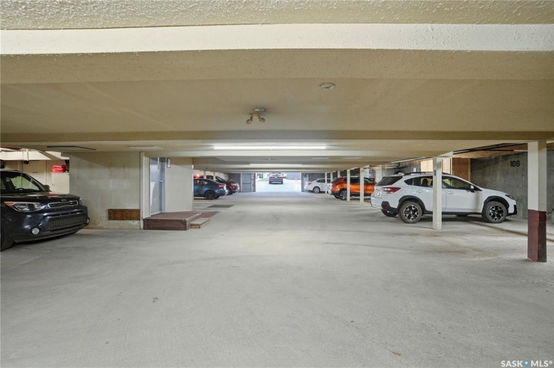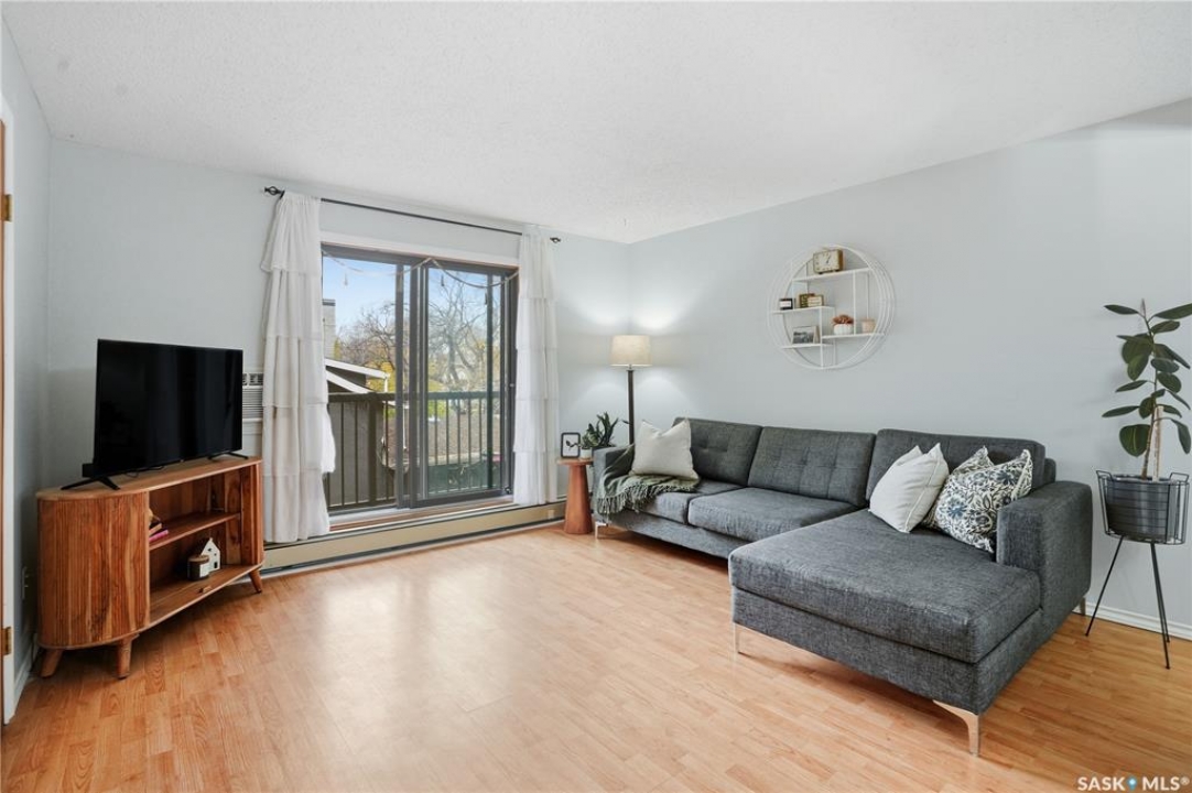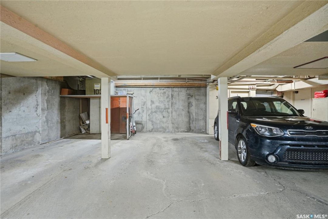 2-Bedroom Condo with Underground Parking in a Prime Varsity View Location for an Amazing Price! Welcome to this bright and spacious 2-bedroom condo at 204-1006 9th Street East, offering an incredible location just minutes from the U of S, University Hospital, and the amenities of downtown and 8th Street. This unit features an abundance of natural light and has been well-maintained with numerous updates, including newer paint throughout. The functional kitchen includes a bright eating area, an upgraded fridge and Miele dishwasher, recently upgraded countertops and backsplash, and ample cabinet space. The large living room provides access to a desirable West-facing balcony. The four-piece bathroom has been beautifully updated with a new vanity, toilet, fixtures, and vinyl tile flooring. The primary bedroom features a closet that comes with a built-in organizer. The second bedroom is currently configured with French doors leading to the living room, making it ideal for a home office, den, or guest room. Enjoy the convenience of in-suite laundry with a full-sized washer and dryer, plus an adjacent storage room. The unit also includes an air conditioning unit for comfort, and a valuable heated underground parking stall. The secure building features elevator access for easy living. This is the perfect opportunity for students, professionals, or anyone seeking an affordable, turn-key home in Varsity View. Call today for your private viewing!