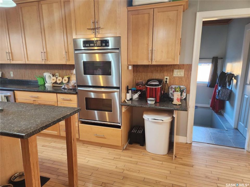 Welcome to this charming 1445 sq ft character home located in Nipawin, SK. The wall of windows in the sunroom entrance have you hooked the minute step into this space. The large living room leads you to the designer kitchen filled with maple cabinets and hardwood flooring. If the double convection ovens don't grab your attention, the natural gas indoor grill and cooktop will surely do that. The dining room has garden doors to the wonderful outdoor deck space. A 2 piece bathroom and a cold storage room round off the main floor nicely. The 2nd floor has a primary bedroom complete with a walk in closet and a 4 piece ensuite, and 2 more bedrooms. The basement has another cold storage room, family room, laundry, 3 piece bathroom and a bonus space great for extra storage/playroom or an office. The yard is surrounded be a new fence, shed and a 2 car detached heated garage. New shingles have been placed on the house and garage between 2022-2024. Lots of parking space. This is a unique property and a must view to see the full potential. Call today to view.