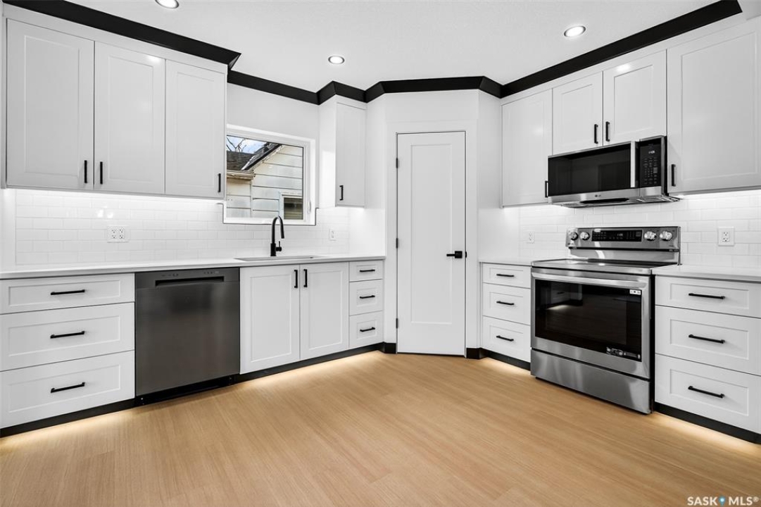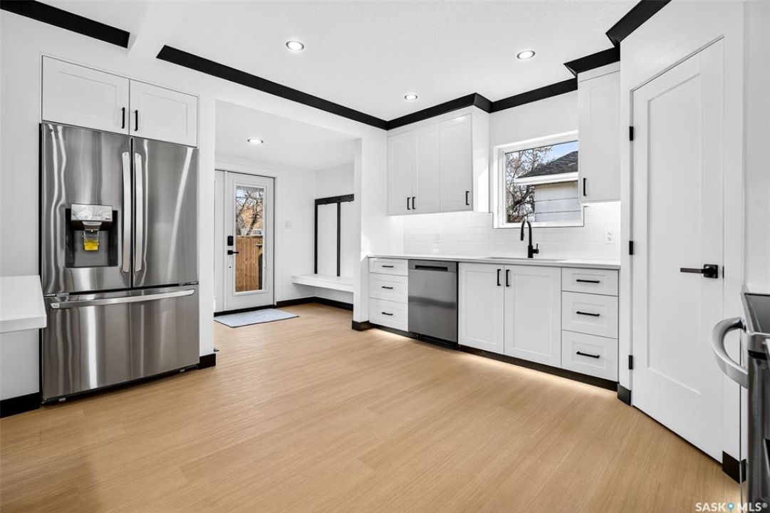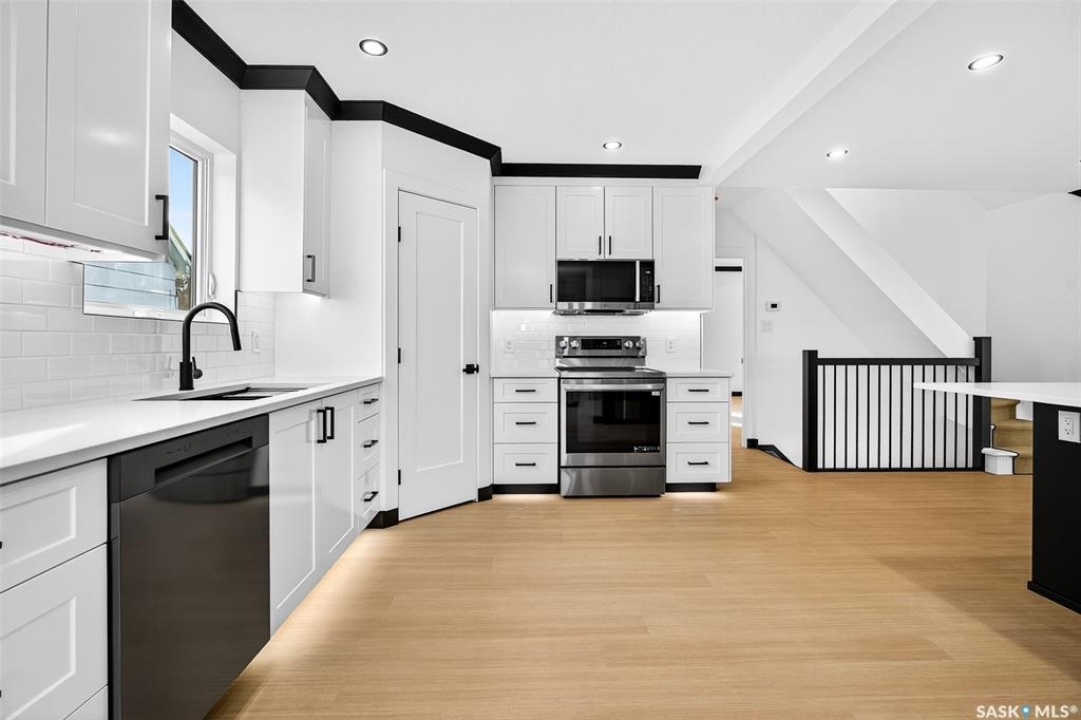 Be ready to be wowed as the pictures don't do this home justice!! This home has had a complete makeover! Entering through the large foyer with built in bench and cubbies leads you to the oversized and naturally bright living room with electric fireplace and new vinyl plank flooring. This space is large enough for a living room space and dining space at the back if the large eat-up island doesn't suffice. A step up into the huge kitchen is where you will find the island with quartz countertops. New stainless steel appliances included with plenty of cabinetry and corner pantry is great for cooking and baking. There is a good sized mudroom that hosts the laundry pair and access to your back deck and yard. Just off the other side of the kitchen is your full main bathroom and the Primary bedroom. This room is a great size and can accommodate a king bed and furniture. There is a unique closet space that leads into your full ensuite bathroom with in floor heat. Upstairs you will find 2 more bedrooms with built in storage cabinets and drawers as well as extra storage in the cubby spaces. In between these two rooms there is a convenient 2pc bathroom. The lower level has a sunken family room with wet bar perfect for the teenagers in the home or a great space for company. A large bedroom and 3pc bathroom with walk-in shower are a great addition. As an added bonus there are laundry hookups across from bathroom and under the stairs. Completing the lower level is a storage space and large utility room. Enjoy the fully fenced yard as well as a Dbl detached garage that has a workshop room already set up, but could be converted back if needed the extra parking. Come and check it out today!
