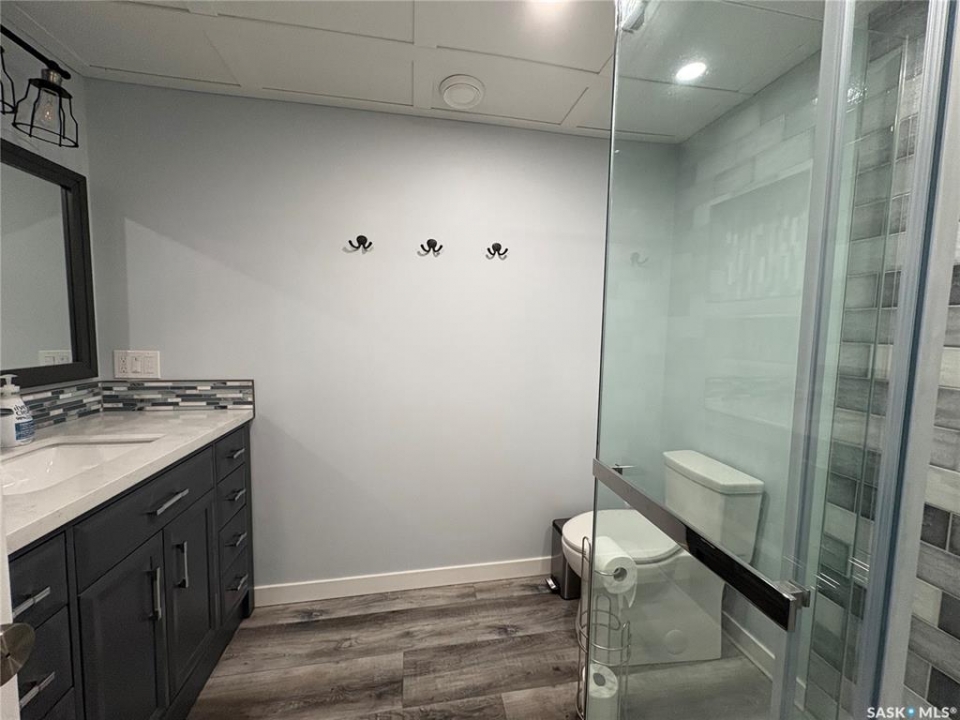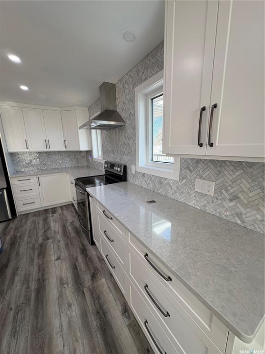 This beautifully renovated home offers approximately 2,400 sq ft of fully finished living space. Completely transformed in 2021–2022, giving the home a like-new feel with long-term comfort and efficiency. The main floor features an open layout with a custom kitchen, quartz countertops throughout, an undermount sink, induction stove, and a range hood vented outside. The bright living and dining area leads to the new back deck and landscaped yard. This level also includes a spacious primary bedroom with a custom closet, a second bedroom, an office that could function as a third bedroom, a custom front entry, and a modern tiled bathroom. The fully finished lower level includes three more bedrooms with custom closets, a large family room, play area, ample storage, and a beautifully finished bathroom with a tiled walk-in shower. The laundry room impresses with custom cabinetry, quartz counters, a sink, and two full laundry pairs. The basement was redone with spray-foam insulation, an insulated dry-core subfloor, and soundproofing. Upgrades include a new 200-amp underground service, all-new electrical with LED lighting and Lutron smart switches, all-new plumbing and ducting, central heat and AC, two 40-gallon water heaters, a Vanee HVAC unit, sump pump, backflow preventer, water treatment system, and Nest thermostat. Energy-efficient insulation upgrades and European tilt-and-turn windows provide excellent performance throughout. Outside, the home features new siding, new front and back decks, updated waterproofing (weeping tile, membrane, sump), professional landscaping, and new sod (2023). The property sits on a 75' × 120' lot with roughly 1,218 sq ft per level. With Everything in this home being new within the last few years, this home offers exceptional quality, modern design, and comfort that's hard to find!