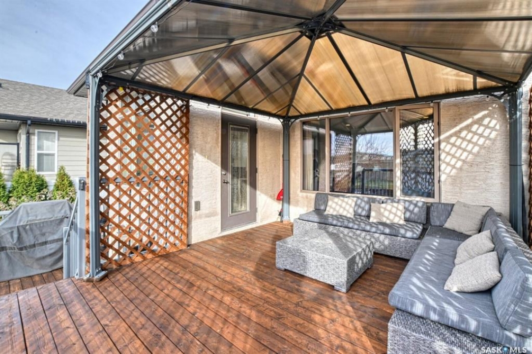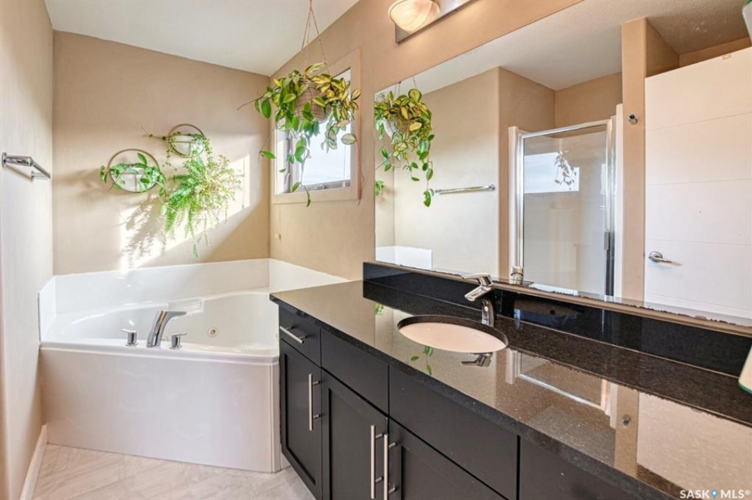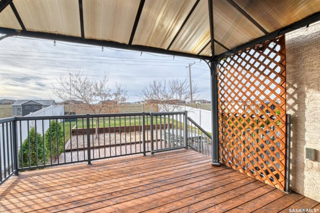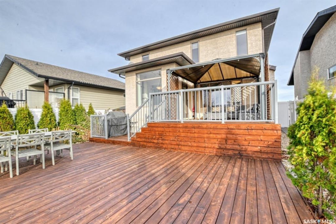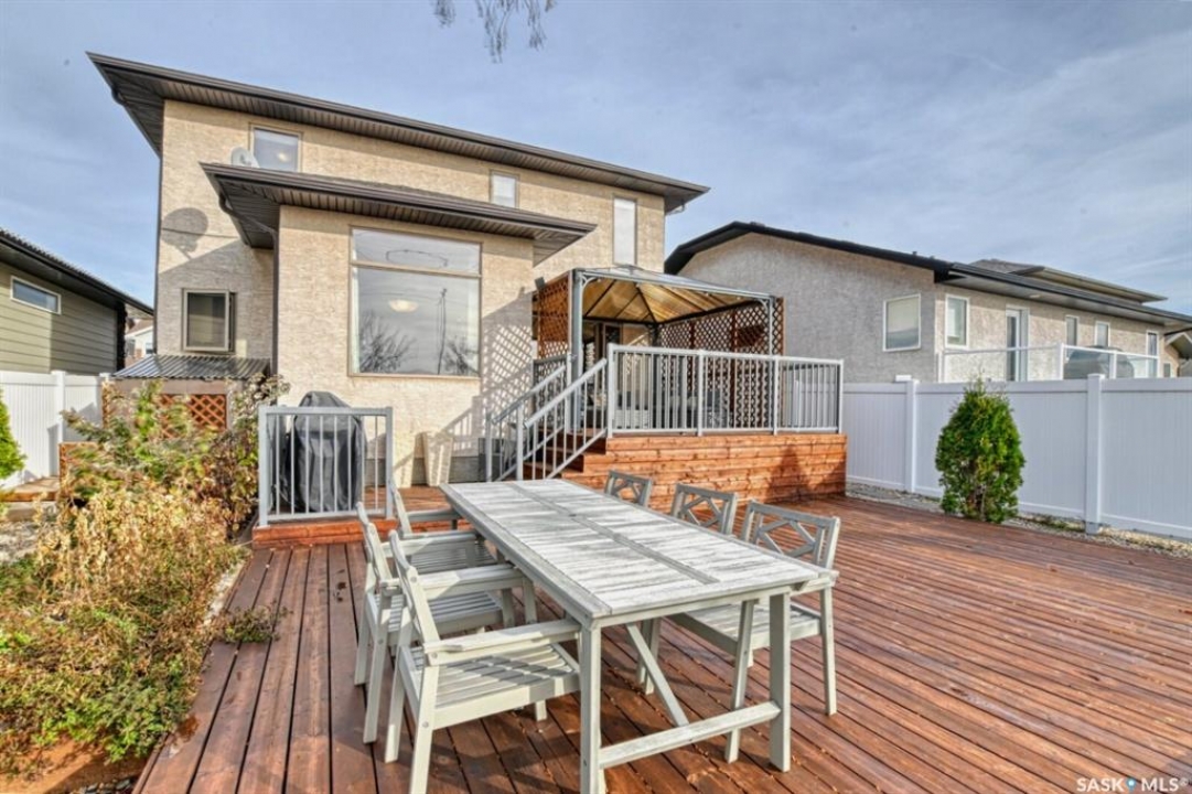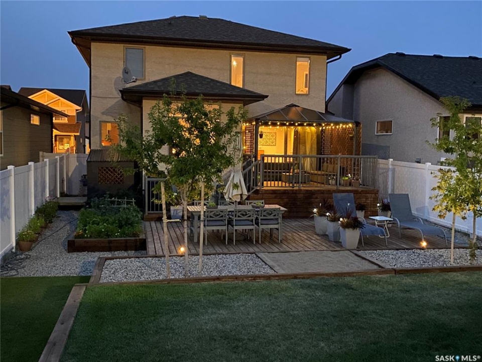 Spacious and well-designed, this beautiful former show home in Greens on Gardiner is loaded with desirable features throughout. On the main level, attractive hardwood flooring and gas fireplace in the living room is enhanced by an abundance of natural light. An island with breakfast bar, pantry, two toned cabinetry with tiled backsplash and new stainless steel appliances are featured in the kitchen. The dining nook has 10' ceilings. A convenient two piece bath and laundry room is well placed with access to the 22' x 22' double attached garage. Upstairs, the primary bedroom offers a dream five piece ensuite, a spacious walk-in closet, an additional two bedrooms and a four piece main bathroom. A partially finished basement has a rec room, den, bedroom and a roughed-in bathroom ready for the new owner to pick the finishes. Enjoy the beautifully landscaped large backyard with an oversized deck. The fully fenced yard is enhanced with numerous trees and shrubs. Don't miss out on the opportunity to make it yours, call today to book your viewing!
