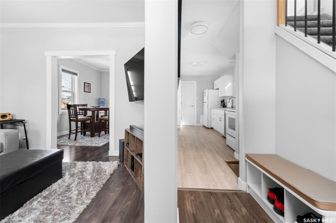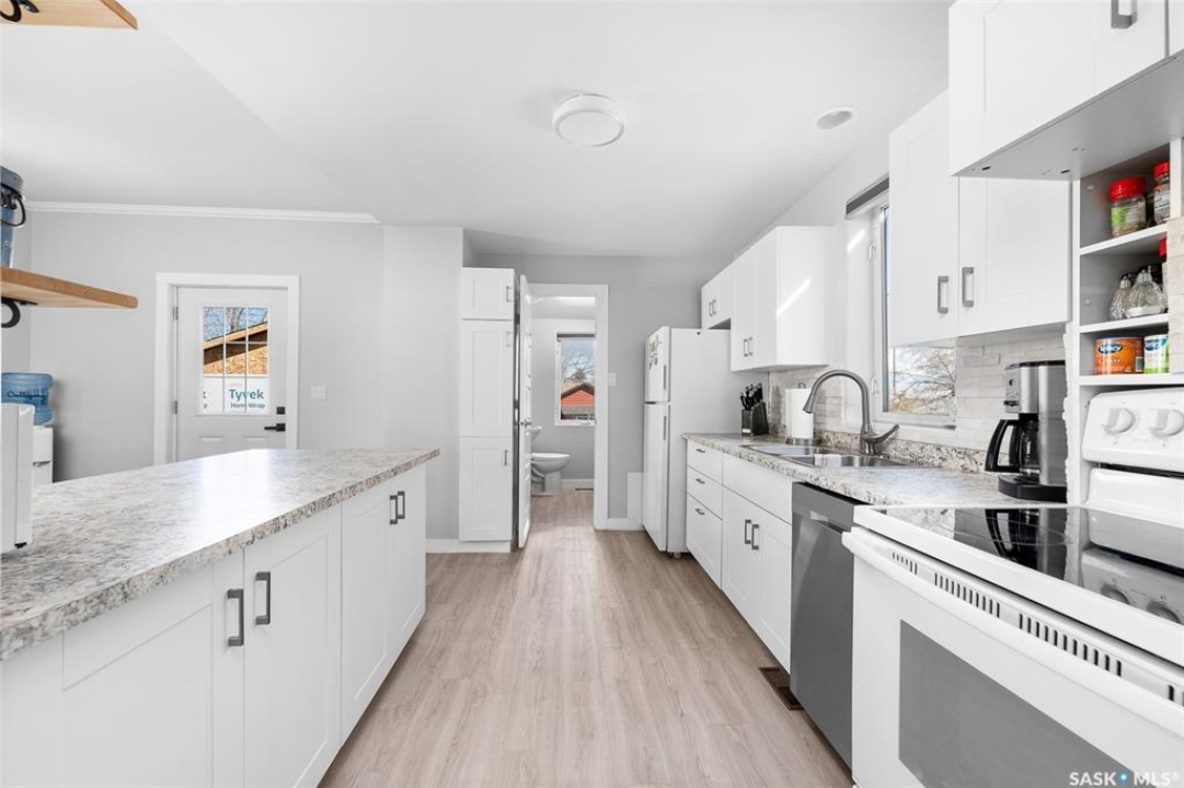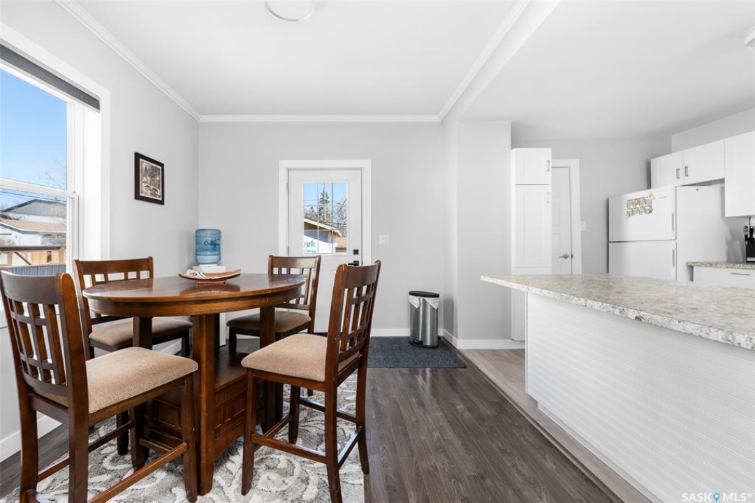 Are you looking for a beautiful character home in the avenues? This could be your dream home! This beautifully updated 2 story home boasts over 1,100 sq.ft. as well as a brand new heated 24'x24' garage and a workshop! With some of the best curb appeal on the block this home features a gorgeous new front deck perfect for that morning coffee. Coming inside you are greeted by a bright and spacious living room featuring engineered hardwood that flows into the dining space! The modern kitchen features heated floors, a large eat-up island and soft close drawers! At the back of the main floor is a cute 2 piece bath that also features a heated floor! Heading upstairs we have 3 good sized bedrooms all with good sized windows. As well as a updated 4 piece bathroom! In the basement we have a rubber floor throughout giving you a large storage area and laundry space. Outside we find a BRAND NEW insulated and heated garage with 2 8'x10' overhead doors, as well as a separate 12'x20' workshop! The yard is fenced and has parking space behind the garage. Some updates over the last couple years: New Furnace '22, New Hot Water on Demand '23, New Air Conditioner '23, new fridge, newer sewer and water lines in '24, plus the new garage! This beautiful character home is move-in ready! Reach out today to book your showing!