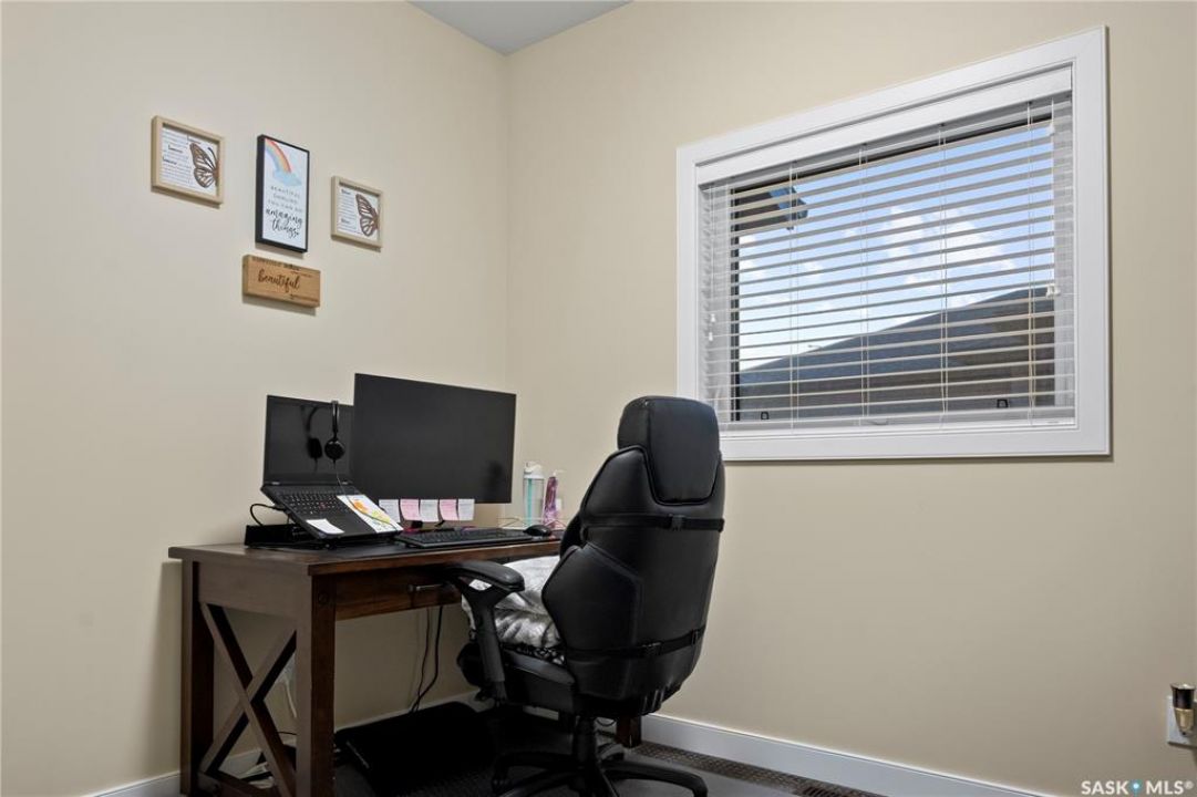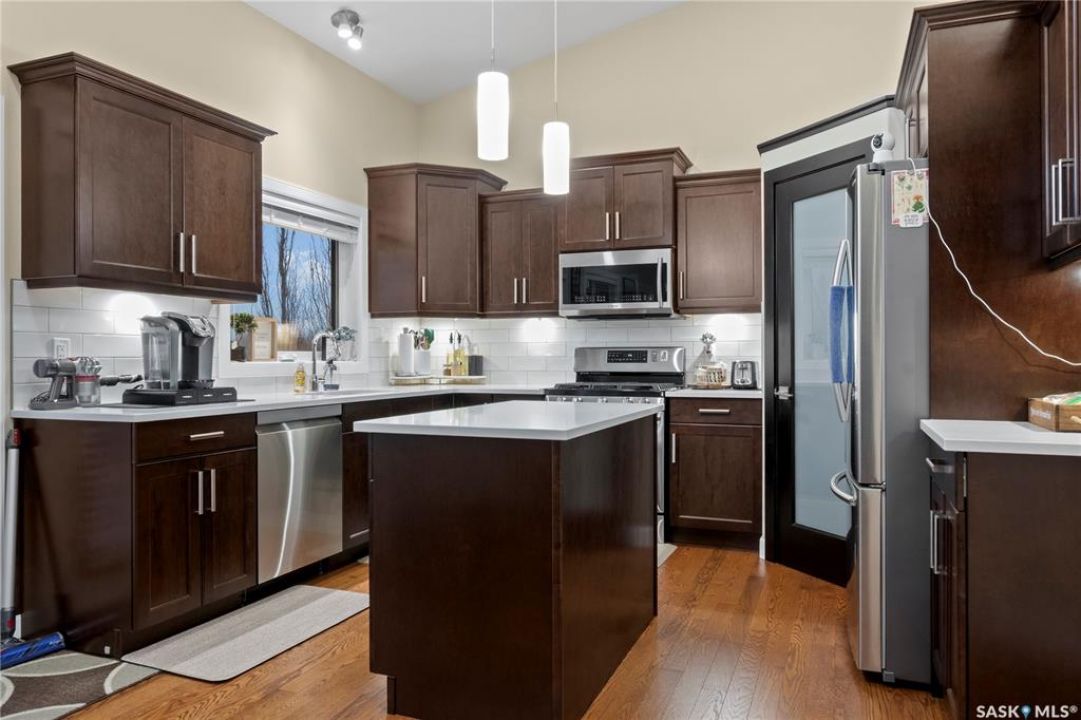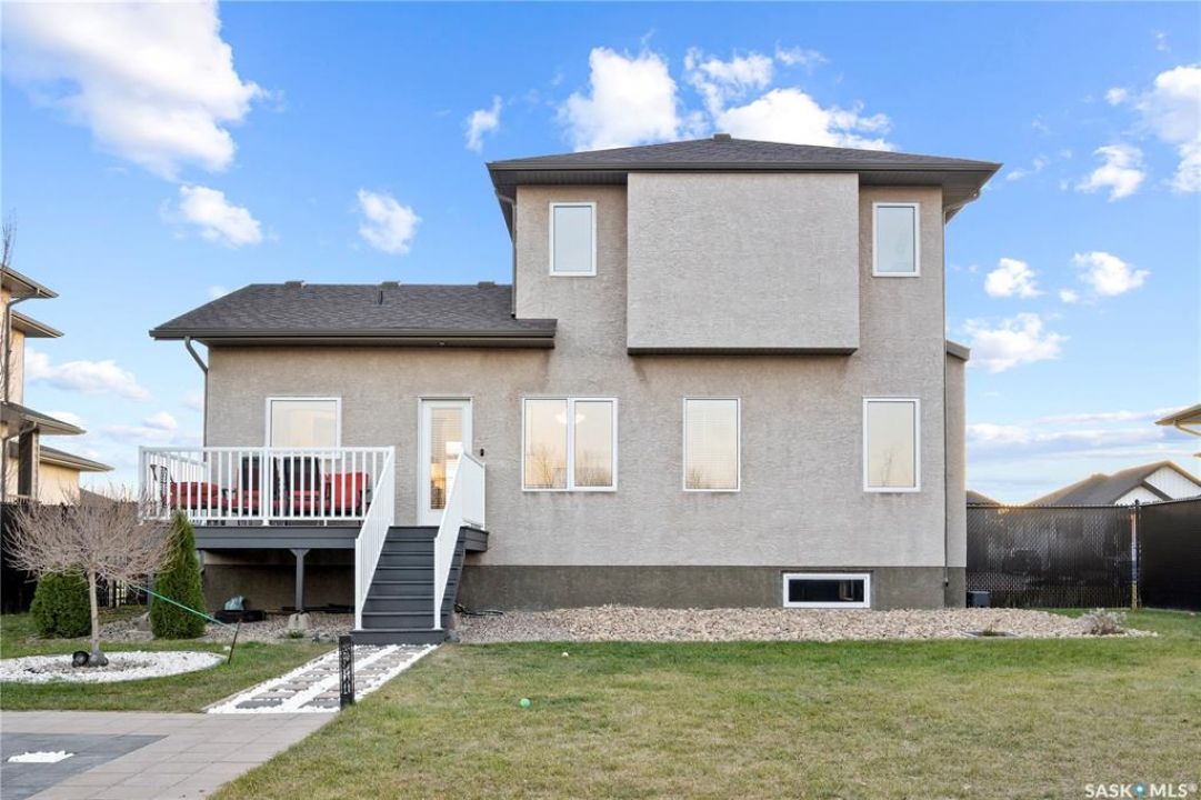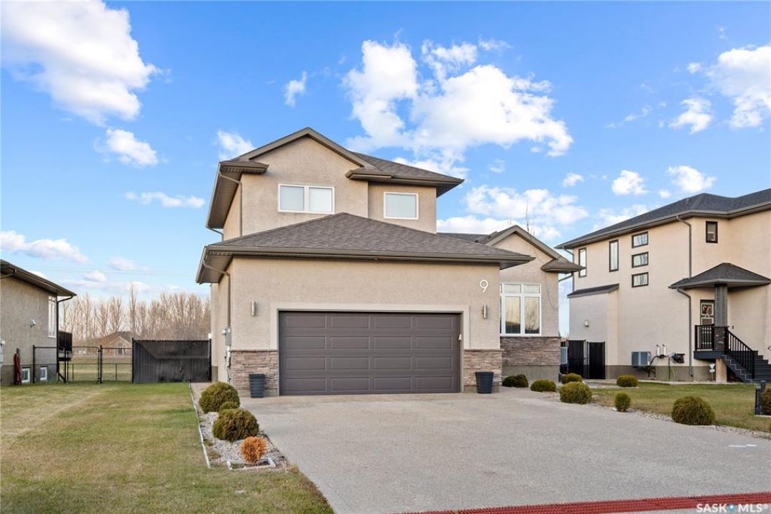 Welcome to 9 Stanford Road, located in the family friendly subdivision of Bower West in White City. This 1716 sq ft two storey home offers a bright, open layout designed for comfortable family living. The front living room provides a warm and welcoming space as you enter the home. The kitchen overlooks the backyard and features stainless steel appliances, a gas range, microwave with exterior venting, and quartz countertops. Adjacent to the kitchen is a dining area with access to the large, landscaped, and fenced backyard, complete with a deck and natural gas line for your barbecue. The family room is cozy and inviting with a natural gas fireplace framed by custom cabinets and open shelving on both sides. Beautiful hardwood flooring runs throughout the main living areas. A main floor den makes an ideal home office, and the main level is completed by a two piece bathroom and convenient laundry closet. The second floor offers three bedrooms, including a spacious primary suite with a walk in closet and a four piece ensuite featuring a corner tub. Two additional bedrooms and another four piece bathroom complete the upper level. The basement is large, open, and ready for future development to suit your needs. Located in a quiet and desirable neighbourhood close to parks, schools, and local amenities, 9 Stanford Road is an excellent opportunity for families seeking space, comfort, and community. Contact your real estate professional to book a viewing today.