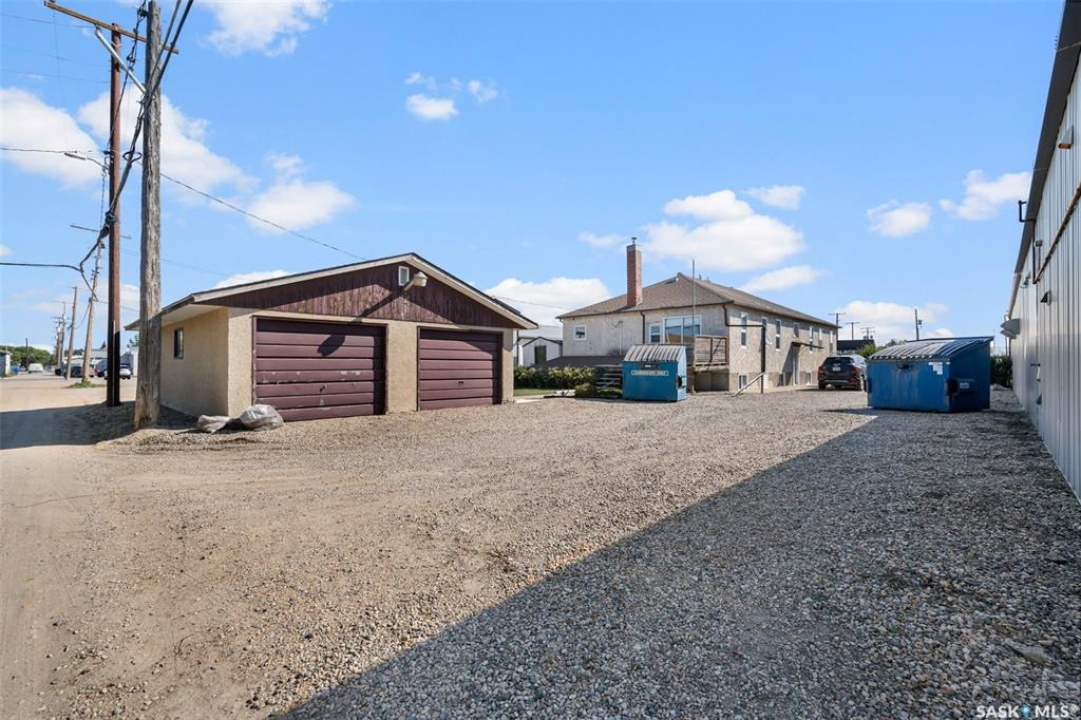 Looking for a great opportunity? This building located on Main Street in the busy town of Watrous offers not only a building with store front and 2 bedroom living quarters but 3 - 1 bedroom suites with shared bath on the lower lever plus a detached garage with workshop area and private off street parking. Building has been constantly updated, most recently with asphalt shingles and new sidewalk/paving/curbing. Store front is accessed from the street and has retail area, treatment room, office and a walk in cooler (currently used as storage). Side entrance accesses both up and downstairs, Upstairs at the rear of the building is living quarters with 2 bedrooms, full bath and open kitchen/dining/living room with patio doors to rear deck overlooking the back yard and detached garage. Downstairs you'll find 3 cozy one bedroom suites with a shared 4 pc bathroom. There is also a laundry room and utility room. Outside is a private yard partially fenced with ample parking for all tenants when fully rented. The health market is a long established business specializing in health foods, supplements related giftable items. Watrous is a thriving community with high demand for rentals, giving this property excellent cash flow potential. Call your agent today to arrange your private viewing!