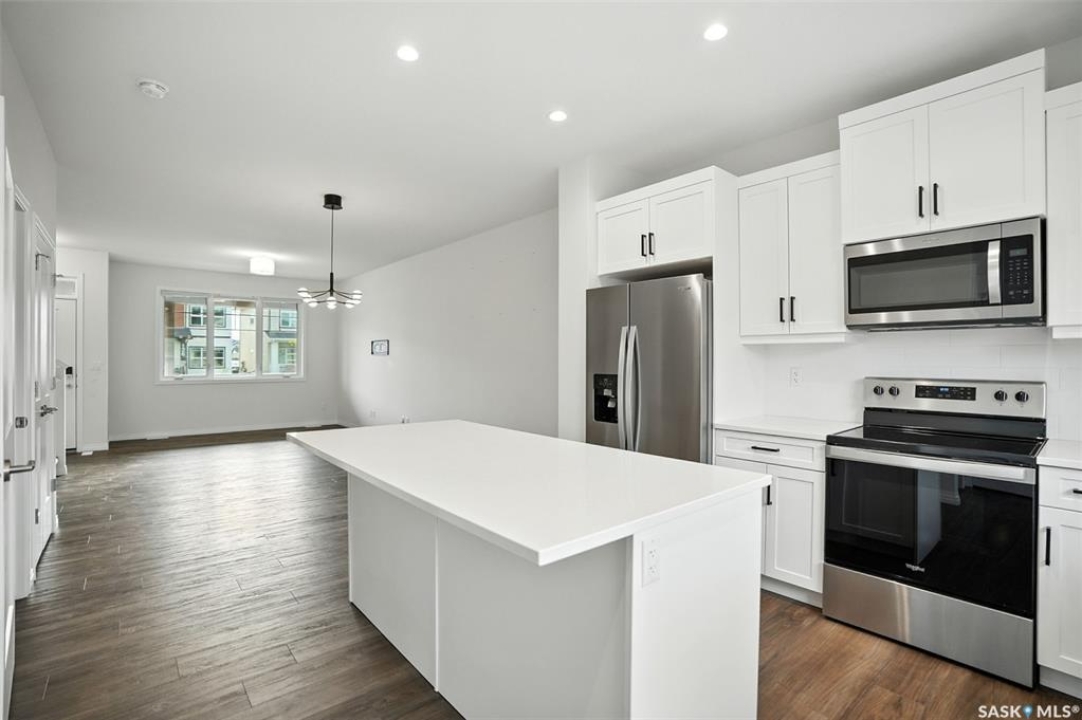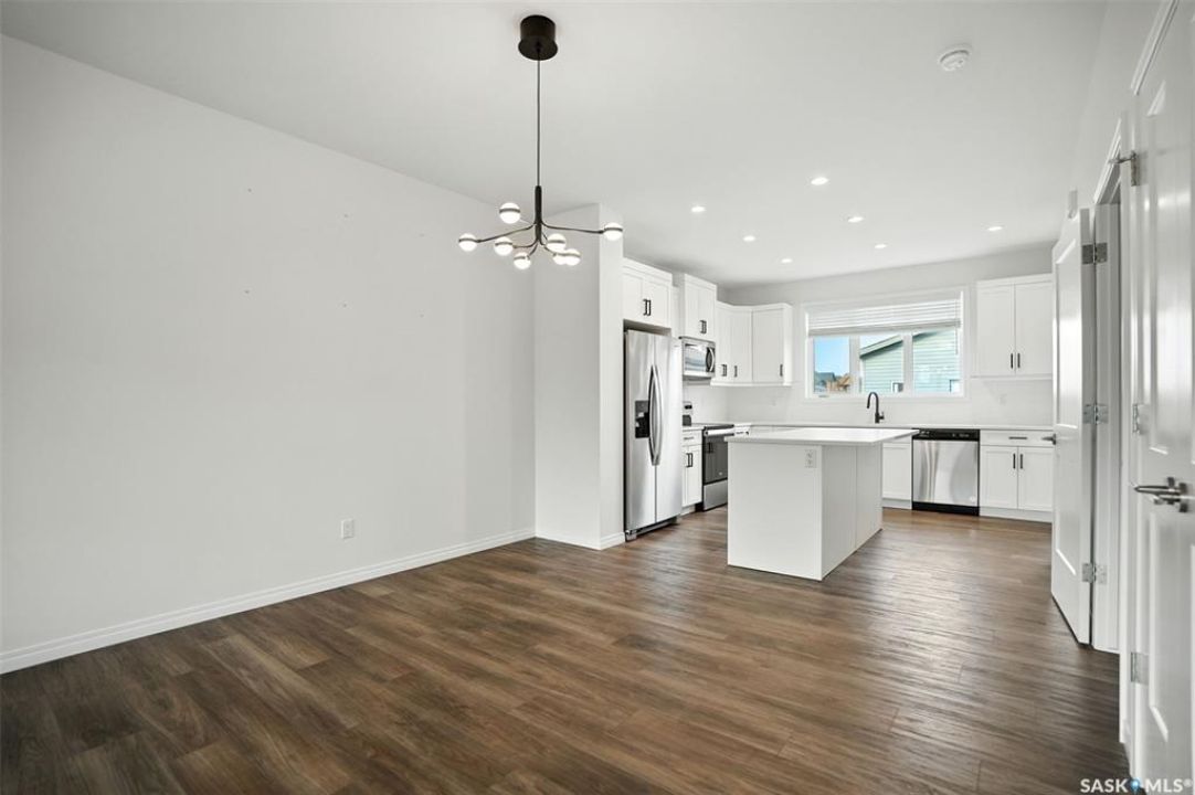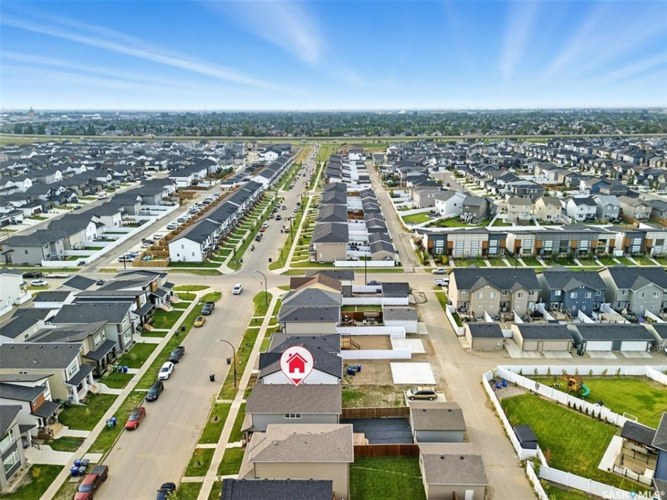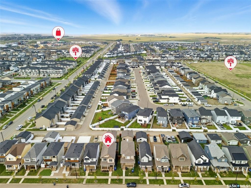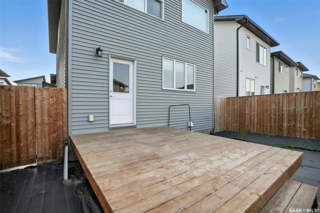 This 1,519 sq. ft. Dream home offers immediate possession, meaning you can be settled into your new home just in time for the holidays. Thoughtfully upgraded beyond standard new construction, it includes custom cabinetry, oversized windows, a finished deck, full fencing, patio, front landscaping, window treatments and upgraded laundry room. Set in one of Brighton's most coveted locations, you're less than a block from Brighton's Core Park and the future elementary school! Step inside to 9-foot ceilings and sun-filled spaces that make the main floor feel bright, open, and inviting. The large kitchen has a massive island with great storage, quartz countertops, custom cabinetry, black metal hardware, and upgraded lighting, is a perfect gathering space for everyday living and holiday hosting. Upstairs, the primary suite is a true retreat with oversized windows, vaulted ceilings and a spa-like ensuite featuring double sinks, an oversized soaker tub, and a glass-enclosed shower. Upstairs, there are two additional spacious bedrooms, a beautifully upgraded four-piece bathroom, and a full laundry room with cabinetry and a folding counter. Outside, the backyard is fully fenced yard with deck are ready for your finishing touches, the garage offers a drive through overhead door for small equipment making landscaping a breeze. And when it comes to convenience, Brighton has it all - shops, restaurants, a movie theatre, and everyday amenities just minutes away. With nearby bus stops, schools, daycares, and quick access to the U of S and downtown, this is a home built for comfort, community, and making memories.