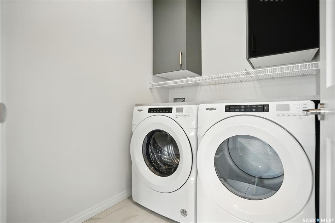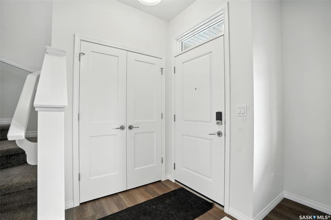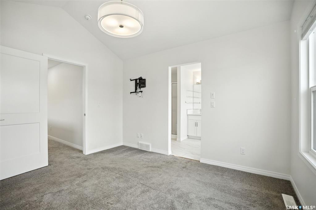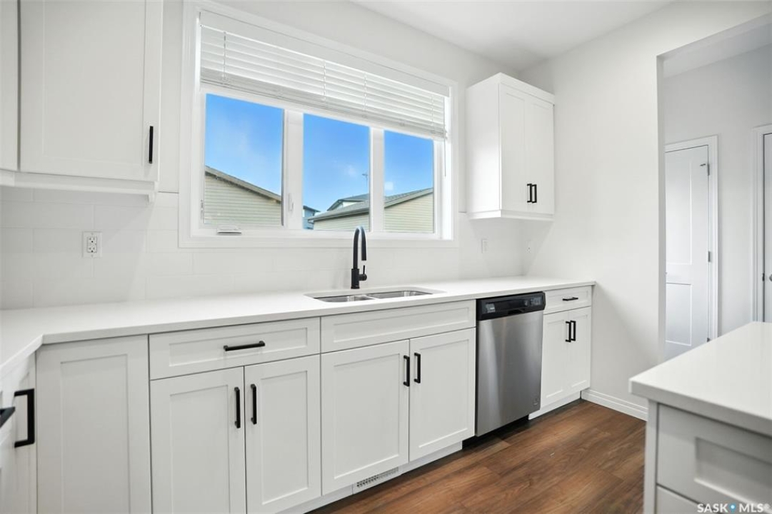 This 1,519 sq. ft. Dream home offers immediate possession, meaning you can be settled into your new home just in time for the holidays. Thoughtfully upgraded beyond standard new construction, it includes custom cabinetry, oversized windows, a finished deck, full fencing, patio, front landscaping, window treatments and upgraded laundry room. Set in one of Brighton's most coveted locations, you're less than a block from Brighton's Core Park and the future elementary school! Step inside to 9-foot ceilings and sun-filled spaces that make the main floor feel bright, open, and inviting. The large kitchen has a massive island with great storage, quartz countertops, custom cabinetry, black metal hardware, and upgraded lighting, is a perfect gathering space for everyday living and holiday hosting. Upstairs, the primary suite is a true retreat with oversized windows, vaulted ceilings and a spa-like ensuite featuring double sinks, an oversized soaker tub, and a glass-enclosed shower. Upstairs, there are two additional spacious bedrooms, a beautifully upgraded four-piece bathroom, and a full laundry room with cabinetry and a folding counter. Outside, the backyard is fully fenced yard with deck are ready for your finishing touches, the garage offers a drive through overhead door for small equipment making landscaping a breeze. And when it comes to convenience, Brighton has it all - shops, restaurants, a movie theatre, and everyday amenities just minutes away. With nearby bus stops, schools, daycares, and quick access to the U of S and downtown, this is a home built for comfort, community, and making memories.