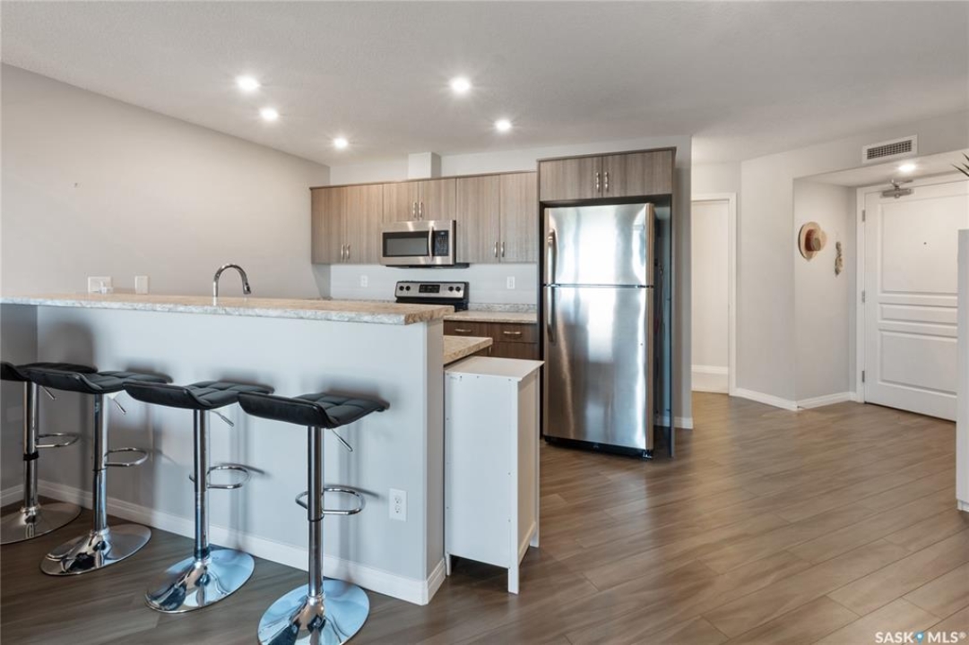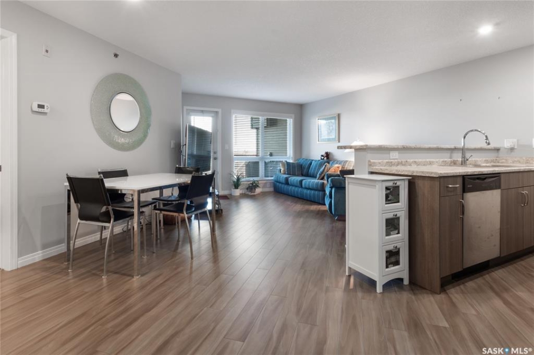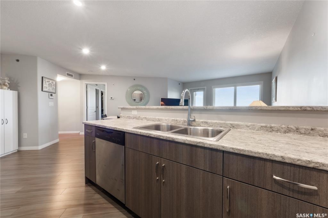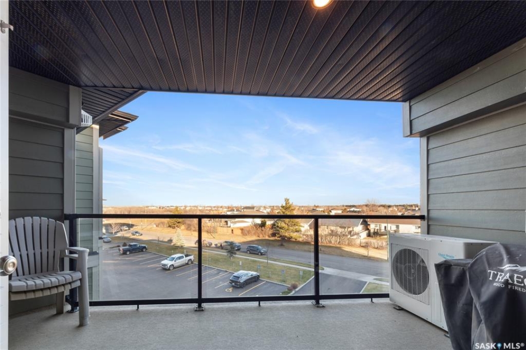 Welcome to 915 Kristjanson Road in Silverspring — a location so convenient you may actually cut your commute time enough to sleep in and still grab a coffee on the way. You're close to shopping, minutes from the U of S, steps from the Meewasin Valley Trail, and have quick access to Circle Drive for those “I swear I'm usually on time” mornings. This top-floor unit faces the beautiful north-east swale — a calm prairie view you can enjoy without ever having to mow it. Inside, the open layout features 1 bedroom, a handy den (office, hobby room, or a place to hide laundry… no judgment), and 2 bathrooms so nobody has to wait their turn. The kitchen includes a peninsula with seating, perfect for hosting, snacking, or pretending you're on a cooking show. The living area leads to a covered deck where you can sip your drink of choice while enjoying fresh air and zero backyard chores. Whether you're a student, professional, downsizer, or someone who simply enjoys a great view and low-maintenance living, this top-floor charmer is ready to make life a little easier — and maybe even a little fun.