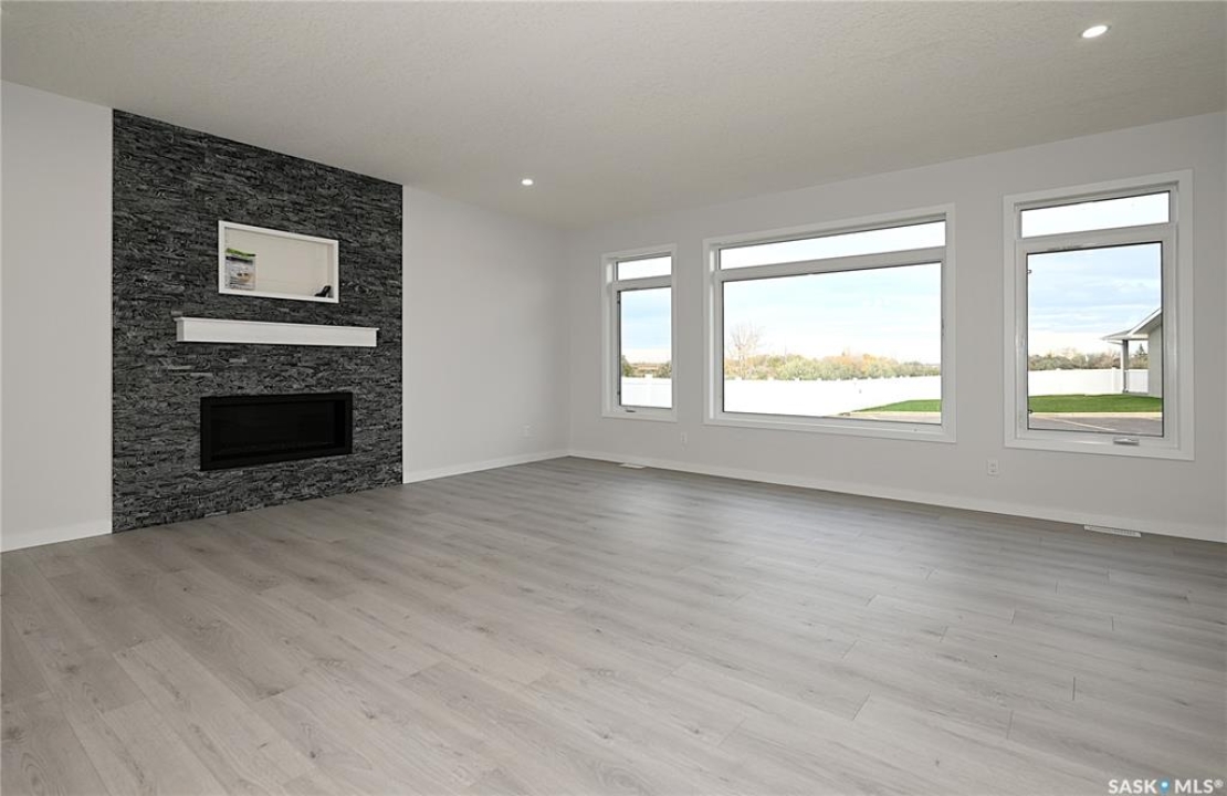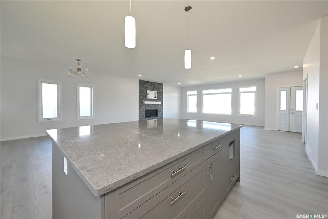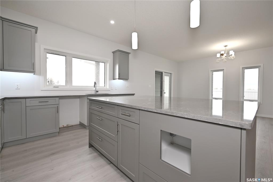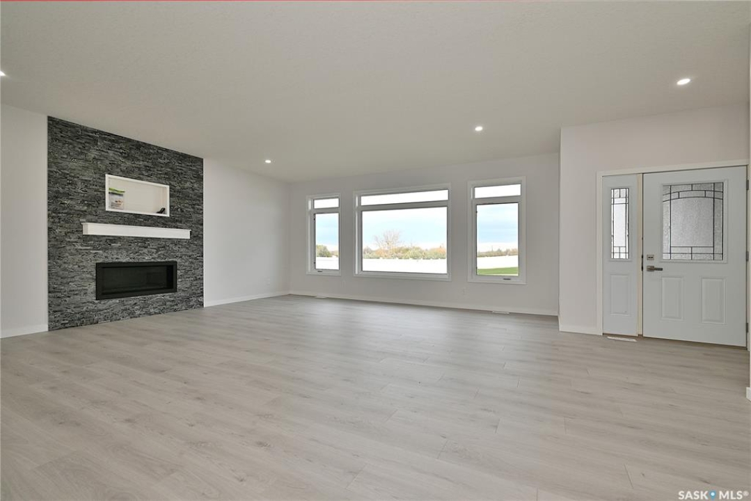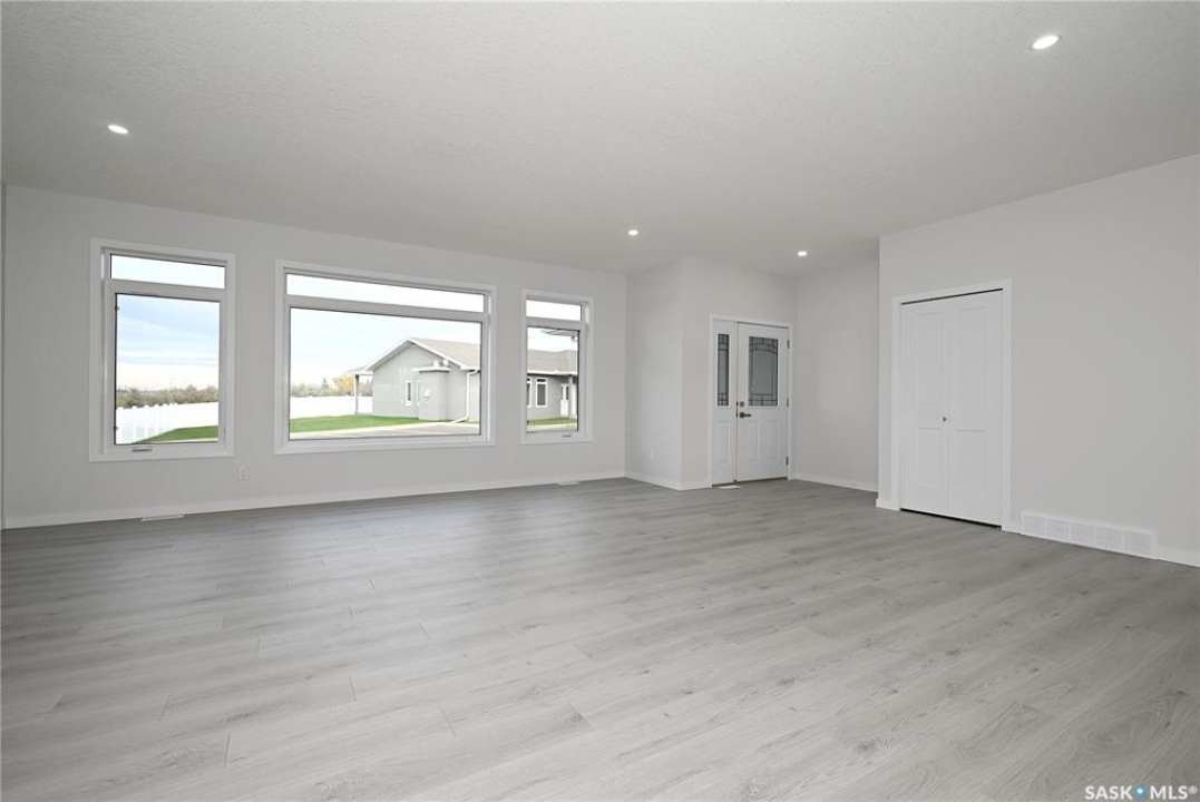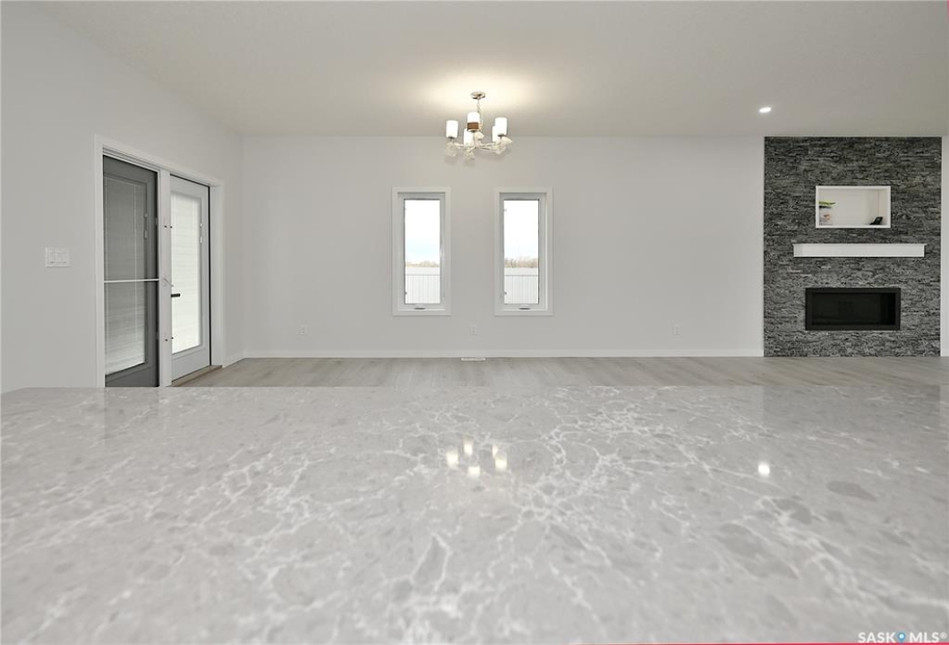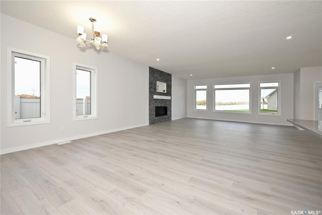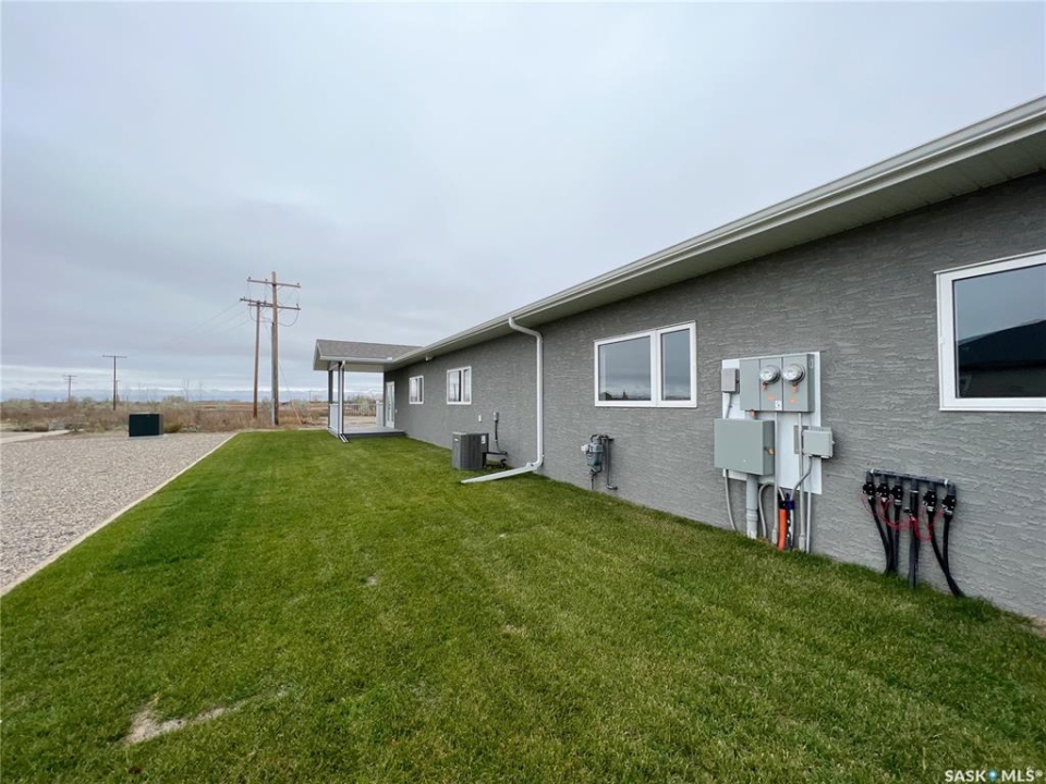 Enjoy the freedom of Northview Estates, built by Hirsch Construction! Upon entering this 2023 development you will notice the street appeal of the low maintenance stucco condos. Bungalow #9 is a stunning 1,846 sq foot condo that perfectly epitomizes modern living, all on one level. The interior offers high end designer finishes, lighting package, quartz counter tops, quality cabinets and flooring, all completed with care and craftsmanship. The 9 ft ceiling and large windows throughout the main floor give the desired bright open feeling one is looking for in a home. The kitchen, dining area, and living room areas are sunny, airy, yet comfortable and cozy with ample space for entertaining. A beautiful gas fireplace, framed with faux rock is situated in the living room, which is wonderful for those chilly winter days. The primary bedroom retreat is large enough for a king bed & includes a walk in closet & the ensuite has a quartz top vanity and walk in shower. The 2nd bedroom could easily be used as an office. An added feature is a bonus room which could be used as a walk in pantry, office, or general storage. The 4 piece bathroom & main floor laundry complete this floor. This home has a low maintenance deck, with no hassle natural gas bbq hookup, perfect for enjoying the view with family and friends. Come home and park your vehicles in an insulated, heated, and drywalled, 36' x 26' TRIPLE car garage, safe from all the elements. Enjoy all that Northview Estates has to offer in one Estevan's newest neighbourhoods. Once condo fees are assessed, they will include all City of Estevan utilities, common area maintenance, snow removal, lawn care, and reserve fund. Items to note: HRV system, central vac plus attachments, Dual Low E Argon windows, central air conditioning, water softener, garburator, soundproof furnace room and interior doors, heated crawl space, underground sprinklers, and visitor parking. New owner can build fence for a private backyard.