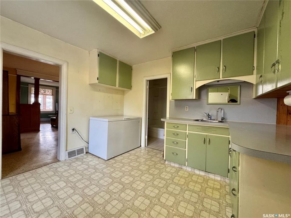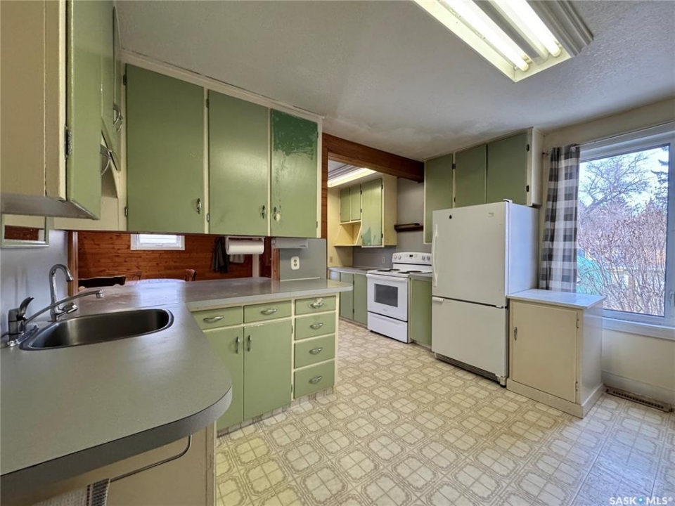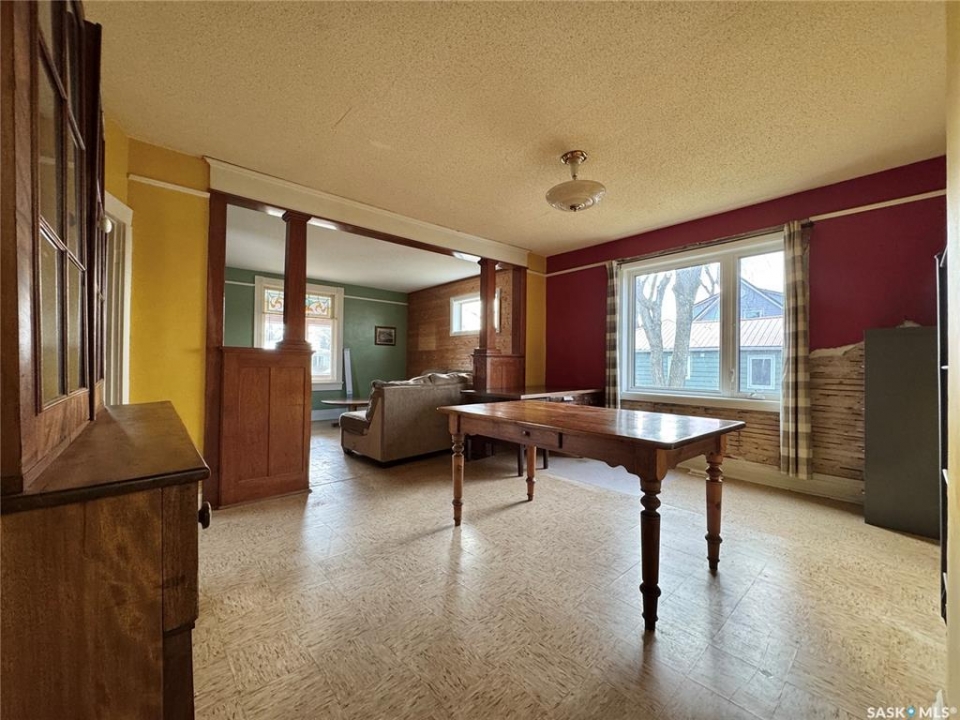 Step inside 305 Commercial Street and discover a home that has quietly watched more than a century of life unfold. Recorded as being built in 1910, it has sheltered the same family for over 40 years—holding laughter, milestones, and everyday comforts within its walls. Now, it waits patiently for its next chapter, ready for someone who appreciates the beauty of history and the charm of a home with a story to tell. There is a sense of steadiness here. Original woodwork, solid doors, and vintage grates remain, offering glimpses of craftsmanship from another time. Newly installed PVC windows wrap the home in light, and a low-maintenance metal roof stands proudly overhead. With more than 1,500 sq. ft., the rooms feel calm and unhurried, giving families space to live without feeling crowded. A three-season veranda welcomes you at the front—a perfect spot to read, reflect, or watch the town move at its gentle pace. In 1991, an addition was built, creating bonus space that can shift with your needs. Once used as a second dining area, it could easily become a cozy sitting room or, with a thoughtful remodel, a main-floor primary bedroom. Upstairs, three classic bedrooms wait beneath soft carpet, where wide-plank hardwood is believed to rest untouched. The owner has upgraded the attic insulation to R50, protecting the home through long Saskatchewan winters. Outside, a quaint side yard adds charm, and the 24' x 30' garage offers generous storage. Saltcoats itself is a treasure—set beside Anderson Lake and only minutes from Yorkton and nearby potash mines. Recent town upgrades include fully paved streets and an RO water system that brings exceptional water quality to every home. If you love character, history, and the warmth of a home that has been well loved, this one may just be waiting for you.