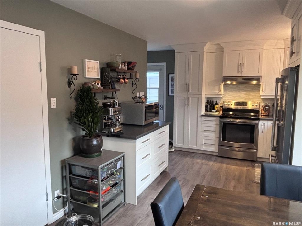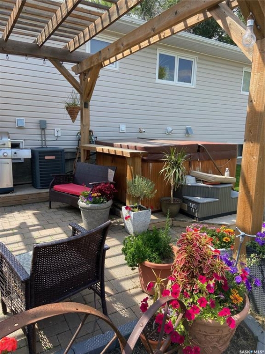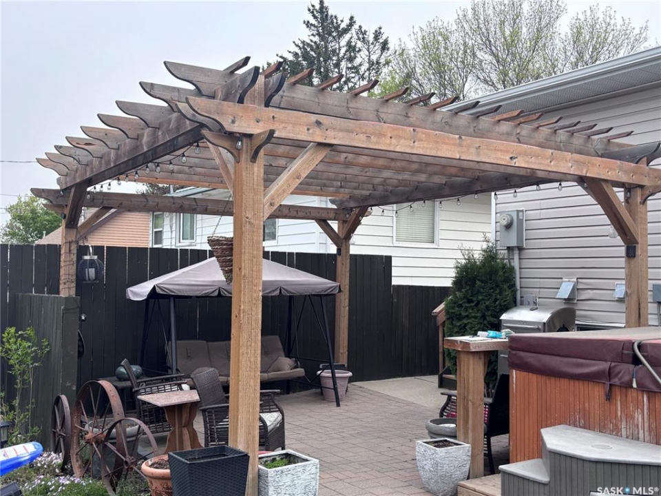 Walk up these 2025 stairs to a brand new deck with storage under it for many of your treasures. This 1980 house was moved onto a 2010 basement with 9' walls and completely upgraded at that time. Newer kitchen cabinets, flooring and stainless steel appliances flow into the dining area and west facing living room. 2 bedrooms, a 4 piece bath and main floor laundry complete the top level. The lower level has large windows letting in lots of natural light into 2 more bedrooms and a large family/rec area. The 3 piece bath, storage and utility room are efficient and centrally located. With both the furnace and the hot water heater being high efficient helps to minimize your energy bills. an air exchanger and Reverse Osmosis water system complete the upgrade. The backyard is a Get Away in the city with large patio, pergola, hot tub area,(hot tub is negotiable) grassy area for the kids or dogs and 2 storage sheds. Don't Forget to check out the 24' x 24' heated garage to keep the automobiles warm and tools hot and ready for action. Book a showing with your favorite agent and get a good look at this gem of a house/Home.