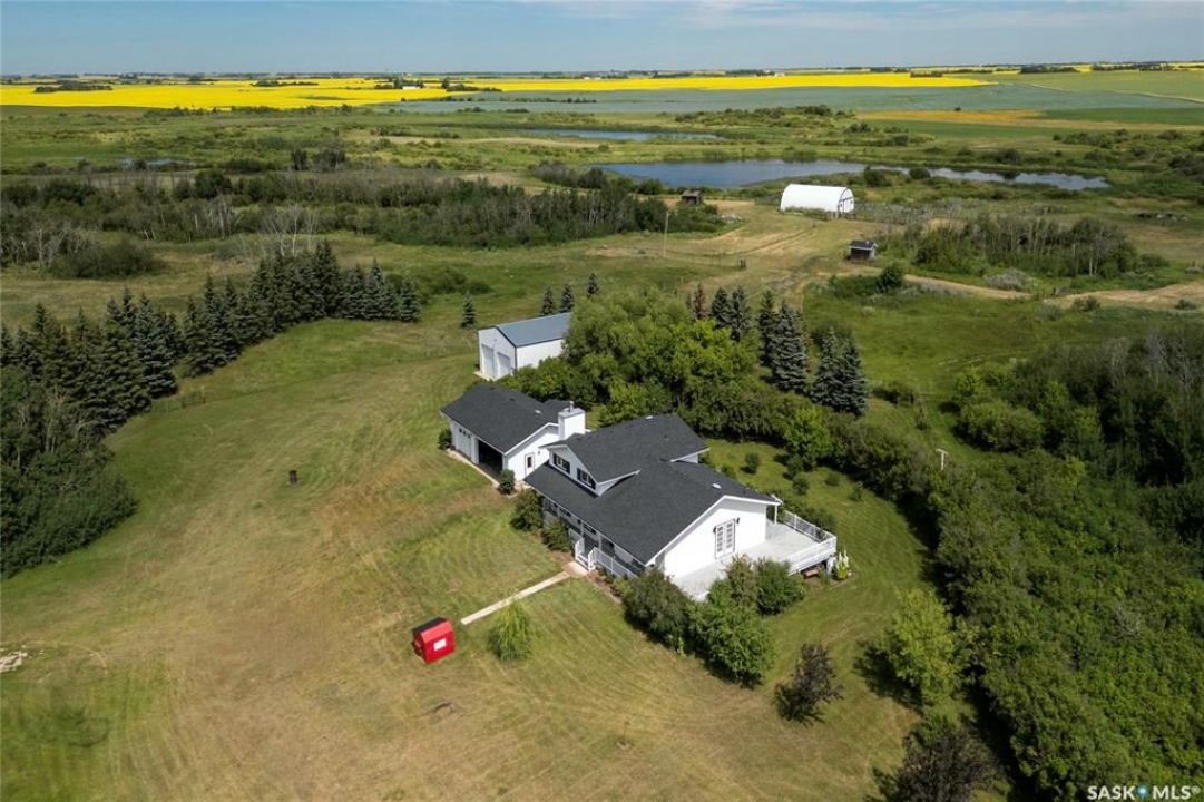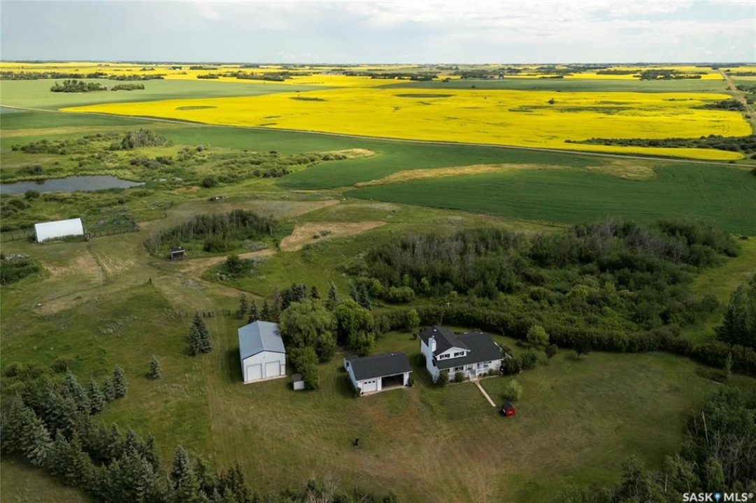Seller says sell! Try an offer! Quick possession! Freedom from commotion and the bustle of the city with nothing but open skies and peaceful living. Located approximately 40 kms from Regina sits 80 acres (40 cultivated acres) of green gently rolling hills and tranquil surroundings. Winding around the row of trees the house comes into view and you will immediately feel like you're in a different world. Pride of ownership shines through in every corner of the house and land. Imagine Saskatchewan sunsets or getting lost in a book from your wraparound deck. Behind the house are fruit trees and even some almond trees with a fire pit off to the side. The yard site has a 36' x 24' garage, 29' x 49' shop (10' doors) and a little further in behind is a 25' x 48' barn with 2 stalls. Fenced corals and pastures are ready for new animals. 40 acres of cultivated land. 2 sloughs. The house is so loved and very well maintained. Built with 2x6 construction. Living room at the front of the house with the eat-in kitchen, dining room and main floor laundry at the back. Located at the back door is a powder room which is perfect for coming in from the garden and cleaning up without bringing the mess through the house. Upper level has 3 good sized bedrooms, 4-piece bathroom with the primary bedroom having a 3-piece en-suite. 3rd level has a huge family room with a wood burning fireplace, 4th bedroom and a 2-piece bathroom. Lower level is open for development which could be a children's play area or family games room. Meticulously maintained and cared for over the years. Easy access from the highway but surrounded by trees makes you feel like you're all alone. Well on property with water treatment system included. Lagoon. School bus to Vibank approx 13kms. K-12. Directions: Highway 48 about 20 minutes south of White City. Just East of Davin on opposite side of highway. Farm is across the road from large cross on hill.