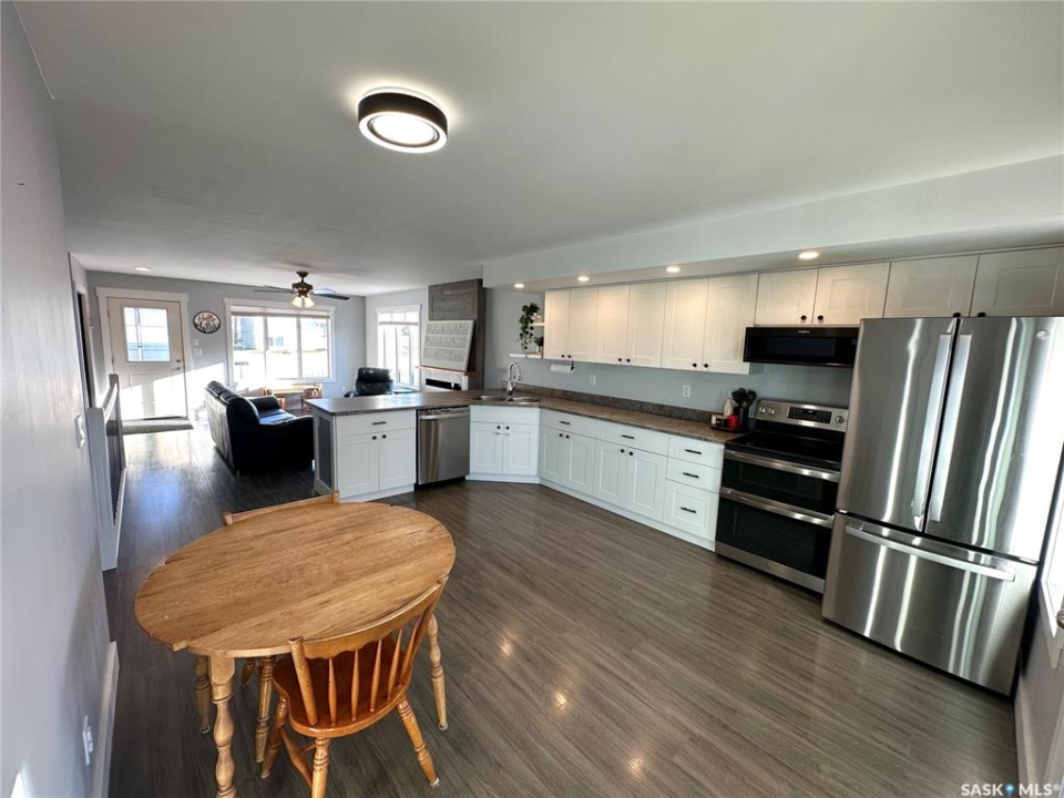 Welcome to 8 Morrow Place in Shell Lake — a beautifully designed home that offers the perfect blend of year-round living and 4-season getaway charm. Built in 2019, this modern property checks all the boxes, whether you're seeking a permanent residence or a cottage retreat close to the lake and golf course. Step inside to an inviting open-concept floor plan, ideal for entertaining. The living area features an electric fireplace, abundant natural light, and seamless flow to the dining room. Garden doors lead to a spacious deck overlooking the fully fenced backyard and peaceful meadow—giving you that rural feel with all the conveniences of town living. This move-in-ready home offers 2 bedrooms on the main floor and 2 additional bedrooms in the fully finished walkout basement. The lower level opens to a patio area, perfect for relaxing or even adding a future hot tub. Additional features include a sand-point water source, central A/C, all appliances included, and the option for a quick possession. Enjoy comfort, nature, and modern living all in one. Motivated Sellers.