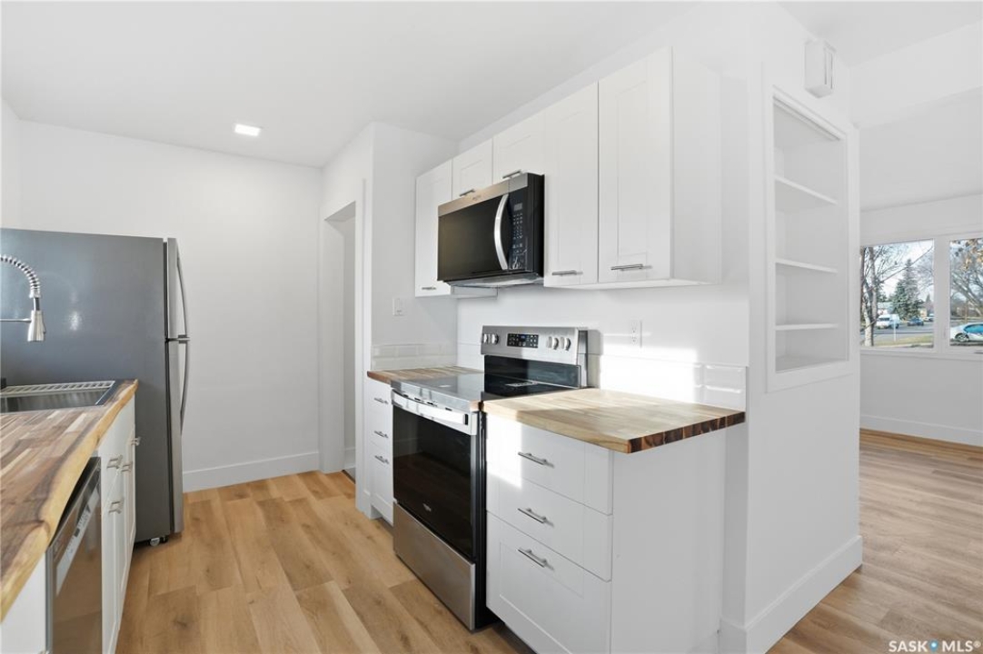 Extensively updated West Side property, move-in ready with tons of potential. This 2-bedroom home features new flooring throughout, new interior and exterior doors, fresh trim, and a fully renovated bathroom. Electrical upgrades include dedicated breakers for the dishwasher, microwave, and fridge, plus new counter plugs, light fixtures, receptacles, and switches. A brand new 10' x 12' deck has been added, and the home comes with new appliances along with a new washer and dryer. The basement has been framed, insulated, and poly'd for future development, with a bathroom roughed in, a sump pit added for future use, and a backwater valve installed to help protect your investment. There is potential to add two more bedrooms downstairs, and most of the plumbing and duct work have been upgraded, with new plumbing added in the basement to accommodate future improvements like a potential second bathroom—an excellent start for anyone wanting to finish the lower level exactly to their taste.
