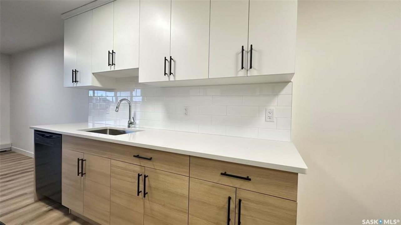 Welcome to 207-4555 Rae Street, a completely transformed second-floor condo in the highly sought-after Elmcrest building, where over $60,000 in professional renovations has created a pristine, move-in-ready sanctuary. This bright, two-bedroom home is situated within a quiet, solid concrete building, featuring the convenience of an elevator for easy access. Step inside to find a flawless interior with brand-new luxury laminate flooring flowing throughout and a fresh, neutral coat of paint in every room, including the spacious private balcony. The heart of the home is a stunning new kitchen, complete with sleek Kitchen Craft cabinets, elegant quartz countertops, and a full suite of stainless steel appliances. This premium quartz is also featured in the modern four-piece bathroom, ensuring a cohesive and upscale feel. The efficient layout includes a separate dining room and ample storage, all enhanced by the bright, east-facing exposure. Enjoy the added perks of secure visitor parking and wheelchair accessibility. Nestled in the vibrant Albert Park neighborhood, you're just steps from parks, gourmet grocers, eclectic restaurants, and boutique shopping. This is a rare opportunity to own a fully renewed, sunny, and exceptionally well-located home in one of the city's most desirable communities.