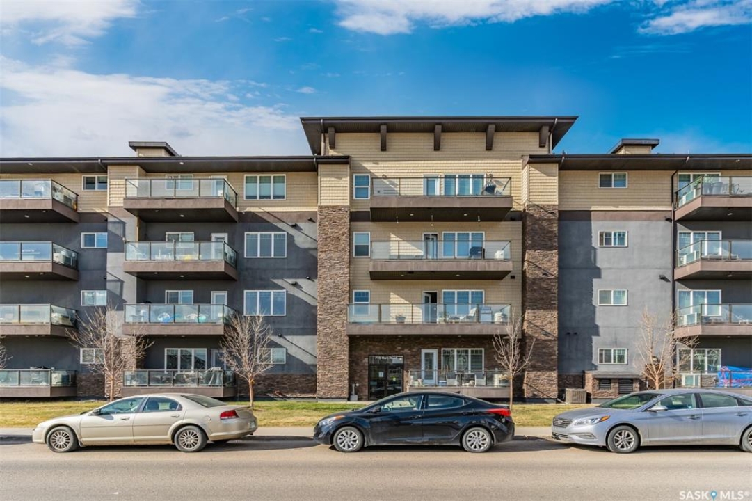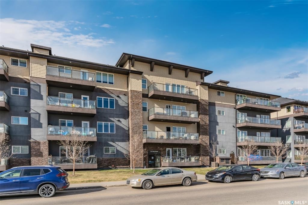 Welcome to #307-710 Hart Road — a move-in ready condo that combines comfort, convenience, and value in the heart of Saskatoon's Blairmore neighborhood. This 580 sq. ft. one-bedroom, one-bathroom home has been thoughtfully designed with first-time buyers, students, and investors in mind. The open-concept layout features a stylish kitchen with laminate flooring, granite countertops, and sleek cabinetry. A functional island with seating and extra storage adds versatility and charm. The space flows seamlessly into a bright living room, filled with natural light from large windows. Recently painted and well maintained over the years, this condo truly feels like home. Step outside onto the balcony overlooking your parking stall, convenient for remote control access on those cold winter mornings. Safe, affordable and move in ready! The cozy, carpeted bedroom offers generous closet space, while the 4-piece bathroom and in-suite laundry provide everyday practicality. All appliances are included — fridge, stove, dishwasher, washer, and dryer — making your move effortless. Located in a secure, elevator-equipped building, this condo offers quick access to parks, shopping, public transit, and nearby schools — everything you need just minutes away. With low monthly taxes and a recently replaced boiler system for warmth and efficiency, this is a smart, affordable ownership opportunity.