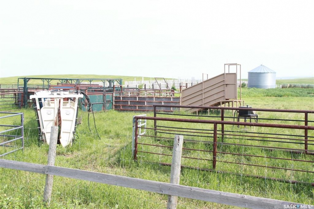 Large block of native and tame grass. 2 homes, heated shop, metal quonset, calving barn, corrals, hydraulic chute and sorting pens. perimeter and cross fenced. Grass in excellent shape. Combination of natural springs and run off dugouts ofr water supply. Call to view. GPS 51.0665 -108.240635