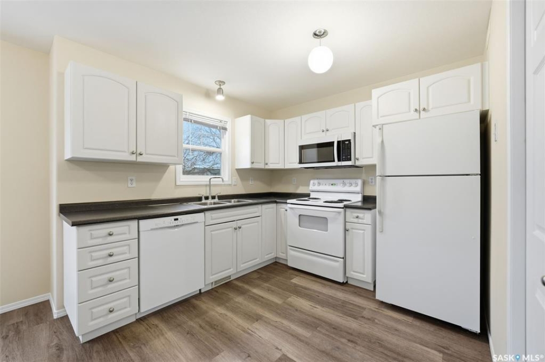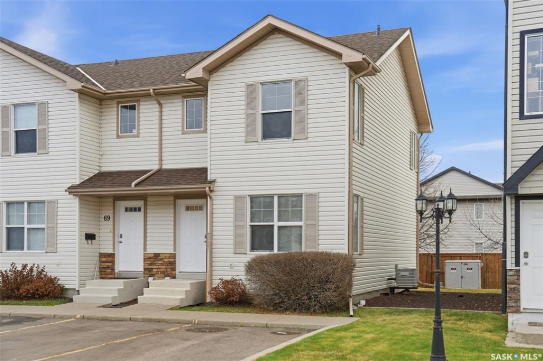 Welcome to Unit 68–135 Pawlychenko Lane — a quiet end-unit townhouse offering two spacious bedrooms and two bathrooms, perfect for university students, young professionals, or first-time homebuyers. Situated in the heart of Lakewood, this move-in-ready home provides exceptional convenience with direct bus service to the university right outside your door. The main floor features bright and functional layout, including living room with newer flooring, dining area, and well-appointed kitchen with heritage cabinets, a pantry, and abundant countertop space. The south-facing backyard offers a private patio, perfect for enjoying sunny afternoons. Upstairs, you'll find two generous bedrooms and a four-piece bathroom, with one bedroom featuring extra side window and double closets. The unfinished basement provides excellent space for storage, laundry, and utilities. Additional highlights include central air conditioning, central vacuum, and newer kitchen appliances, along with washer and dryer replaced in 2023. Two surface parking stalls are conveniently located right in front of the unit. This desirable location is close to parks, shopping, and all amenities.Shows 10/10!