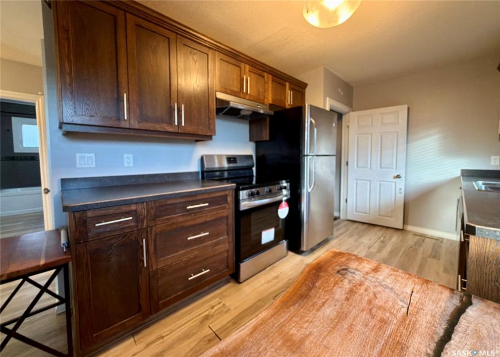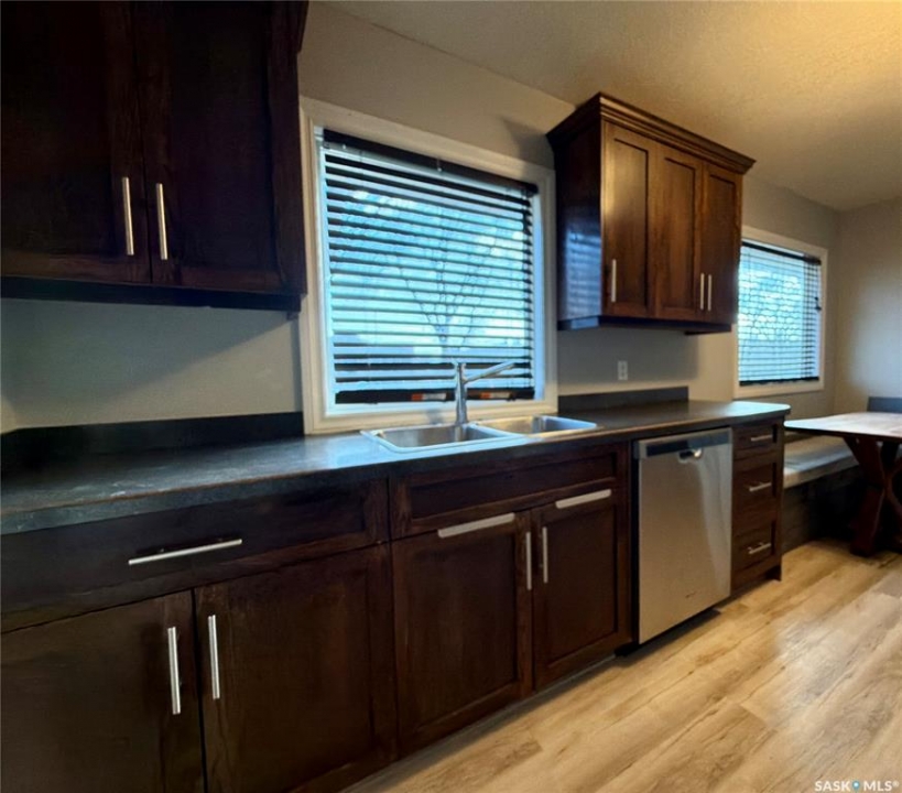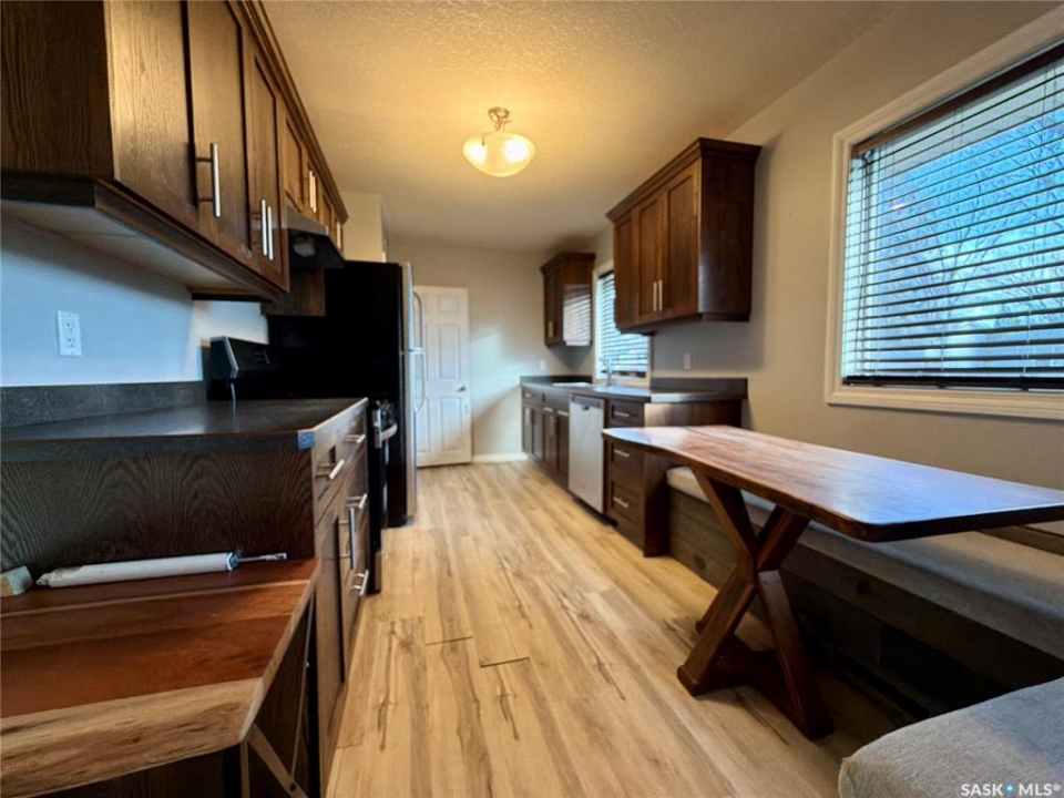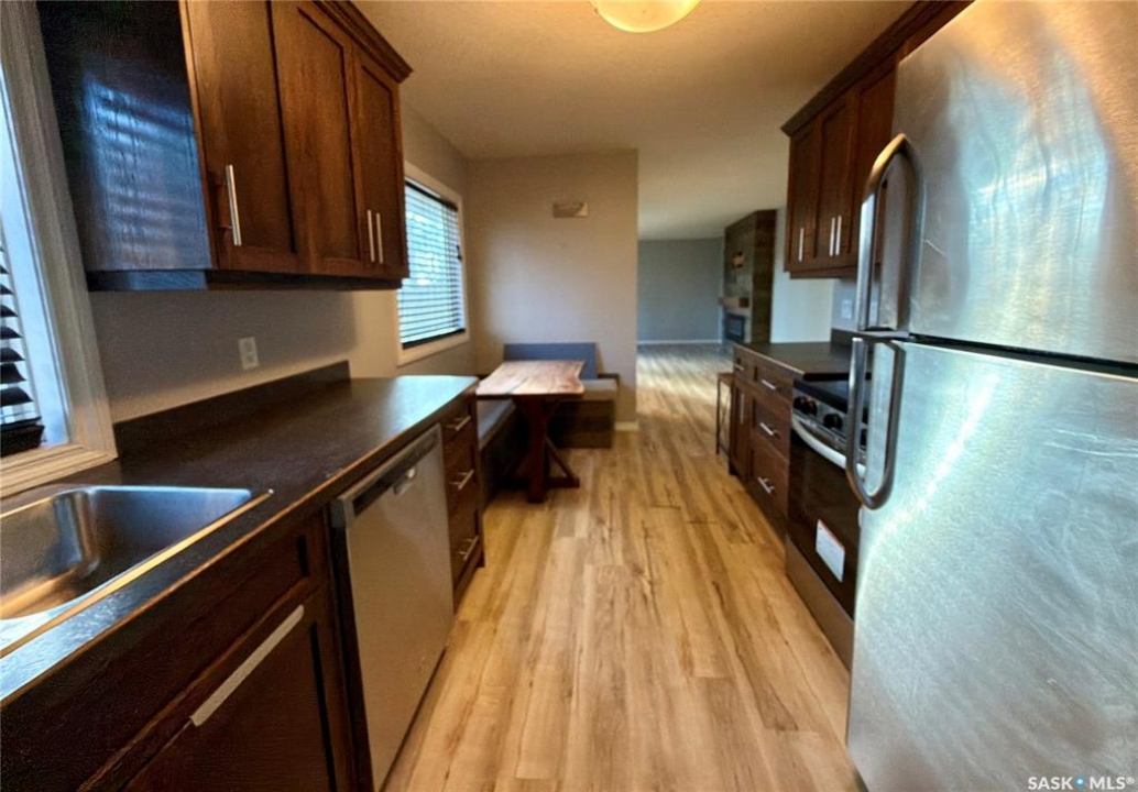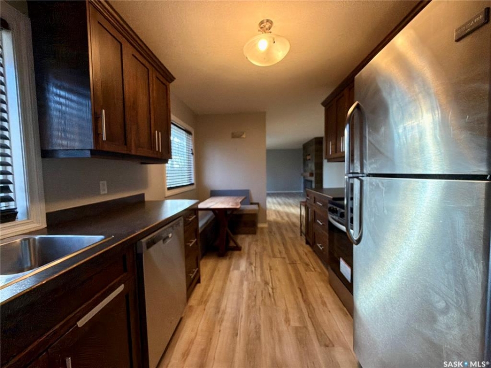 Welcome to 212 Garnet St—an inviting home that blends comfort, updates, and room to grow. Step inside to find a bright, spacious living room on the main floor, complemented by a cozy family room downstairs that's perfect for movie nights or gatherings. This 3-bedroom, 1-bathroom home has been thoughtfully improved over the years with vinyl plank flooring (2021), updated shingles (2020), refreshed windows, a stylish basement bar area (2015), a modern fireplace and mantle feature (2018), a beautifully improved backyard with grass and partial fencing (2018), and a charming kitchen nook added in 2020. Extra features add even more value, including an electric fireplace, shed, deck, air conditioning, a furnace installed approximately four years ago, a newer 2023 stove, and convenient off-lane parking in the backyard. A water softener is also included in as-is condition, as the seller has never used it. The back door layout lends itself well to potential suite development, and the basement offers space to add a future bathroom. There's even room in the yard to build a garage if desired. Move-in ready and full of potential, this home is a wonderful opportunity.