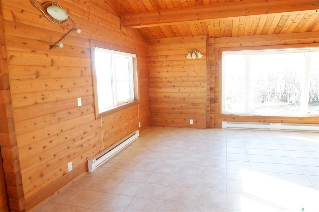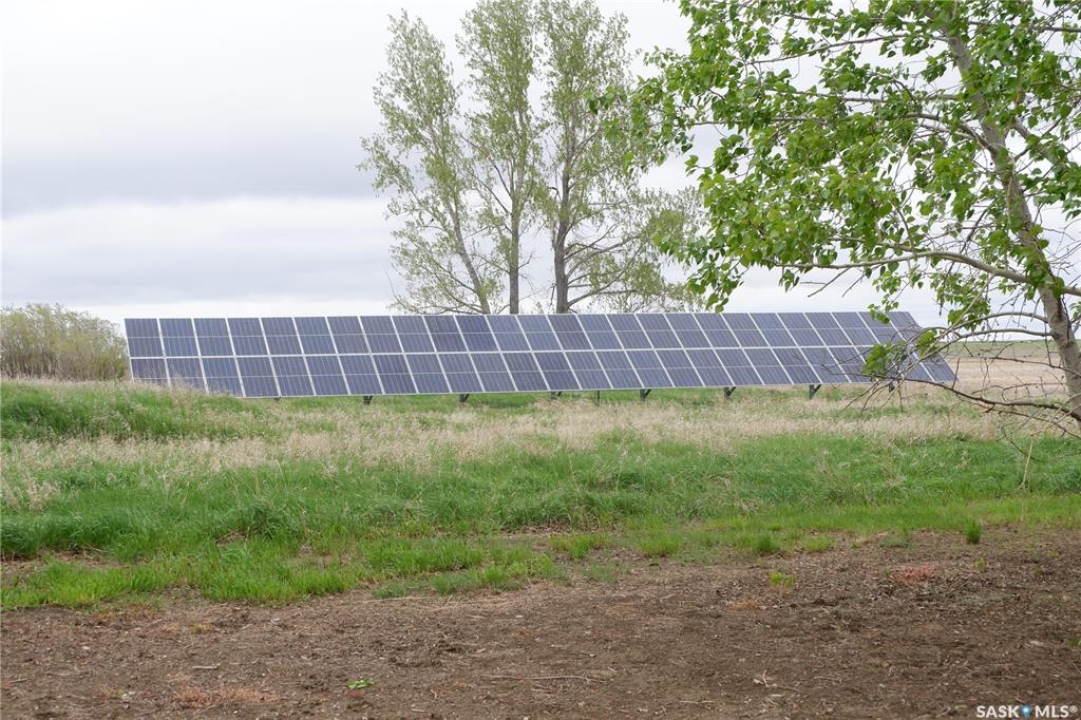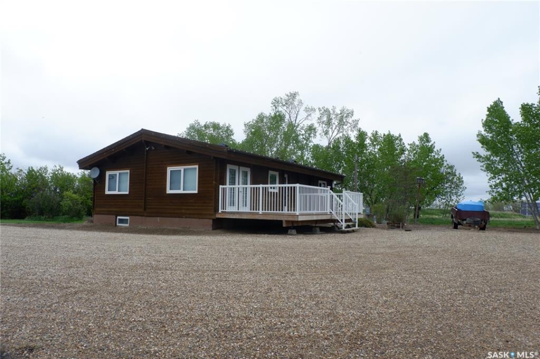 Located in the RM of Gravelbourg a short 7 km Southeast of the Town of Gravelbourg. This is the acreage you have been waiting for! The is a Pan Abode Cedar home constructed in 1980 on a full concrete basement. The cedar logs make for a very comforting home with the rich wood finishes. The semi open design is amplified by the vaulted ceilings. The kitchen cabinets were completely upgraded in 2008. The white cabinetry pops with the wood walls. You will enjoy the large Island in the dining room, with lots of extra storage room. The patio doors from this room lead to the large maintenance free deck. The living room has large windows to allow for lots of natural light and to enjoy the prairie views! The triple pane windows were all replaced in 2016. The primary bedroom features a double wide closet. The second bedroom has been refitted as main floor laundry for extra convenience. You will find a large storage room/den and a 4-piece bath to complete the main floor. The basement is fully developed with the addition of a family room, 3 extra bedrooms, 2 two-piece baths and tons of storage. Currently the owner has installed a 1500 Fibreglass Cistern for water for the home. Gravelbourg offers Reverse Osmosis water that is great to drink and easy on the fixtures. The shop is separated into two separate areas. Great for parking/storage and tinkering. The shed is 30 x 60 with the front 24 x 30 insulated. There is also another storage shed included as well as a play structure. This property is in great condition and has been very well maintained. Information on the Solar system and warranty is available. Book your appointment to view the property today. You are going to love it! Directions: East of Gravelbourg to RR3042 then 1 Mile south