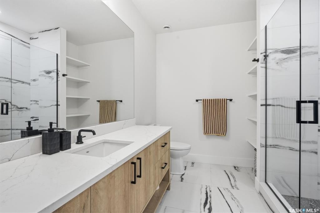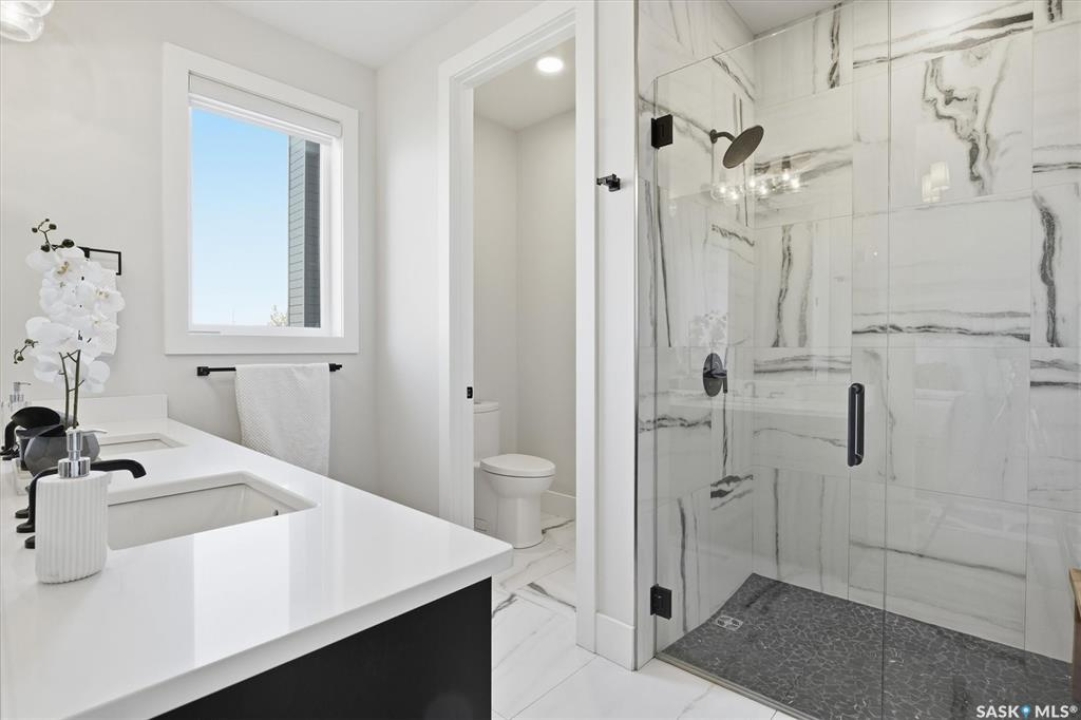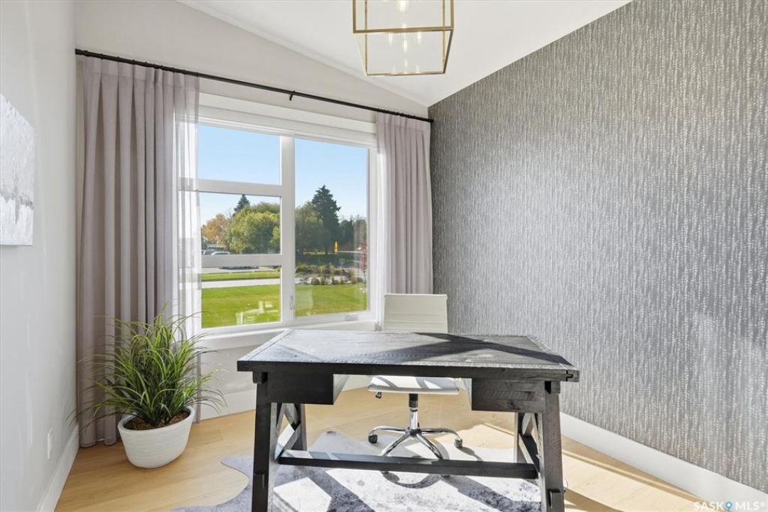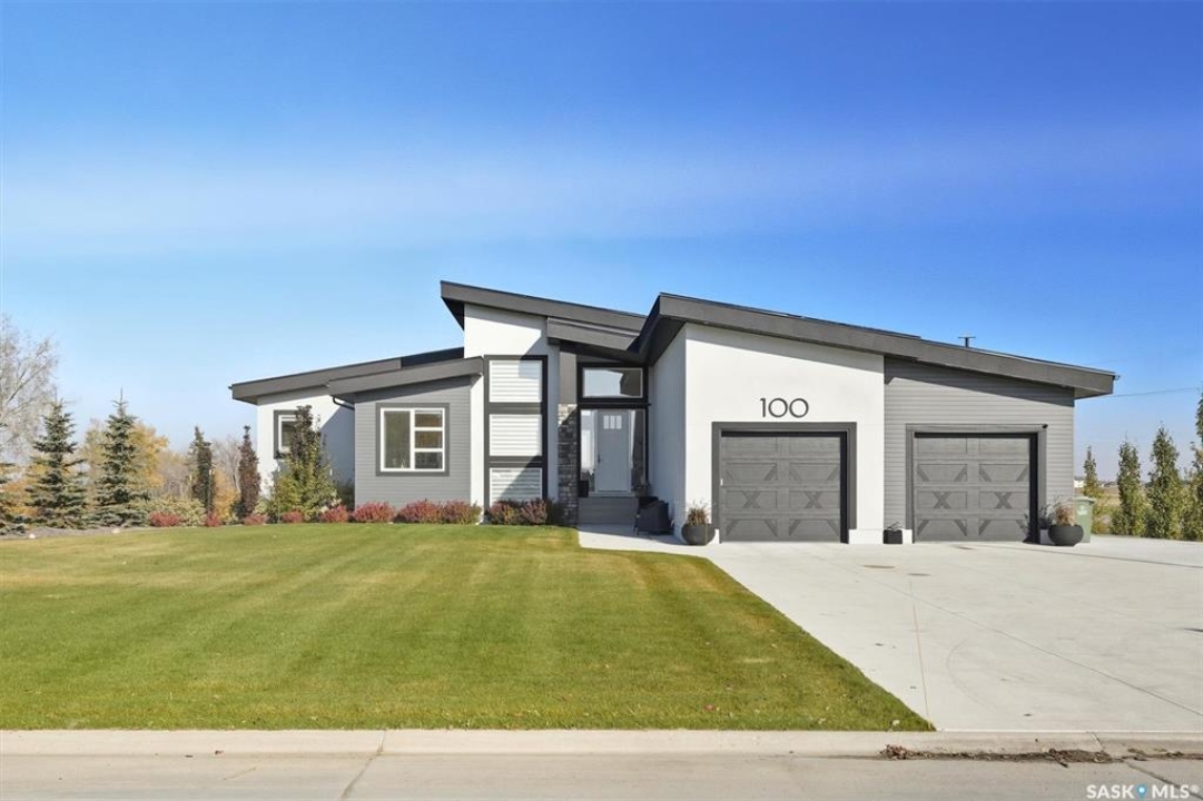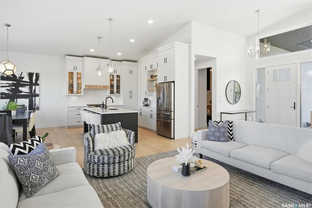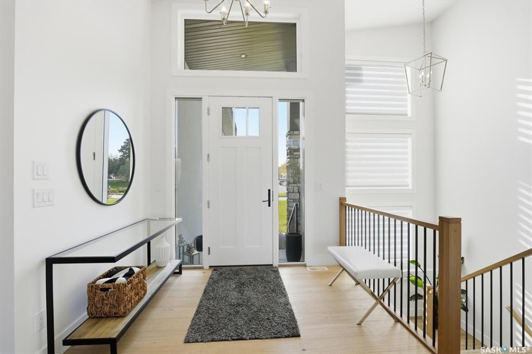 Absolute Stunner! Designer custom D&S Homes walkout bungalow, crafted with precision and showcasing an award-winning floor plan. Offering 1,694 sq ft on main plus a fully dev walkout basement, this 4-bed, 3 bath home is set on an expansive 17,000 sq ft lot backing the Greenbryre Golf Course — with no neighbouring homes in sight, only serene views of the course, a landscaped side buffer and open prairie fields. The entry opens into a breathtaking, light-filled great room with ultra-high soaring ceilings and a dramatic feature fireplace. The open-concept living, kitchen, and dining area is an entertainer's dream, wrapped in oversized windows overlooking the course. The chef's kitchen features soft-toned lacquer cabinetry with double-height uppers, quartz counters, full-height quartz backsplash, 5-burner gas range, walk thru pantry, a coffee bar, and a massive central island. The connected dining area is spacious enough for large gatherings and opens to a private covered deck for seamless indoor-outdoor entertaining.The main floor also includes a large boot room, a bright office, outfitted laundry room, and a luxurious primary suite complete with a fully tiled spa-style ensuite, walk-in shower, dual vanity, and walk-in. A striking custom staircase leads to the fully dev walkout level, which mirrors the quality of the main floor. This level offers a sprawling family room with a 2nd fireplace, floor to ceiling windows overlooking the show-stopping backyard, a wet bar with wine storage and seating area, and a dramatic full height glass-walled gym. 2 large bedrooms and a full bathroom complete this level. Additional highlights: • Professionally landscaped grounds • Heated double garage • Zoned in-floor boiler plus forced-air furnace • Instant hot water • Central air • Wired for a hot tub • Underground sprinklers, oversized concrete drive A tasteful masterpiece in design and function — this Greenbryre walkout is spectacular in every detail.