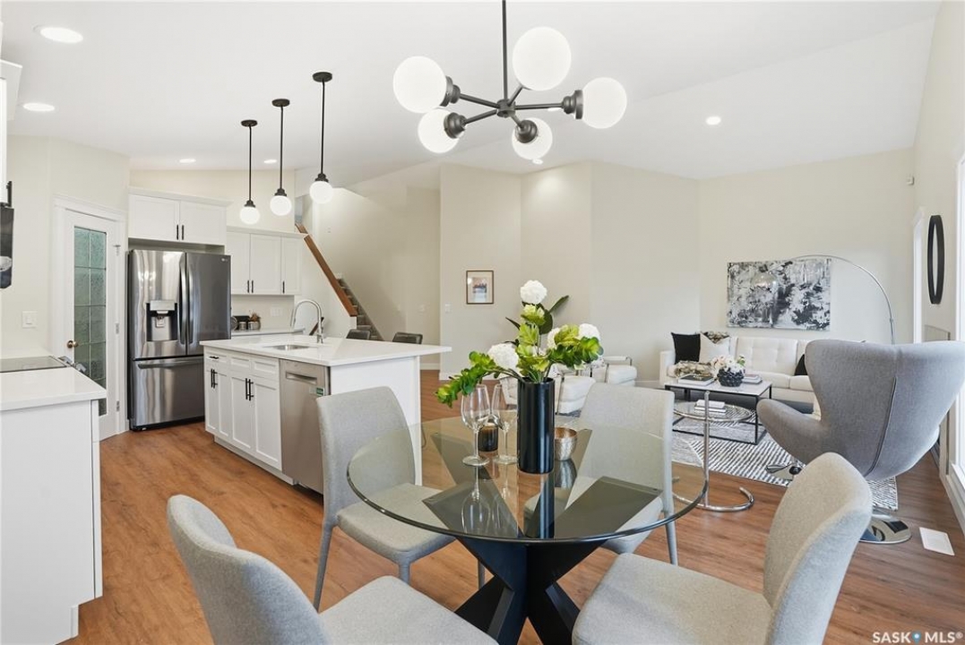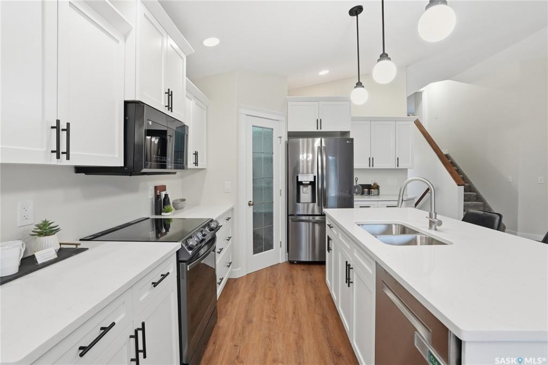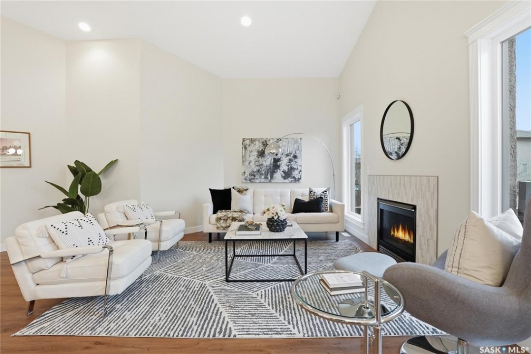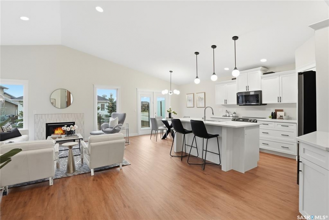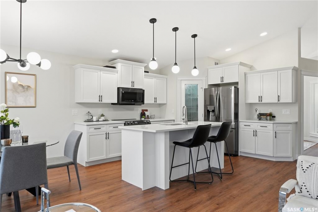 703 Beechdale Way – Briarwood Tucked away on a quiet street in desirable Briarwood, this updated modified bi-level offers over 1,700 sq ft of thoughtfully designed living space. With 5 bedrooms and 3 full bathrooms, the home blends comfort, style, and practicality. A bright great room with vaulted ceilings and a cozy gas fireplace creates an inviting first impression. The kitchen has been refreshed with maple cabinets, quartz countertops, and stainless steel appliances, complemented by updated flooring, lighting, baseboards, and paint throughout. A separate formal dining room provides a dedicated space for gatherings and family meals. Main-floor laundry adds everyday convenience. Upstairs, the private primary suite offers a peaceful retreat with a walk-in closet and a luxurious 5-piece ensuite. The fully developed basement expands the living space with a large family room and two generous bedrooms—ideal for guests, teens, or extended family. A heated double attached garage and well-manicured yard enhance the home's appeal. With walking paths, shopping, and transit nearby, the location delivers both convenience and quality of life. A warm and inviting home in one of Saskatoon's most sought-after neighbourhoods.