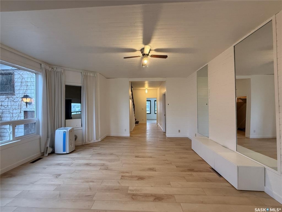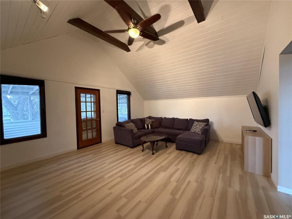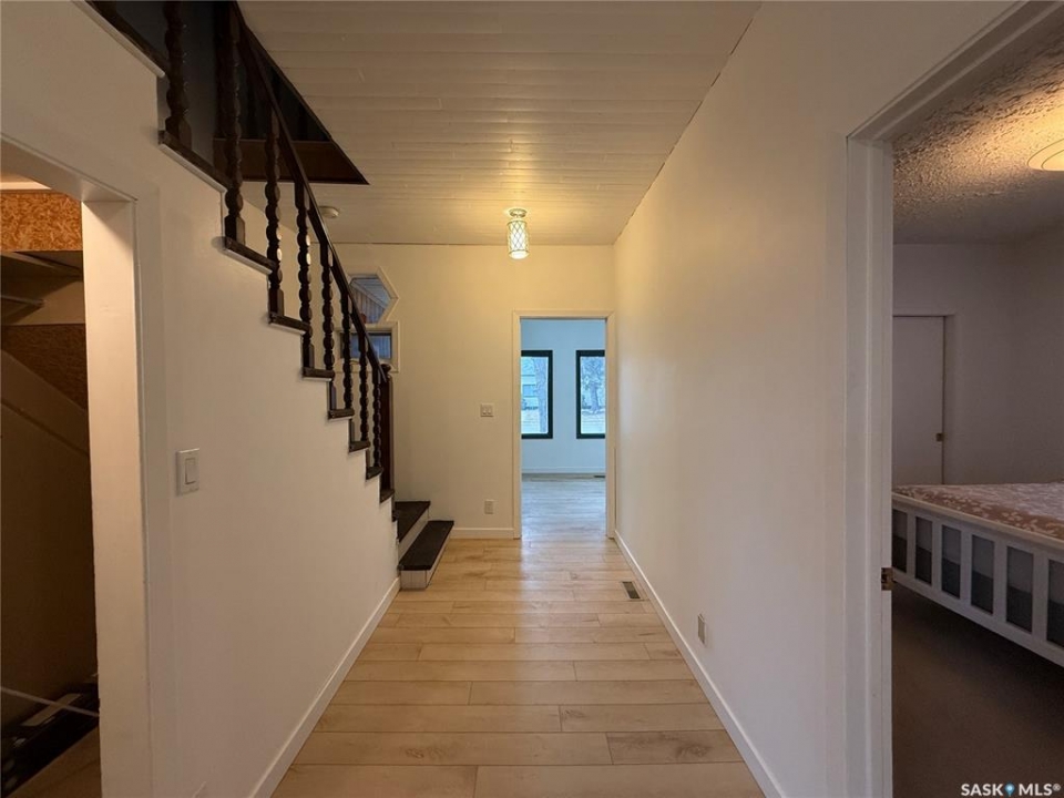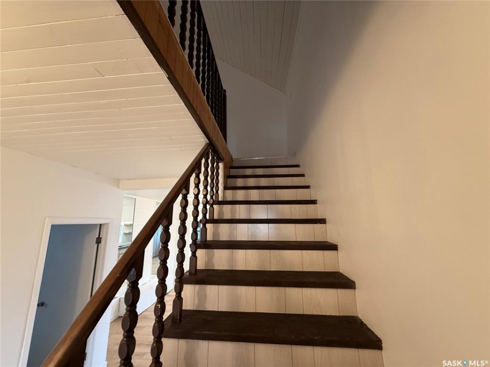 Welcome to 732 6th Street, perfectly situated in an excellent location in the City of Humboldt, just steps from the Public School and Main Street. This spacious and well-maintained home offers a wonderful blend of comfort, style, and convenience. The main level features a large, updated kitchen and dining area with freshly painted cupboards, new hardware, quartz countertops, and stainless steel appliances. The bright, stylish living room, three bedrooms—including a super cute kids' room—a beautiful 4-piece bathroom, and a generous laundry/foyer area complete this impressive level. Upstairs, you'll find a huge family room ideal for entertaining, a screened-in balcony perfect for enjoying sunny days and fresh air, an additional bedroom, and a 3-piece bathroom. The beautifully landscaped backyard is a true retreat, showcasing an attached deck, fire pit area, green space, an abundance of perennials, a storage shed, and a detached garage with rear parking. This home comes equipped with all appliances and has seen important updates in the past two years, including a furnace, an added sub-panel, and attic insulation. Additional highlights include vinyl plank flooring throughout much of the home, fresh paint, and shingles that are only a few years old. Move-in ready and meticulously cared for! Homes like this don't come along often. Not very often will you find a home of this size & quality under $250,000! The photos don't do it justice—book your viewing today before it's gone!