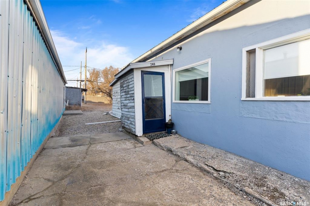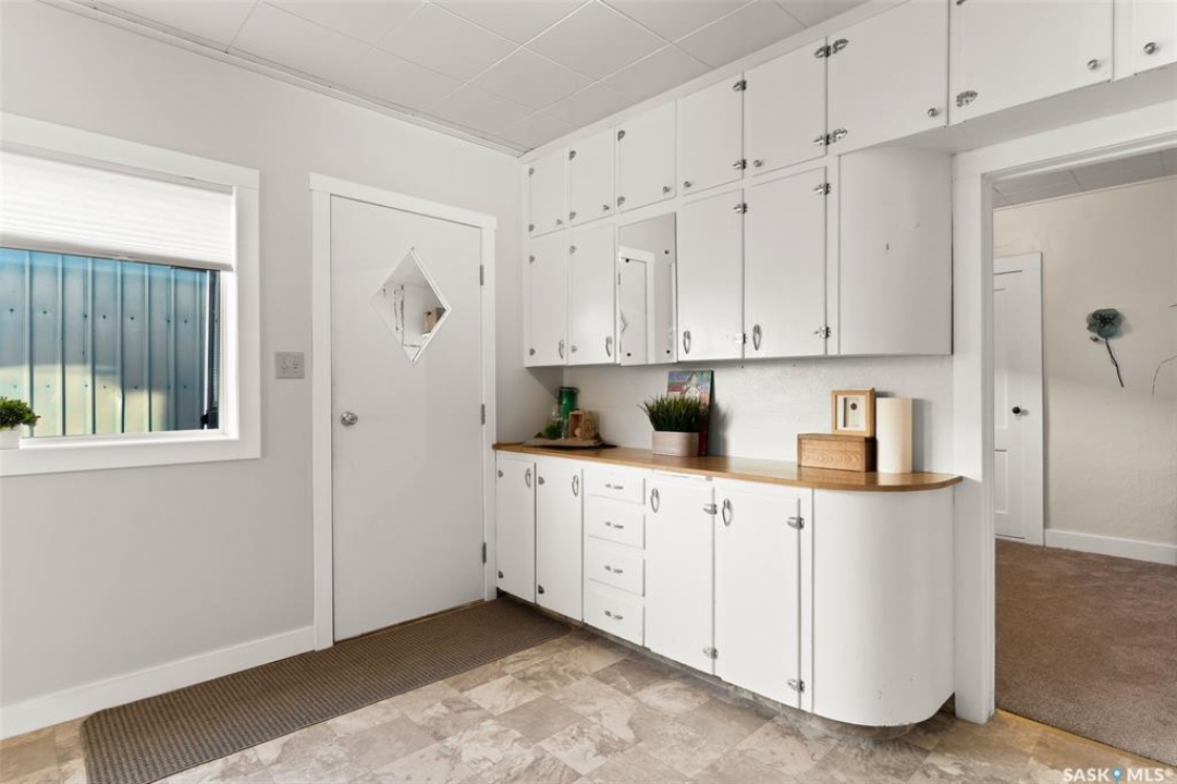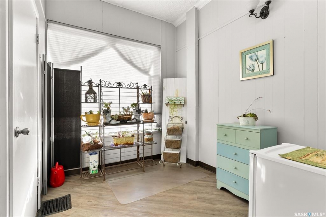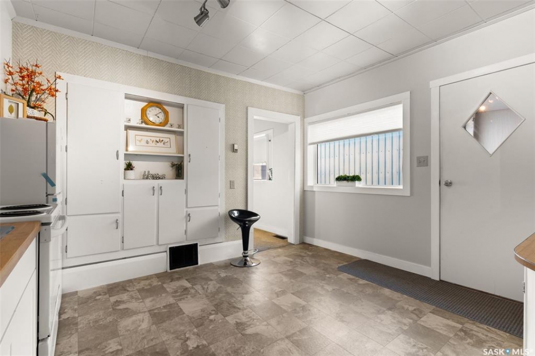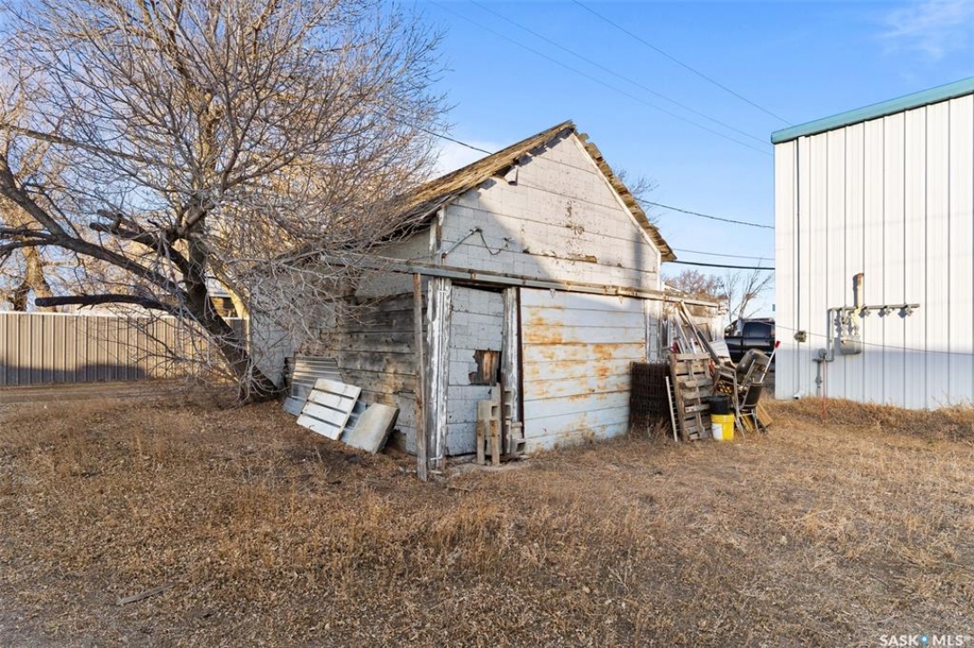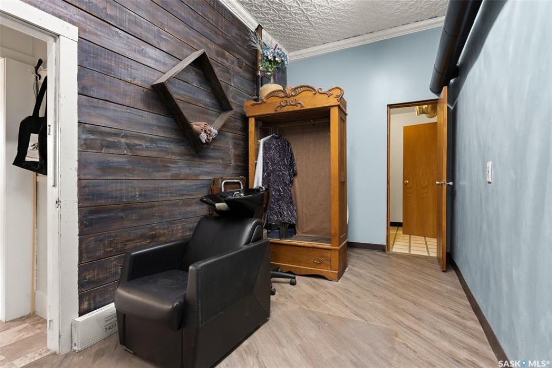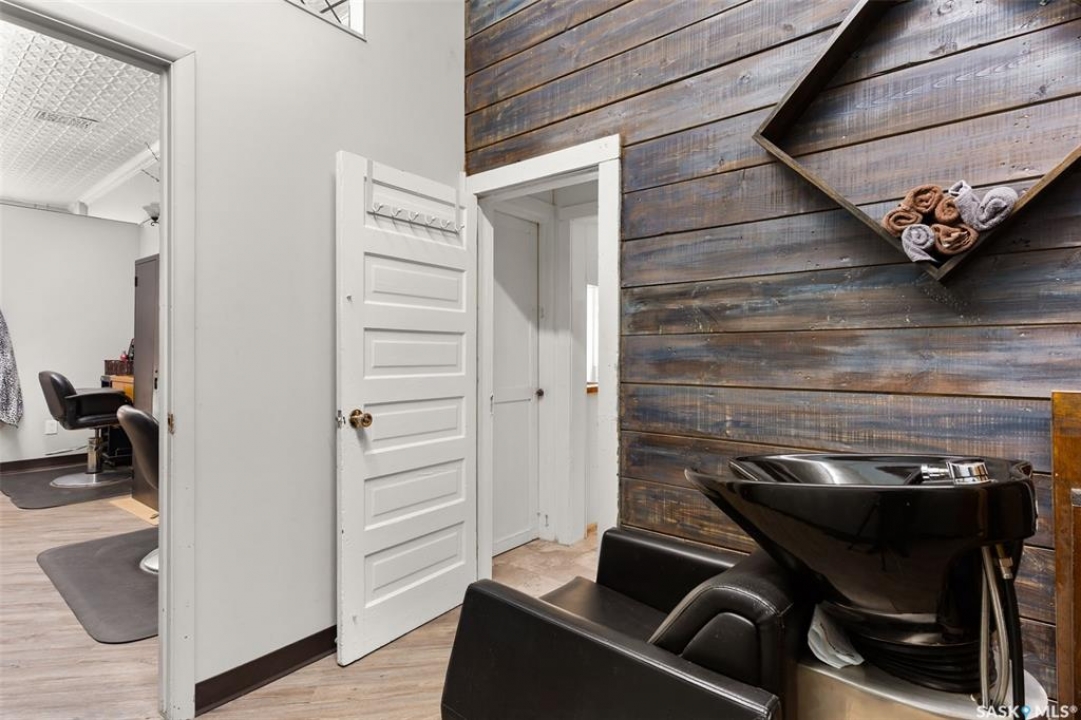 Located in Southey, SK on Railway Avenue with excellent site lines and visibility to Highway 6 is this 2,760 sqft mixed use commercial building. The building is comprised of 2 retail spaces and a 2 bedroom residential apartment. The end retail space is currently a tenant occupied vape shop. The tenant wishes to stay and is on a month to month lease. The vape shop was a former bakery and still has the commercial stainless steel sink and a gas line at the back that was used for the ovens. There is a dock door at the rear of the vape shop space. The centre retail space is a former hair salon that is in turn key condition with salon fixtures and plumbing in place. The salon has newer flooring, paint and a gorgeous tin ceiling. There is a laundry area at the rear of the hair salon plus a shared 2 piece bathroom for both retail areas to use. The salon space could be converted to other commercial uses. The residential quarters is spacious and filled with lots of light. It has been tastefully updated with newer flooring, paint, and updated 4-pce bathroom. The kitchen is fresh and bright with loads of cabinetry and kitchen appliances are included. The residence has one bedroom on the main floor and a second bedroom plus sitting room/den and a bonus room located on the second floor. There is a large storage area at the back of the building that can be shared. The building sits on 2 lots and there is ample parking in the rear for tenants accessed via the back alley. There is also an older garage at the rear that is currently being used for storage.