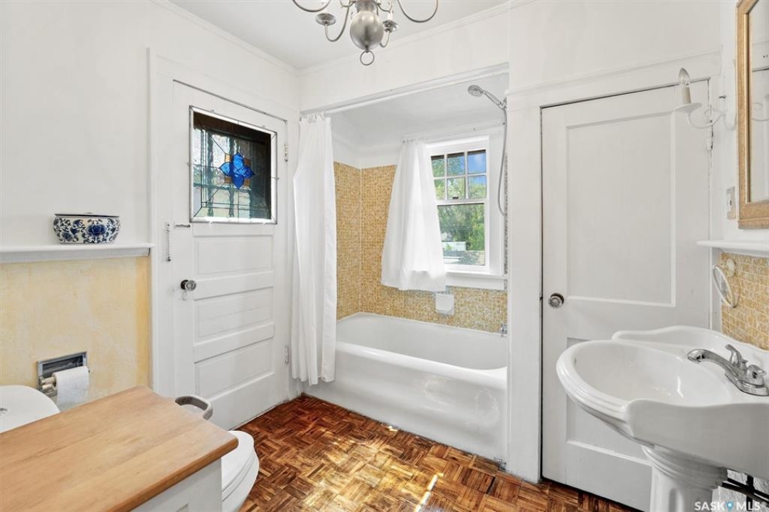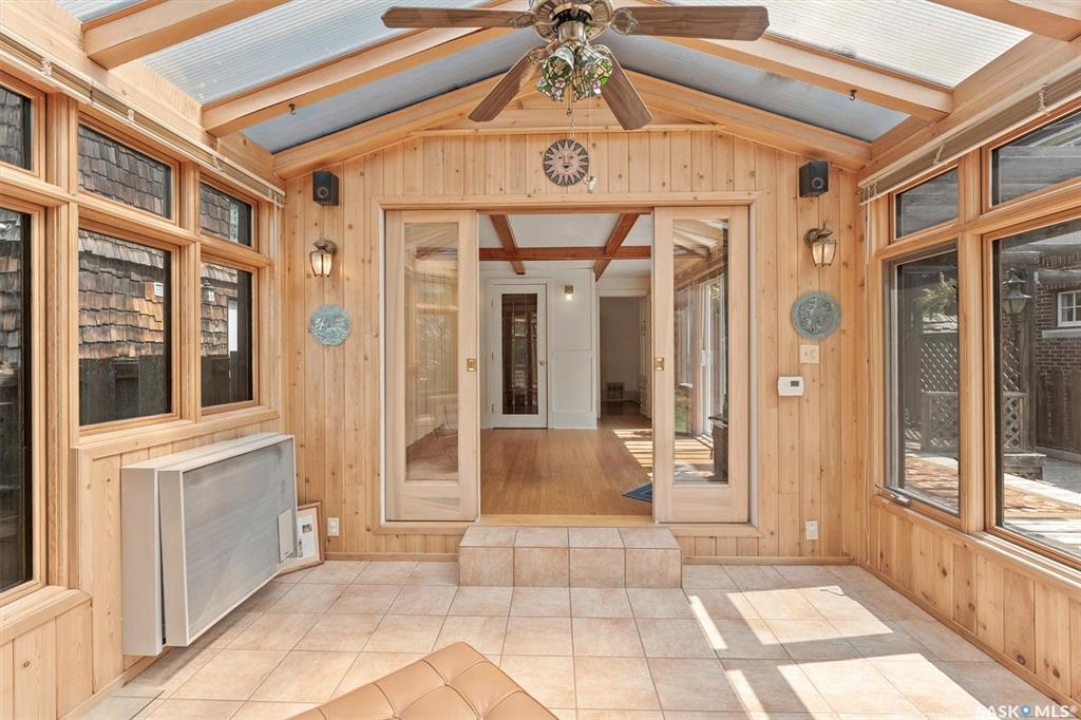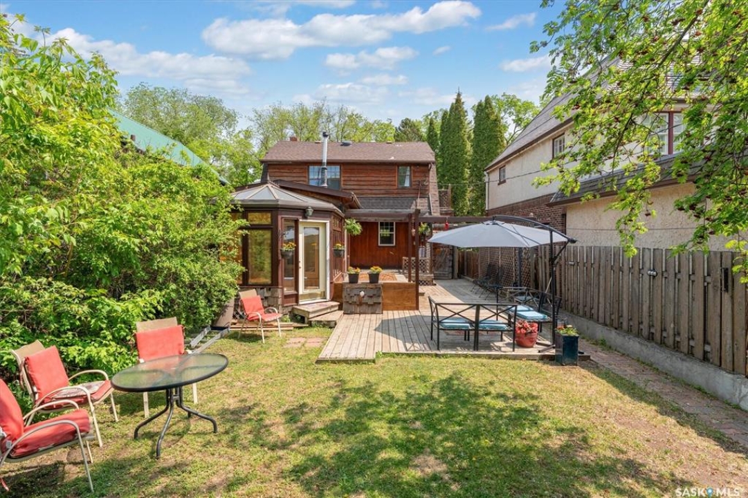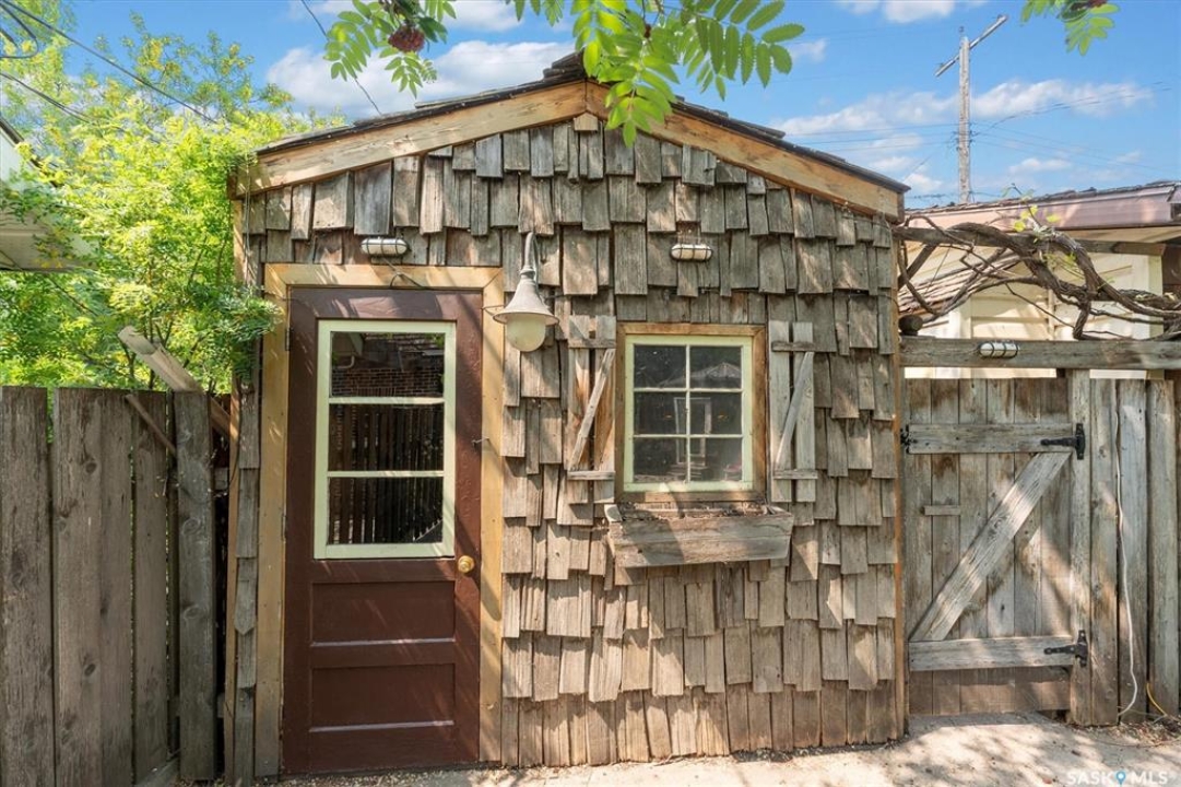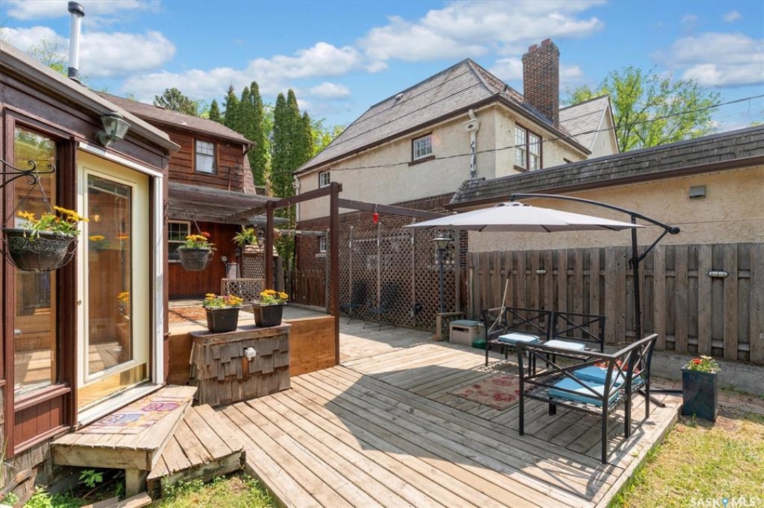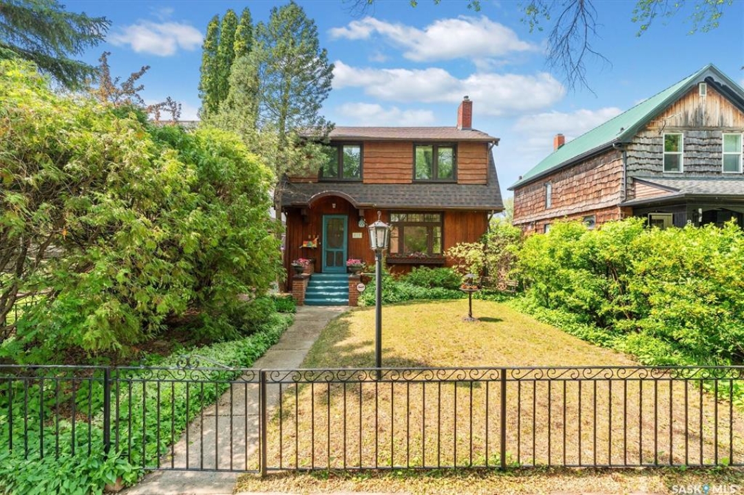 Welcome to 811 9th Avenue North — a beautifully preserved character home tucked into one of Saskatoon's most loved neighbourhoods, City Park. Built in 1935, this two-storey property blends timeless charm with thoughtful updates, offering over 1,600 sq. ft. of warm, inviting living space just moments from downtown, the river, parks, and local cafés. Step inside and you're immediately greeted by the features that make City Park homes so special: original hardwood floors, stained-glass details, classic mouldings, and an abundance of natural light. The living room and dining area feel spacious and bright, while the kitchen maintains its vintage appeal with plenty of space to personalize in the future. The sunroom is a standout — cozy, cheerful, and perfect for enjoying morning coffee year-round. A dedicated office with exposed brick adds both character and function to the main floor. Upstairs, the home offers three comfortable bedrooms, including a generous primary suite. The partially finished basement provides a den, 3-piece bathroom, laundry, storage, and a separate side entry, creating potential for future development. Outside, the yard is a true extension of the home. Mature trees, a deck, and two storage sheds help create a private, established outdoor space that suits both everyday living and entertaining. With Denovo triple-pane windows on the east side, two gas fireplaces, and preserved wood siding, the home balances comfort with its original charm. City Park is known for its walkability, treelined streets, and vibrant sense of community — and this property sits right in the heart of it all. Whether you're drawn to classic character homes, searching for a family-friendly neighbourhood, or looking to be near downtown and the river, 811 9th Avenue North offers a rare combination of charm, warmth, and location.