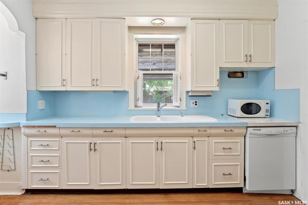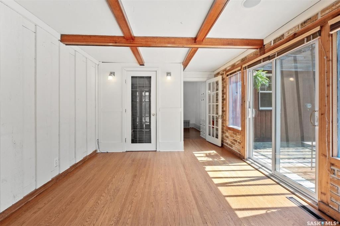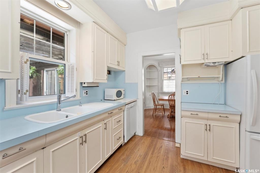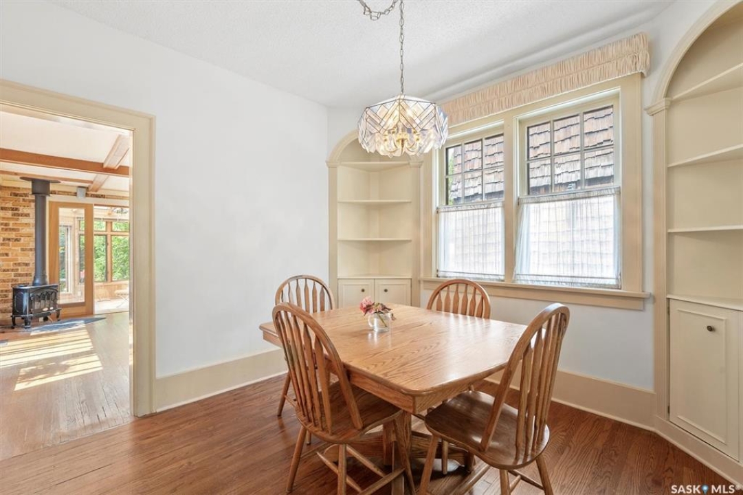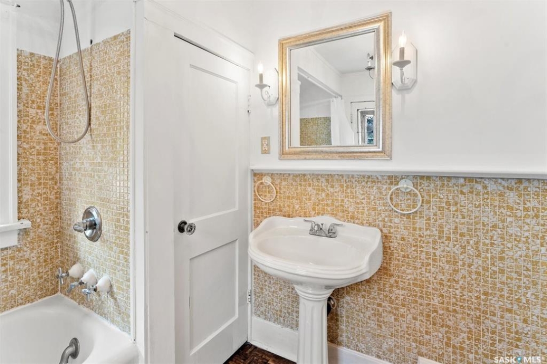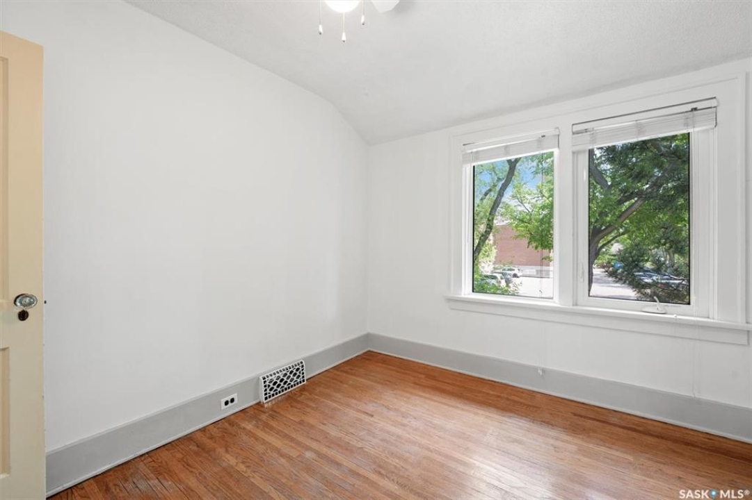 Welcome to 811 9th Avenue North — a beautifully preserved character home tucked into one of Saskatoon's most loved neighbourhoods, City Park. Built in 1935, this two-storey property blends timeless charm with thoughtful updates, offering over 1,600 sq. ft. of warm, inviting living space just moments from downtown, the river, parks, and local cafés. Step inside and you're immediately greeted by the features that make City Park homes so special: original hardwood floors, stained-glass details, classic mouldings, and an abundance of natural light. The living room and dining area feel spacious and bright, while the kitchen maintains its vintage appeal with plenty of space to personalize in the future. The sunroom is a standout — cozy, cheerful, and perfect for enjoying morning coffee year-round. A dedicated office with exposed brick adds both character and function to the main floor. Upstairs, the home offers three comfortable bedrooms, including a generous primary suite. The partially finished basement provides a den, 3-piece bathroom, laundry, storage, and a separate side entry, creating potential for future development. Outside, the yard is a true extension of the home. Mature trees, a deck, and two storage sheds help create a private, established outdoor space that suits both everyday living and entertaining. With Denovo triple-pane windows on the east side, two gas fireplaces, and preserved wood siding, the home balances comfort with its original charm. City Park is known for its walkability, treelined streets, and vibrant sense of community — and this property sits right in the heart of it all. Whether you're drawn to classic character homes, searching for a family-friendly neighbourhood, or looking to be near downtown and the river, 811 9th Avenue North offers a rare combination of charm, warmth, and location.
