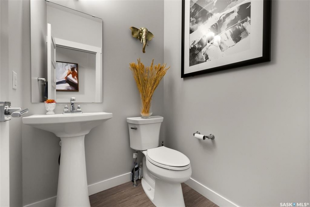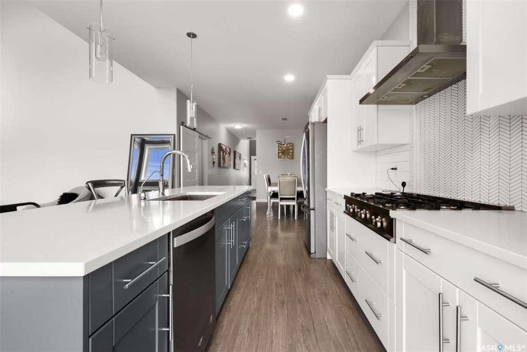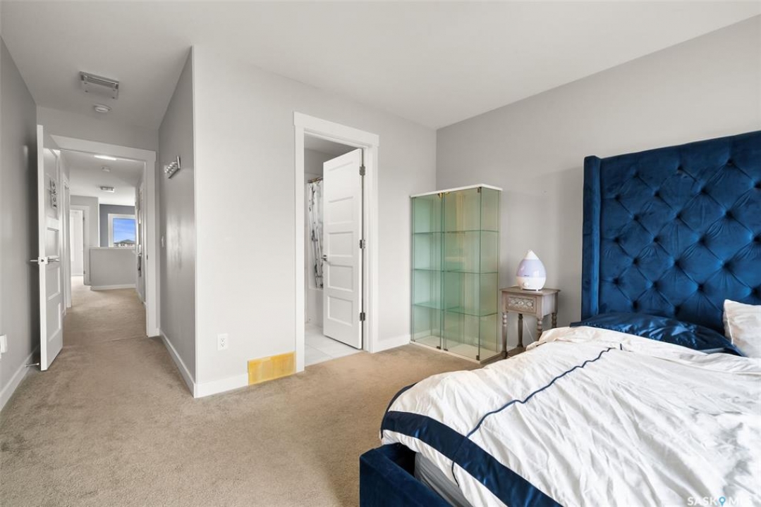 Welcome to this stunning 2031 sqft, two-story custom-built home by Glenrose, situated on a quiet crescent and backing directly onto serene green space. Constructed in 2018 on piles for superior stability, this "Grayson" model boasts exceptional features including a triple-car garage, triple-pane windows, and an open web floor truss system. You are greeted by a grand two-storey foyer that leads into a spectacular open-concept area, where the living room and dining room are flooded with natural light from ample windows and feature an impressive 18-foot ceiling. The stunning kitchen is an entertainer's dream, centered around a large island with quartz countertops, a tile backsplash, and high-end appliances including a 36" gas cooktop, built-in oven and microwave, dishwasher, and refrigerator. Patio doors off the kitchen provide a beautiful, uninterrupted view of the environmental reserve. Step outside to a low-maintenance, professionally landscaped backyard complete with a hot tub and a generous composite deck, perfect for relaxation and hosting guests. Practicality is ensured with a main-floor mudroom featuring a convenient laundry, discreetly closed off by a sliding barn door. Upstairs, discover a well-appointed bonus room, a luxurious master suite with a walk-in closet and a large ensuite, two additional spacious bedrooms, and a 4-piece bathroom—all bathrooms feature elegant quartz countertops. The massive triple-car garage offers abundant space for vehicles and a workshop. The fully ready-to-develop basement presents a fantastic opportunity to easily add even more living space to suit your needs. Don't miss your chance to own this impeccable home—call your agent to schedule a private tour today.