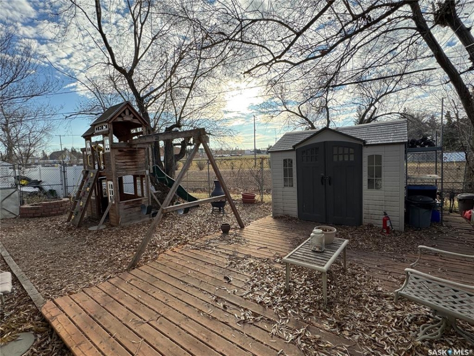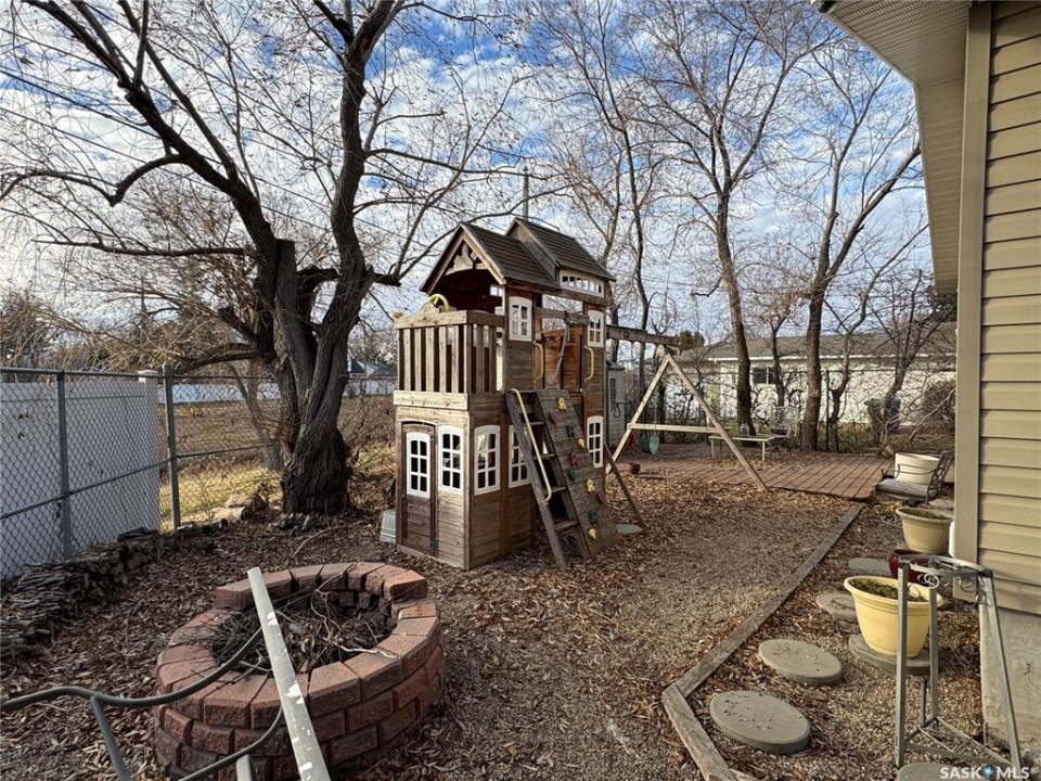 The Perfect Family Bungalow in Coronation Park This warm and welcoming three-bedroom bungalow sits on a peaceful Icrescent in Coronation Park and offers everything your family needs—and more. With over 1,400 sq ft of living space and a unique layout, you'll love the bright sunroom attached to the primary bedroom, perfect for relaxing or enjoying your morning coffee. The spacious kitchen features tons of cabinet space and beautiful granite countertops, while the dining and living rooms include a built-in china cabinet. An attached single garage with direct entry makes life easy, and central air conditioning keeps the home comfortable all summer long. Major updates have already been done for you, including newer windows, furnace, added exterior insulation, and insulated basement walls and ceiling. The yard is family-friendly with a play structure, large storage shed, attached single garage, and even four security cameras for peace of mind. Backing onto green space and steps from two quiet neighborhood parks, this home is close to schools, shopping, and all the amenities you need. With quick access to Lewvan Drive, getting anywhere in Regina is simple. This is a special home with a fantastic location—don't miss out!