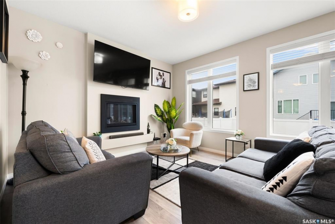 Welcome to 3104 Trombley Street conveniently located near shopping, restaurants, an elementary school, walking paths, parks & more. As you approach the home, you're welcomed with its charming facade and landscaped front yard. Upon entering you'll be greeted with 9' ceilings to the main floor, spacious front entry and a flex room, perfect for a home office, craft room or play room. The kitchen features an abundance of cabinetry & counterspace, stainless steel appliances, eat up island, quartz countertops, ceramic tile backsplash & a sizeable pantry. Adjacent to the kitchen is a dining room with a large window and garden door that overlooks the backyard. The open concept design seamlessly connects the dining area to the living room that includes a gas fireplace. As you ascend the wide stairs to the second floor, you'll be welcomed by an inviting front facing bonus room, 4 piece bath, a large primary bedroom with a spacious ensuite, which includes a soaker tub, separate shower and water closet. The 4 piece bath & ensuite are finished with quartz countertops, ceramic tile flooring & ceramic tile backsplash. Completing the 2nd floor are 2 additional nice size bedrooms and sizeable laundry room. This home is built on piles and there's a separate entrance to the basement. The basement is bright and airy with two large windows and is ready for development. Finishing off this beautiful home is a spacious backyard that is fully fenced and includes a deck off the dining room. Don't miss the opportunity to make this exceptional property your new home!