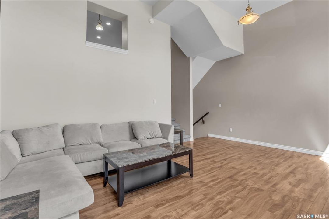 A Beautiful high-end townhouse for sale in sought-after Stonebridge! This stunning property offers 3 bedrooms, 4 bathrooms, and 1,467 sqft of fully developed living space, this well-maintained home is move-in ready and perfect for families or professionals. From the moment you enter the spacious front foyer, you'll be impressed by the thoughtful layout and natural light. The main level features a stunning, sunlit living room with soaring 12'6" ceilings, large windows, and patio doors that open to your private balcony—an ideal spot to entertain or enjoy your morning coffee while watching the sunrise. The second level showcases a stylish kitchen and dining area, complete with rich espresso cabinetry, stainless steel appliances, a tile backsplash, and a convenient 2-piece powder room for guests. Upstairs on the third level, you'll find all three bedrooms, including a generous primary suite with a walk-in closet and a 4-piece en-suite. An additional 4-piece bathroom completes this level. In the basement level, you will a family room with another 4-piece bathroom for your additional living space. The utility room and a storage room also locate on this level. Don't miss the video tour on YouTube, and contact your local Saskatoon REALTOR � today to schedule a private showing!
