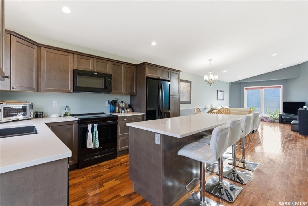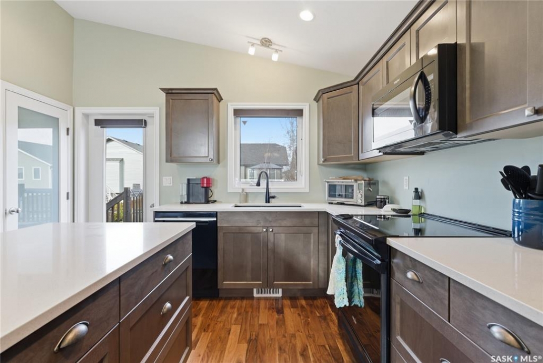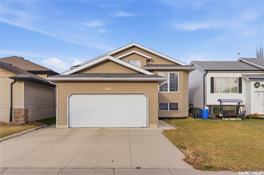 Welcome to 3290 37th Street West in the popular neighborhood of Hampton Village. When you step inside this 1,200 sq. ft. bi-level you'll immediately notice the vaulted ceilings that create a bright, open feel in the main living area. The rich acacia hardwood floors add warmth and character, while the granite countertops in the kitchen bring a touch of elegance to everyday living. The kitchen layout is spacious with a pantry and a large island for food preparation and a place for friends and family to gather. This home offers 3 bedrooms and 2 bathrooms, including a spacious primary suite complete with walk-in closet and private ensuite. The second 3 piece bathroom services the other two bedrooms on the main floor. The basement is open for development, with plumbing roughed in for a future bathroom—giving you the flexibility to expand as your needs grow. There is even room for a pool table as you can see from the pictures! BONUS - The pool table is staying with the house! Outside, enjoy a finished yard with trees and shrubs, and an attached deck, perfect for summer evenings. Attached to the house is the double garage with direct entry. The garage is a standout feature; boasting tall ceilings, an epoxy-coated floor for durability, and fully finished, insulated, and heated with a natural gas furnace. Located within walking distance to schools, parks, and close to all amenities, this property is ideal for families or anyone looking for a well-rounded home in a great neighborhood. This house won't last long! Call you're Realtor � to book a showing today!