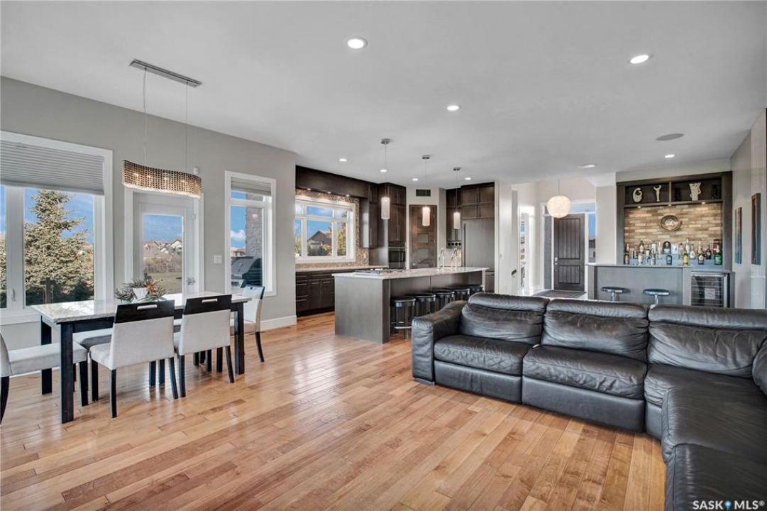 Introducing 118 Muzyka Road — an executive 1,816 sq. ft. walkout bungalow built by Decora Homes and offered for sale for the first time. This fully stone-wrapped residence is situated on a prime corner lot in Willowgrove, backing a beautiful park/green space with no rear or north neighbours and a south-facing yard that provides exceptional natural light. The main floor features an open-concept layout with a chef's kitchen equipped with high-end appliances, quality cabinetry, and premium plumbing fixtures. The living and dining areas are enhanced by custom designer lighting and one of the home's three fireplaces. The primary suite offers a spacious layout and a digital ensuite shower system. The walkout lower level provides generous additional living space, including a family room with fireplace, guest bedrooms, and a steam shower, creating a spa-like environment. Large windows and direct access to the covered patio allow for seamless indoor–outdoor living. Notable upgrades and features include: • 3 fireplaces • Topless glass railing with custom stainless steel • Built-in water cooler • Dedicated ice machine • Automatic weather blinds designed for year-round hot tub use • 7-car driveway • High-end Schonbek and custom lighting fixtures throughout Located with convenient access to Willowgrove, Brighton, and Evergreen, this home is close to schools, parks, pathways, and major amenities. This property stands out for its construction quality, timeless design, and exceptional setting.